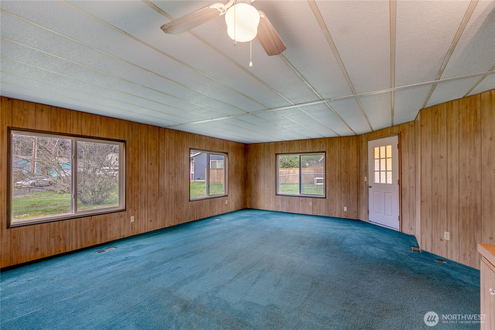 Spacious 1,440 sf home situated on a level lot just minutes from Camano Island State Park. The kitchen provides ample storage, counter space with bar seating and wood stove. Living and dining rooms run adjacent and boast an abundance natural light. The primary bedroom is private and comfortable with three quarter bath ensuite. Additional bedroom, full bathroom and utility room make up the interior. The 1/3 acre lot and two seperate decks allow for all the outdoor entertaining space you would need. The detached two car garage/shop is over 700 sf with power. The long driveway gives plenty of room for RV and/or boat parking.
