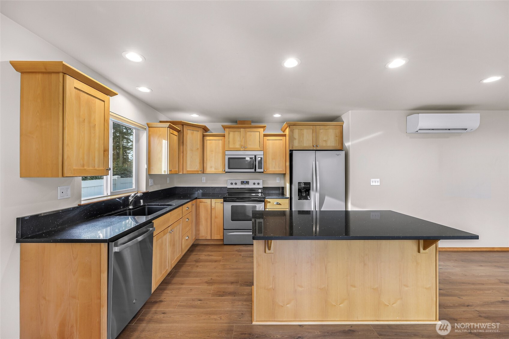 Welcome home to this newer S. Coupeville rambler that truly checks all the boxes—stylish, low-maintenance, and completely move-in ready. The open-concept layout is enhanced by vaulted ceilings and durable luxury vinyl plank flooring, creating a bright, airy feel with effortless flow. The kitchen is both functional and inviting, featuring maple cabinetry, stainless steel appliances, a brand-new dishwasher, recessed lighting, and plenty of workspace for everyday living or entertaining. Two generous bedrooms include a serene primary suite with a walk-in closet and a private ensuite bath complete with a bidet. A third flexible room easily serves as a guest bedroom, home office, or creative space. Comfort is covered year-round with efficient minisplit heating and cooling plus wall electric heat. Outside, enjoy easy living with Hardiplank siding, a fully fenced level yard with no-maintenance vinyl fencing, and a spacious back deck finished with Trex-style decking—perfect for relaxing or hosting friends. The garage offers abundant built-in storage to keep everything organized. Located in the desirable Bon Air subdivision, residents enjoy access to a community beach and park, with convenient proximity to the charm of Coupeville and the amenities of Freeland. Truly nothing to do but move in and start enjoying island life.