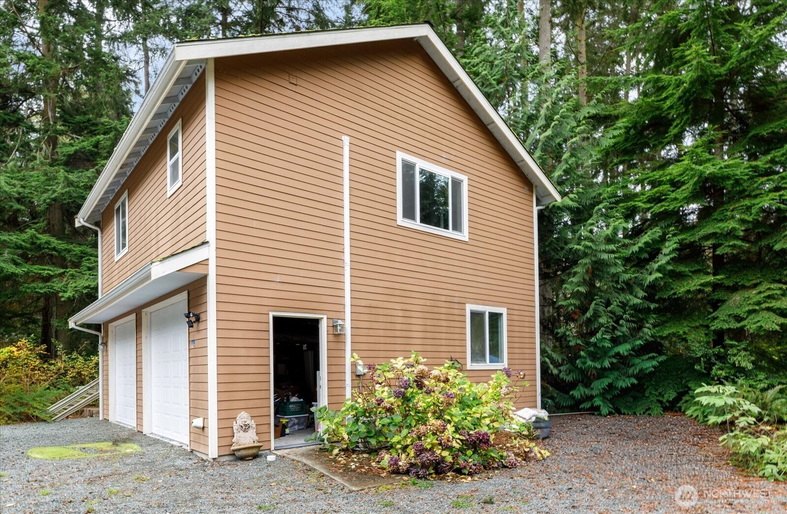 Seize the opportunity to own an enchanting Whidbey Island acreage property, available "as is" in an estate sale. This estate includes a modern (2014) main home and a detached garage with an upper-level apartment—ideal as a guest house or an income-generating asset. Nestled on 5 pristine wooded acres, the property boasts picturesque trails, abundant wildlife, and a private setting, all conveniently located near Freeland's shops and beaches. The single-level main home features 2,280 square feet with distinct en suite wings and a central Great Room. The ADU apartment contributes 676 square feet, offering a total living area of 2,956 square feet. Minimal cleanup and a touch of polish will make this a delightful home!