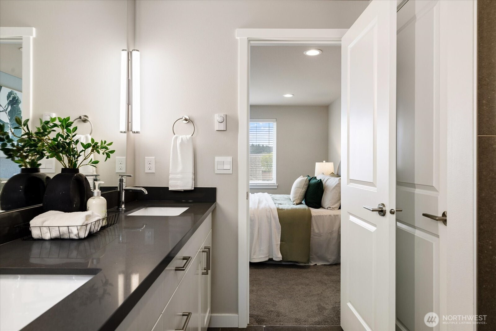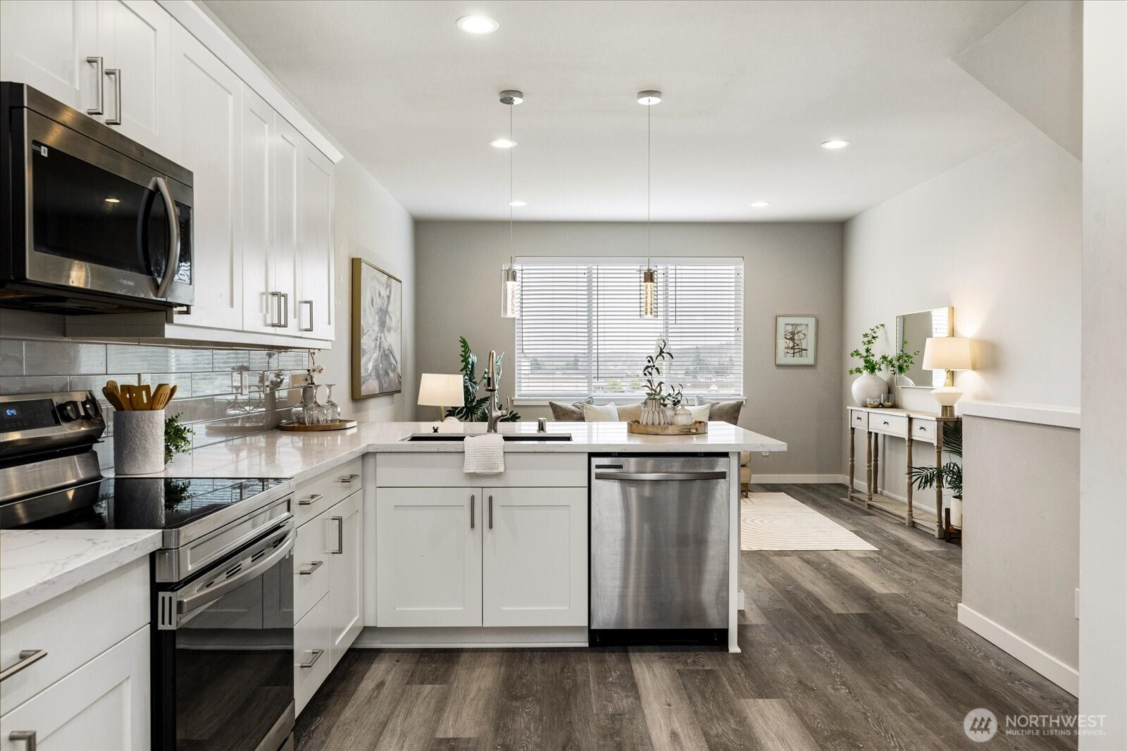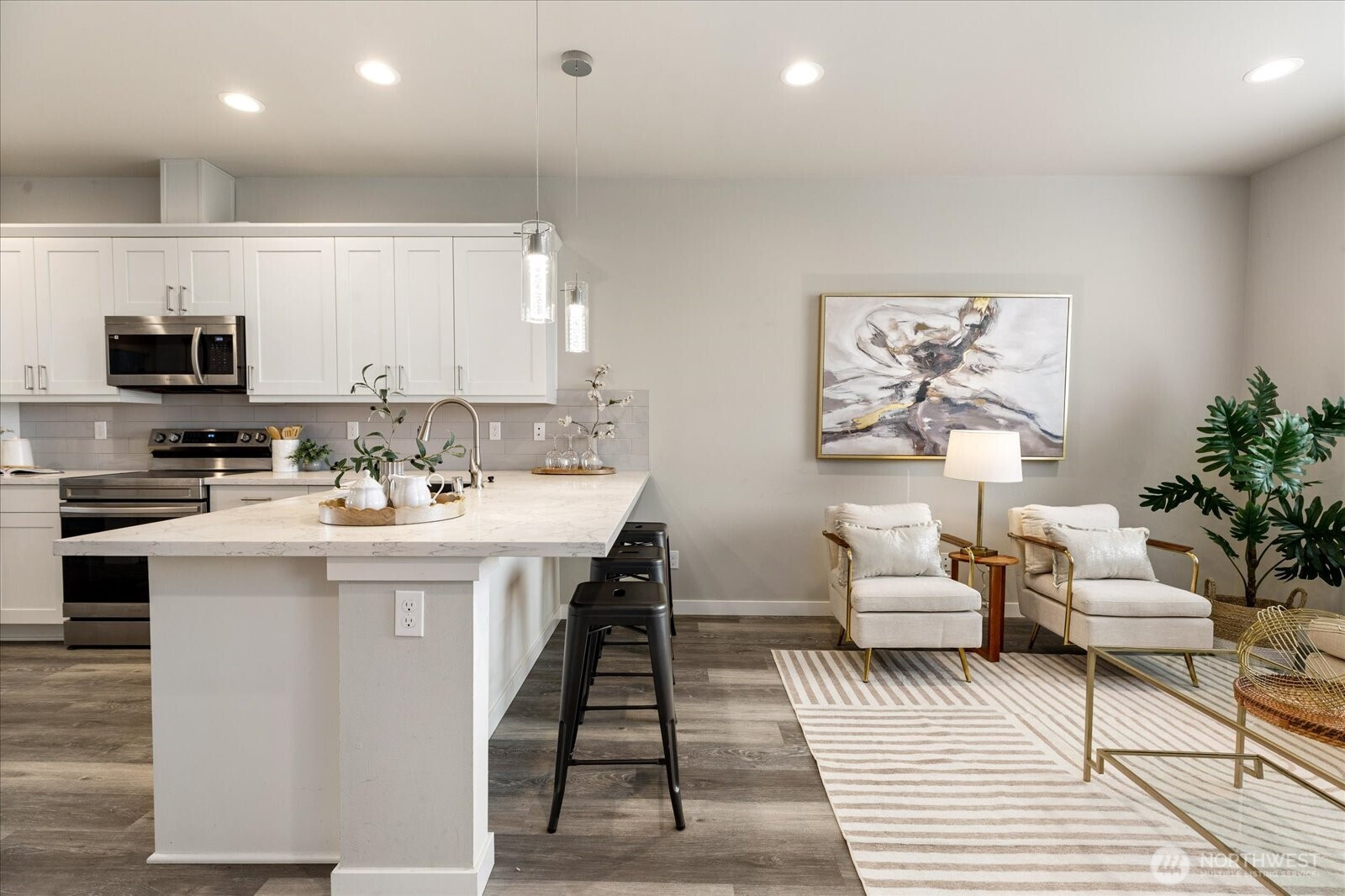 Set in a private yet centrally located pocket of town—with custom nearly-new construction & effortlessly stylish interior—this home has it all! With 1364 square feet, highlights include: a spacious living room with durable LVP floors, oversized picture windows & a partial water view! The kitchen has polished quartz counters, custom cabinetry, entertaining island/breakfast bar, & seamless transition to the intimate & versatile dining space—the kind of layout that works just as well for quiet weeknight dinners as it does for hosting a crowd! There are 2 spacious bedrooms on the upper level—each with a private ensuite—ideal for all. More? Thoughtful touches throughout—designer lighting, modern fixtures & a neutral palette that's ready for your personal touch. An efficient ductless heat-pump (offering year-round comfort), fully fenced yard & 2-car garage—wow! When you add in nominal monthly dues that cover landscaping, community park/play area & more? You get the lifestyle perks without the weekend yard work! You'll love being located mere minutes from schools, parks & the base—& still come back to your very own quiet escape—this one truly checks every box. The seller is offering a generous $15,000 credit toward closing costs or a rate buy-down—translating to real savings & a lower monthly payment from day one! Come by and unlock an amazing place to call home...