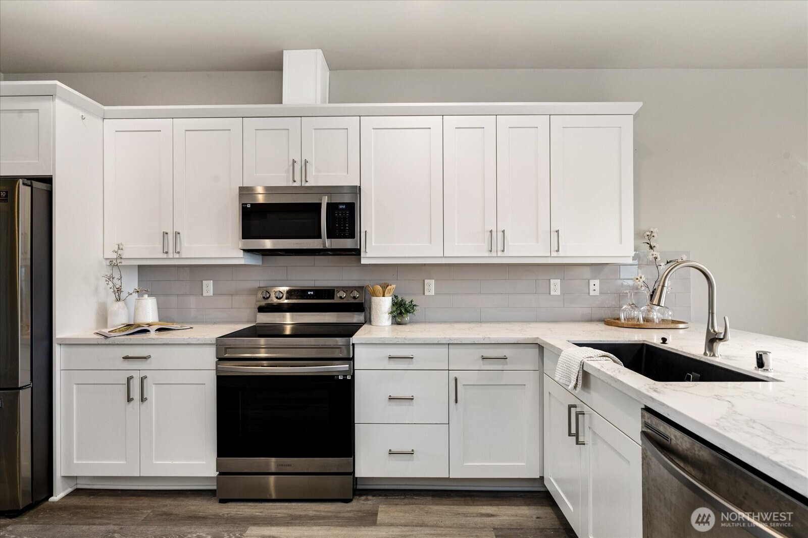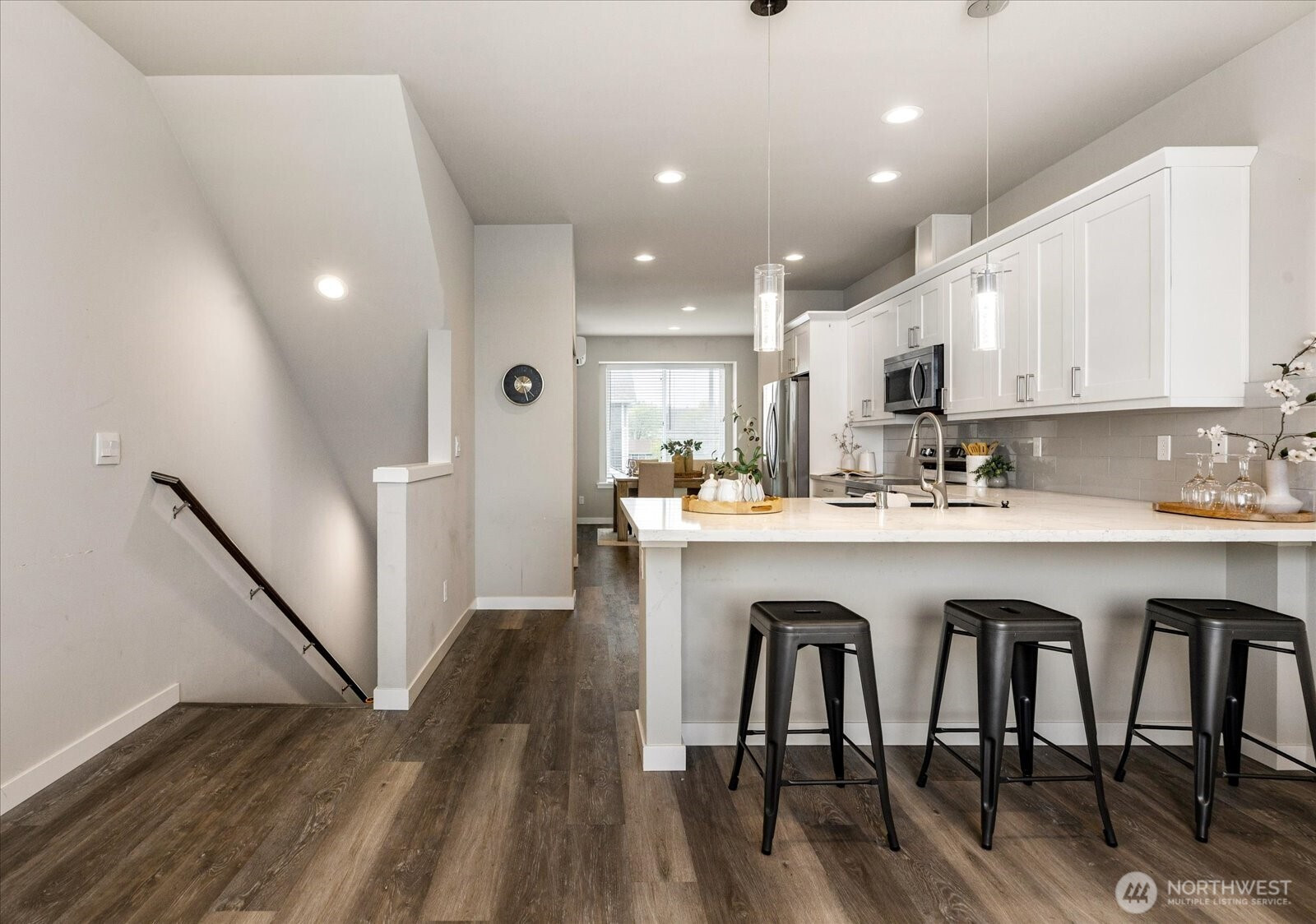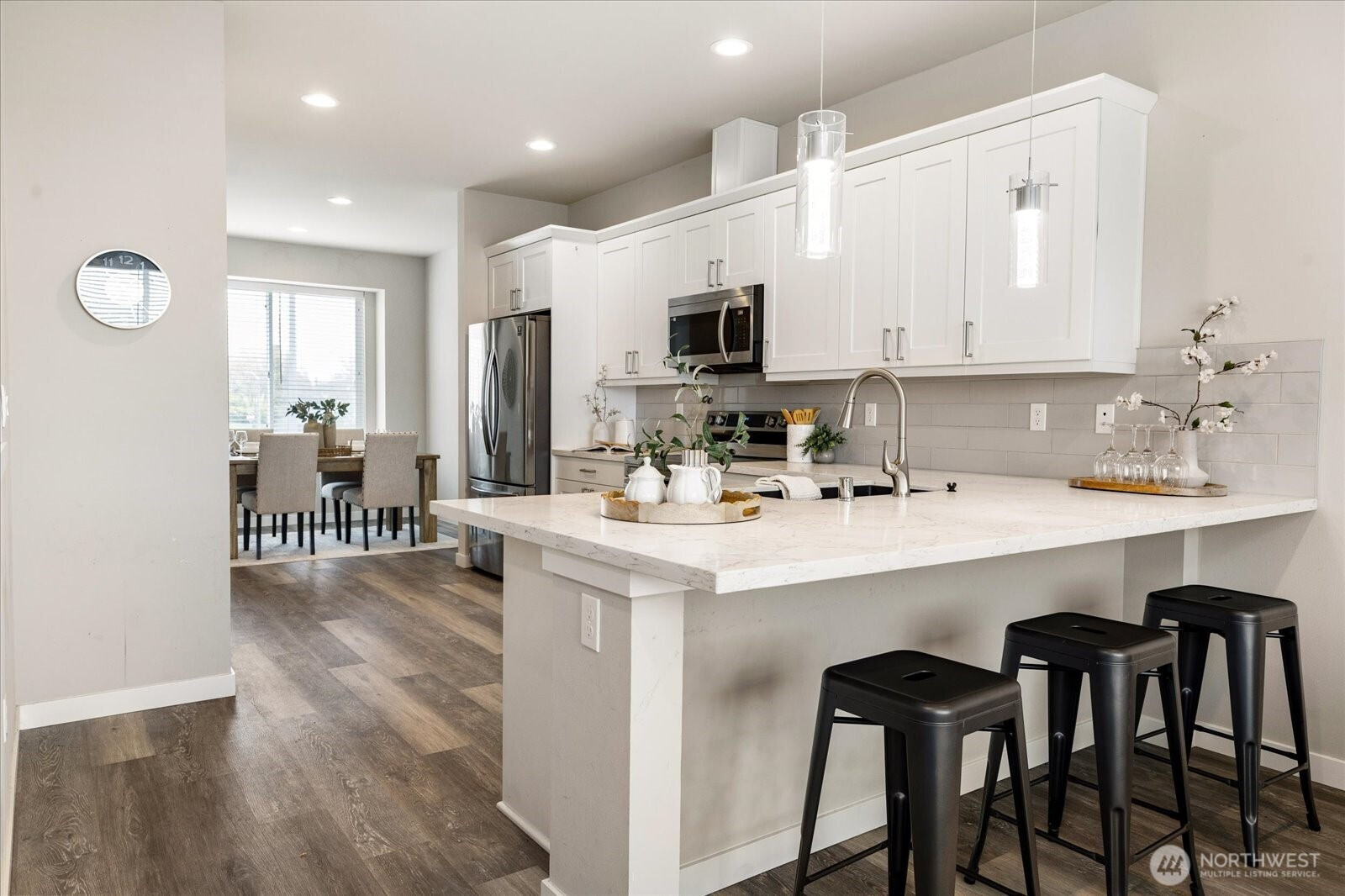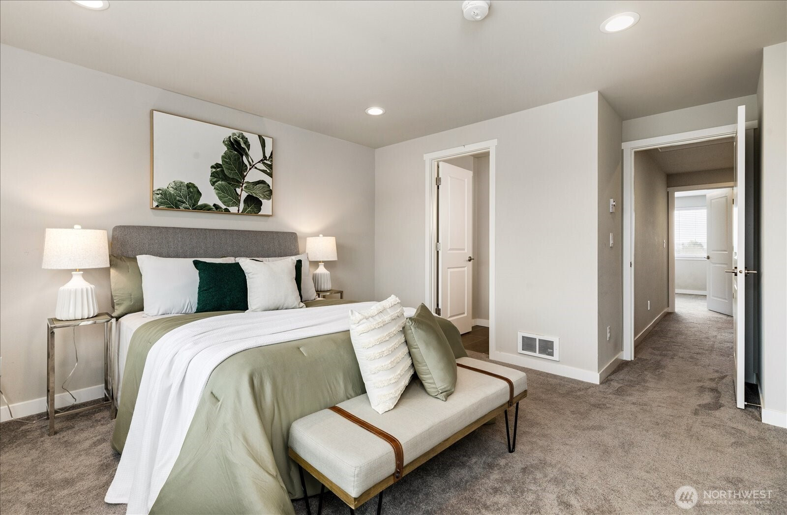 Set in a private yet centrally located pocket of town—with custom nearly-new construction & effortlessly stylish interior—this home has it all! With 1364 square feet, highlights include: a spacious living room with durable LVP floors, oversized picture windows & a partial water view! The kitchen has polished quartz counters, custom cabinetry, entertaining island/breakfast bar, & seamless transition to the intimate & versatile dining space—the kind of layout that works just as well for quiet weeknight dinners as it does for hosting a crowd! There are 2 spacious bedrooms on the upper level—each with a private ensuite—ideal for all. More? Thoughtful touches throughout—designer lighting, modern fixtures & a neutral palette that's ready for your personal touch. An efficient ductless heat-pump (offering year-round comfort), fully fenced yard & 2-car garage—wow! When you add in nominal monthly dues that cover landscaping, community park/play area & more? You get the lifestyle perks without the weekend yard work! You'll love being located mere minutes from schools, parks & the base—& still come back to your very own quiet escape—this one truly checks every box. The seller is offering a generous $15,000 credit toward closing costs or a rate buy-down—translating to real savings & a lower monthly payment from day one! Come by and unlock an amazing place to call home...