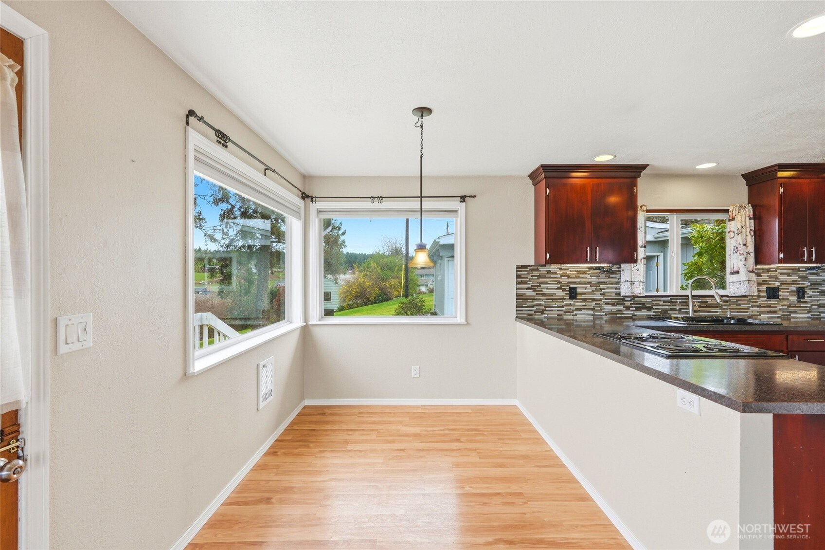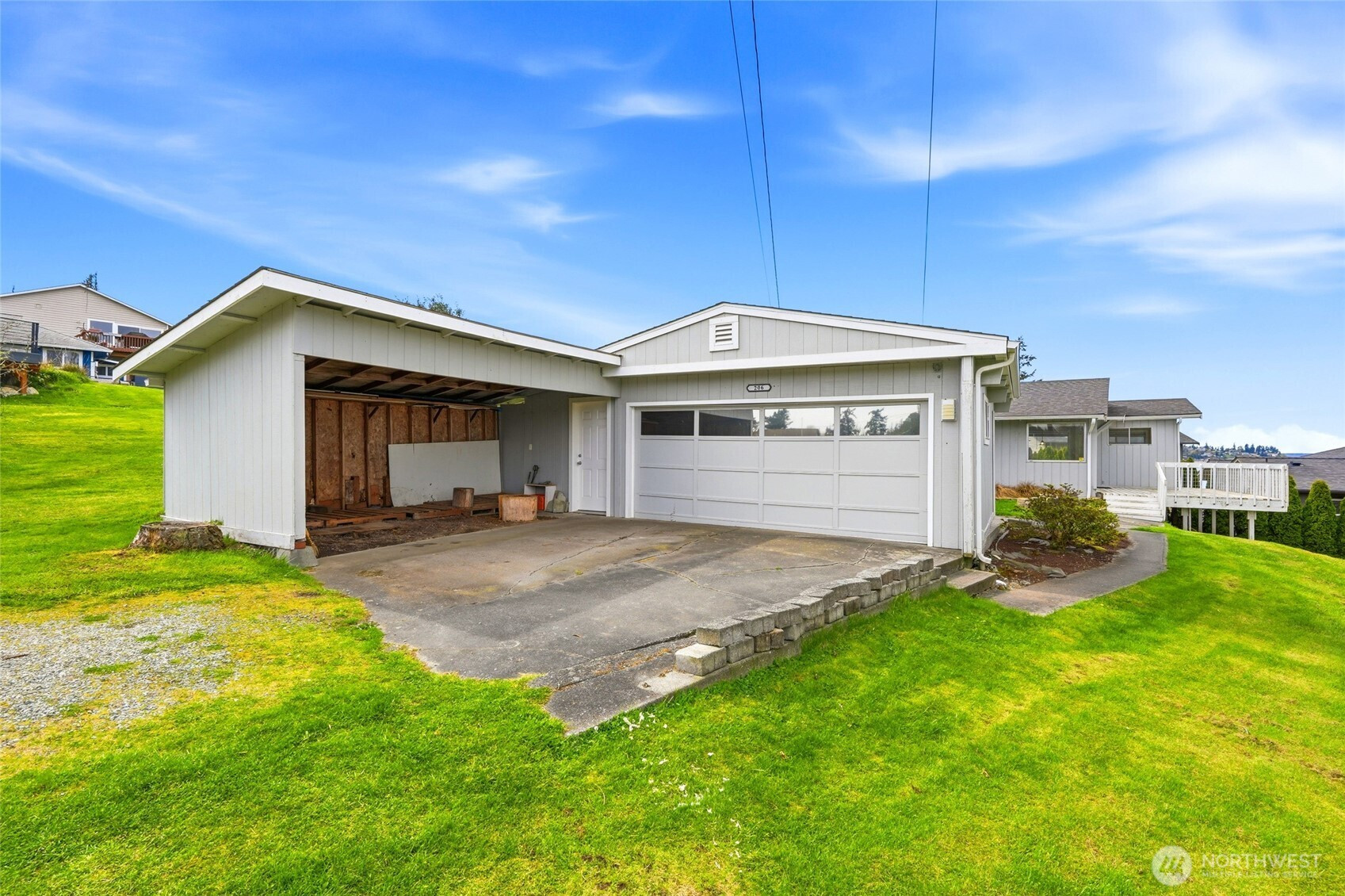 Perched above Utsalady Bay on Camano Island’s sought-after north end, this inviting 2-bedroom, 1-bath home blends comfort, light, and serene surroundings just 10 minutes from downtown Stanwood. An open-concept kitchen, dining, and living area is filled with natural light from abundant windows, including striking picture-frame windows that capture peekaboo views of Skagit Bay and Whidbey Island.Warm and welcoming, the interior features cherry wood cabinetry, a glass tile backsplash, and a cozy wood-burning fireplace that anchors the living space. The thoughtful layout flows effortlessly onto a spacious elevated deck; perfect for relaxing or entertaining while taking in the peaceful setting.Outside, enjoy a fully usable terraced hillside with dedicated spaces for gardening, gathering, and play, complete with a fire pit and horseshoe pit. Tucked away on a quiet cul-de-sac, the property offers both privacy and charm.A detached garage adds versatility with ample parking, workshop potential, additional storage, and exposed beams with a tongue-and-groove ceiling for a rustic touch. This is a rare opportunity to enjoy island living with space, character, and views.