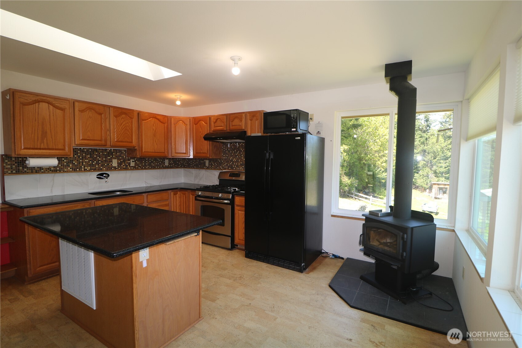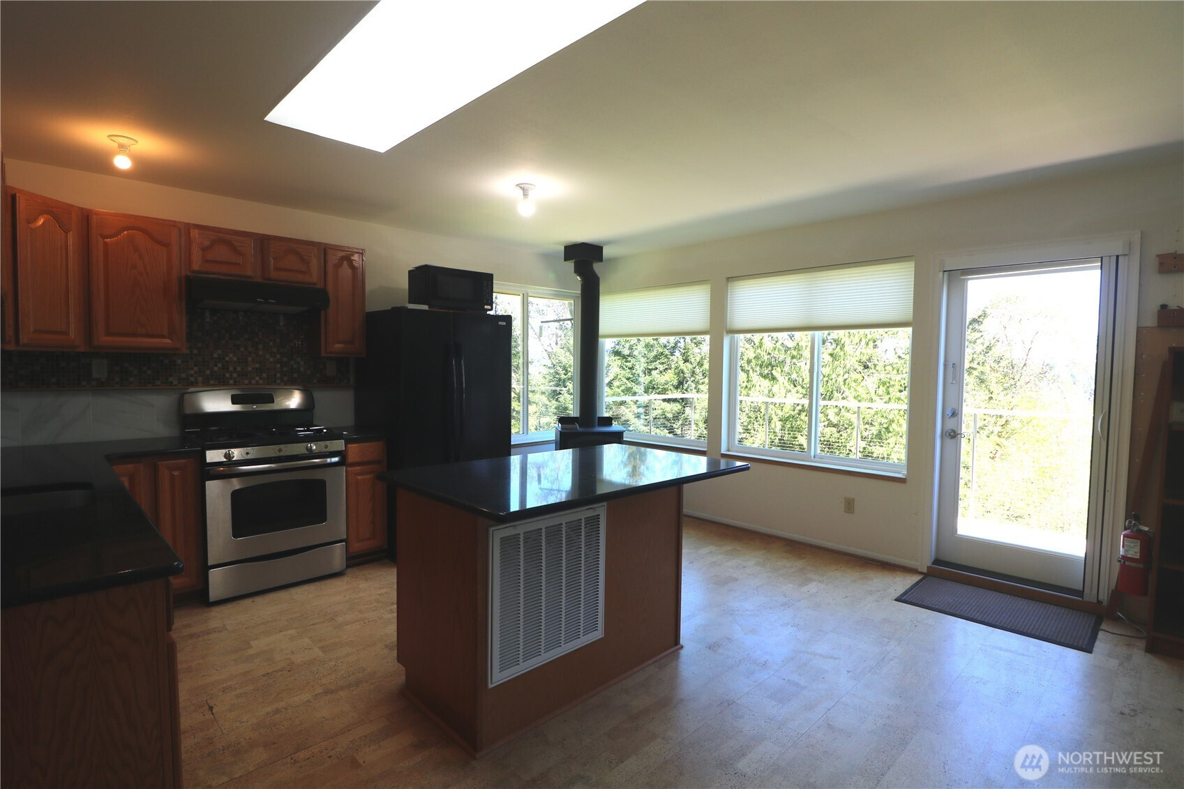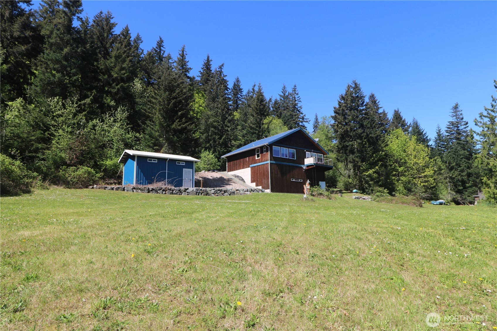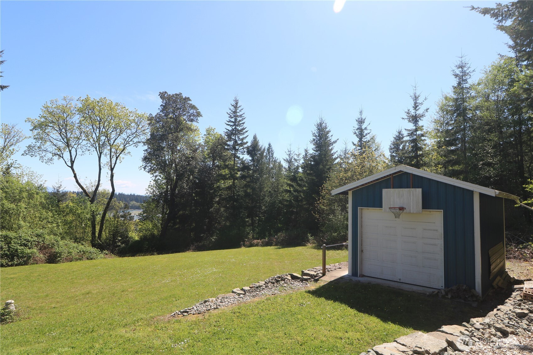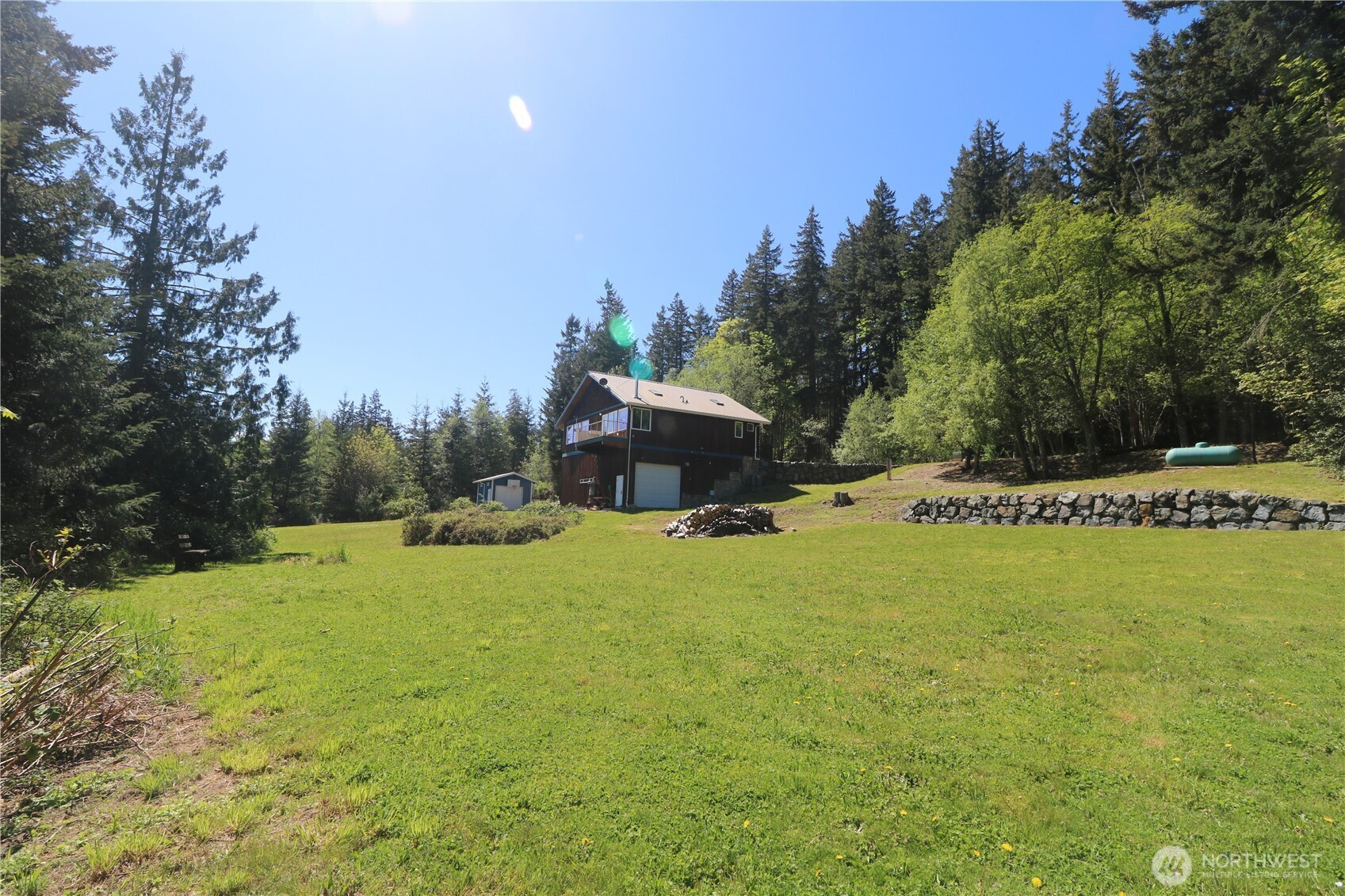 Amazing Views of Water and Mountain from Kitchen, Living Room and Office/Reading Nook!!! Bright 2 Bedroom 1.25 Bath Home on Camano Island boasts a living room with tons of windows, eat in kitchen with granite countertops and stainless steel appliances. Perched on top of a hill on a 3 plus acre lot offering absolute privacy and picturesque views of Triangle Cove and Three Fingers Mountain from all living areas. Home is ideal for peace and relaxation with triple pane windows throughout, cork flooring, tankless water heater, a covered front porch, and a balcony off the kitchen plumbed with propane and water. Walk downstairs to a HUGE 1,400+ square foot attached shop with 17 foot ceiling. Shop is equipped with a half bathroom, 220 Volt outlets for Fast Car Charger and Heavy Equipment, oversized garage door for RV Parking or large trucks, air compressor and a 1 ton lift. The shop is large enough to have both RV Parking and a workshop. Third detached garage is fully insulated, ideal for an extra car, a gym or even a man cave or she shed. Quiet neighborhood with easy access to shopping, restaurants and all conveniences.