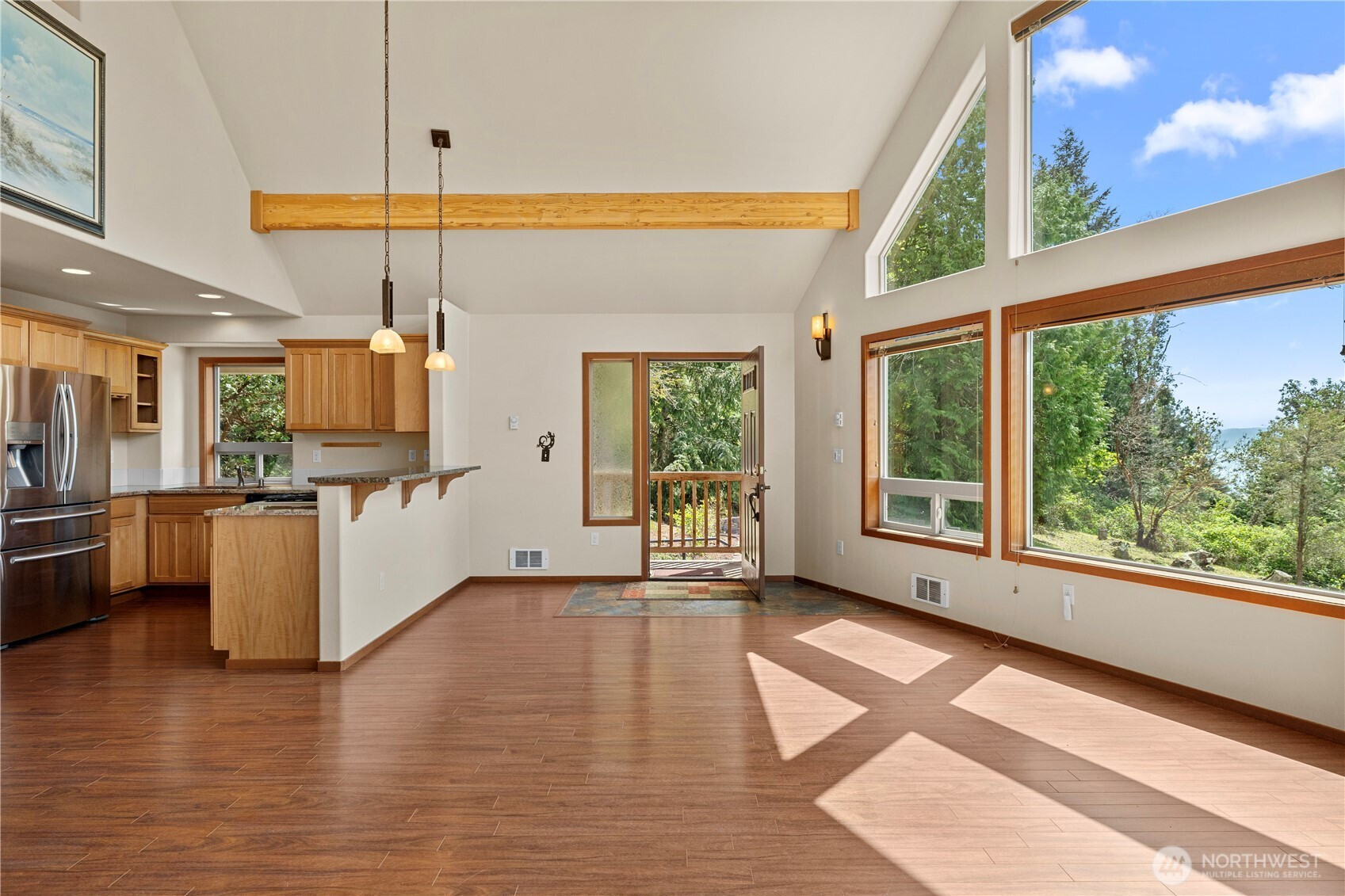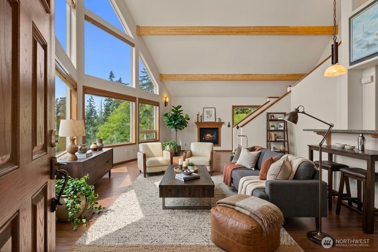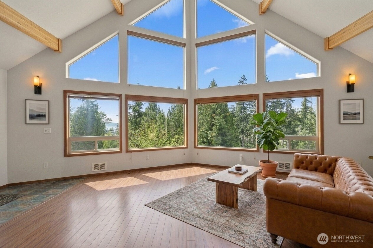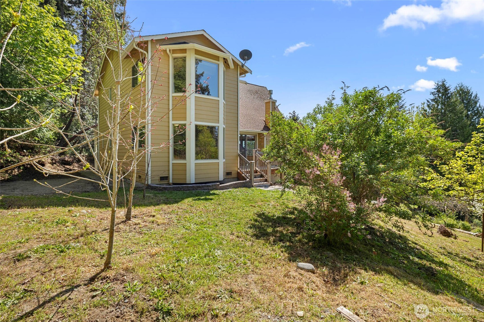 Perched on 2.3 private acres, this 2-bedroom retreat is a sanctuary for the senses. Escape to a gardener’s paradise where the soundtrack of your day includes the calls of eagles and the distant splashes of seals and whales in Elger Bay. Offering breathtaking water views and unmatched seclusion, this property perfectly balances "away from it all" with "close to everything"—just minutes from local dining, groceries, and fuel. There are endless opportunities on this property! With space and potential to build your dream shop or garage, this is more than a home; it’s an island retreat.