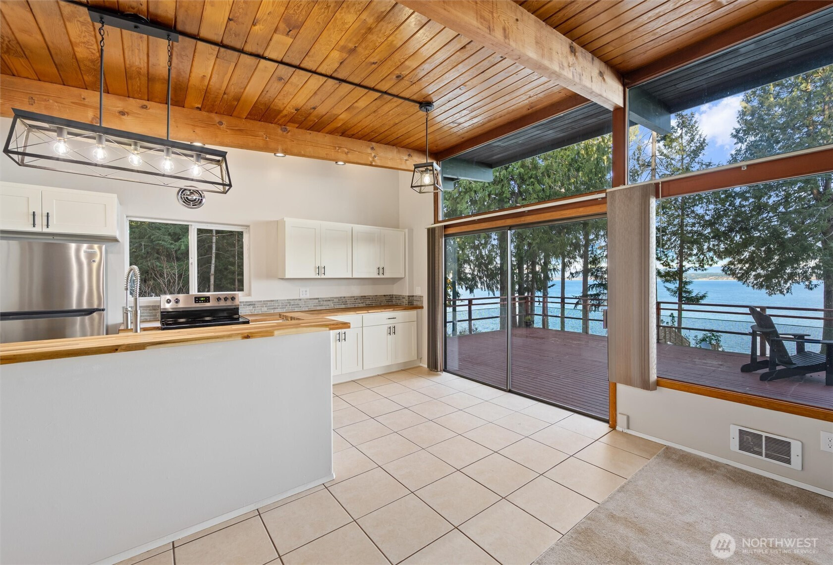 Nestled on one of Camano's most sought after communities, this stunning 4-bedroom, 2-bath high-bank waterfront home offers an unparalleled blend of luxury, privacy, and natural beauty. 2 parcels combine for .66 acres of expansive lawns, mature evergreens, and room for gardens—perfect for those seeking space to breathe and create. Step inside to find a light-filled open floor plan with vaulted ceilings, a remodeled kitchen featuring butcher block counters and stainless appliances. Three additional bedrooms provide ample space for guests, while the cozy living room with stone fireplace invites gatherings by the fire. Second kitchen makes this a great opportunity for rental income or keeping extended guests comfortable. But it's the views that steal the show: From your elevated vantage, gaze across sparkling Puget Sound waters, where eagles soar, whales breach, and sunrises paint the sky in fiery hues. High-bank positioning ensures privacy and protection, with access to private pebbled beaches below for agate collecting, kayaking, clamming, or simply unwinding. Camano Island's vibrant community enhances the allure— a bridge-connected haven just 1 hour from Seattle, yet worlds away. Explore 2 state parks with miles of hiking trails, beaches, and boating. Savor fresh seafood at local eateries, browse art studios in the island's creative enclave, or join community events like the summer farmers' market. Life is better on the islands!