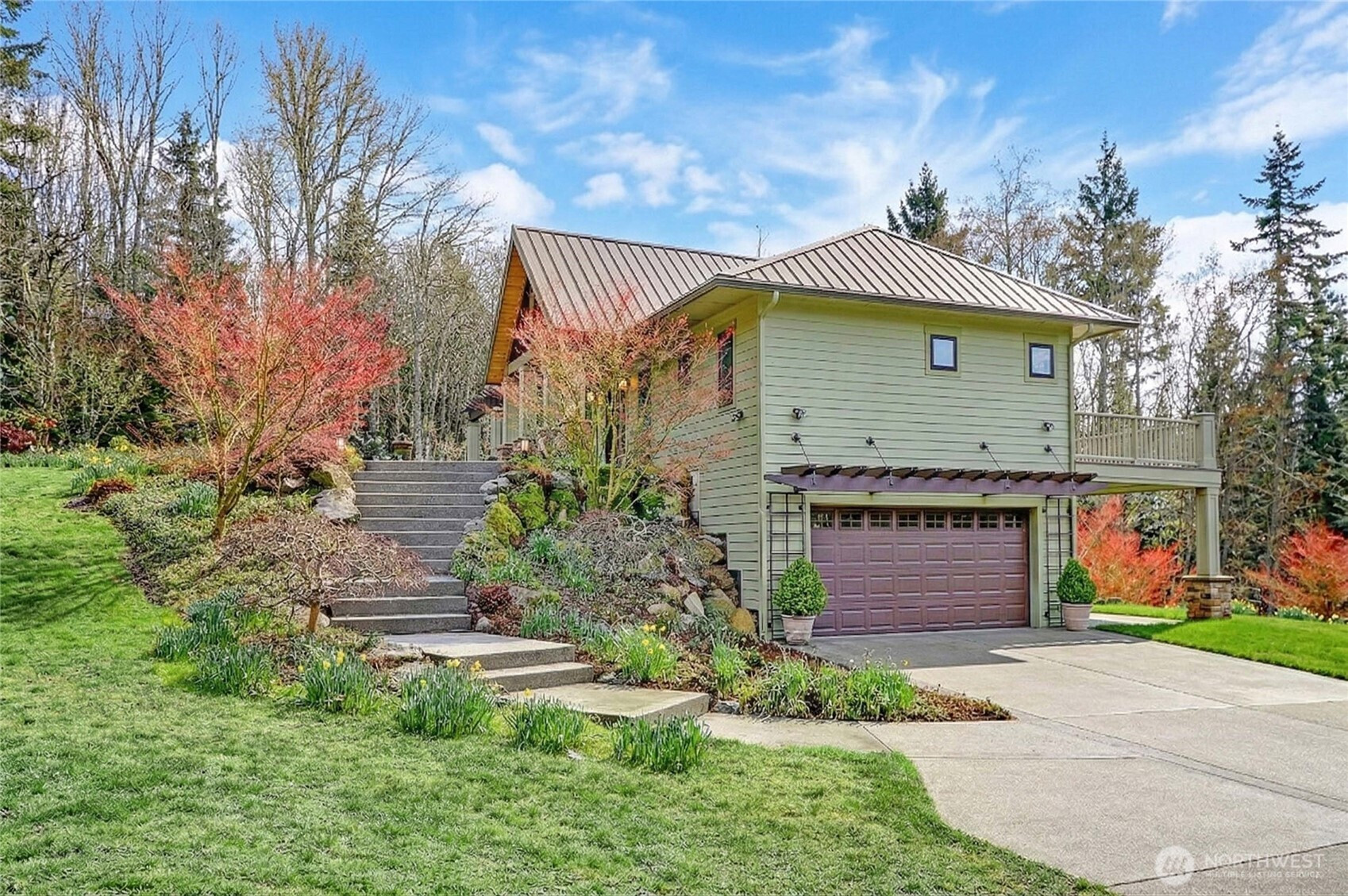 Custom-built Northwest retreat on nearly 3 park-like acres with professional landscaping and gated entry. Designed with timeless style and durable finishes including radiant heated tile floors and a metal roof. The main-level primary suite offers a walk-in closet, private ensuite & access to the SW facing deck. The living room features vaulted ceilings, a cozy gas fireplace, and high-end Anderson windows and doors that flood the space with natural light. The open-concept daylight basement provides tons of flexibility with a full bath, laundry, and open living space currently used as an additinoal primary suite and bonus area, plus walk-out patio access. Newly upgraded tankless water heater with 5-year warranty and a Generac whole-home generator for year round comfort. Custom blinds, solid surface countertops, fenced garden area with shed, and a fully paved driveway complete this exceptional property. Ideally located just minutes from two state parks and a boat launch. 3-bedroom septic.