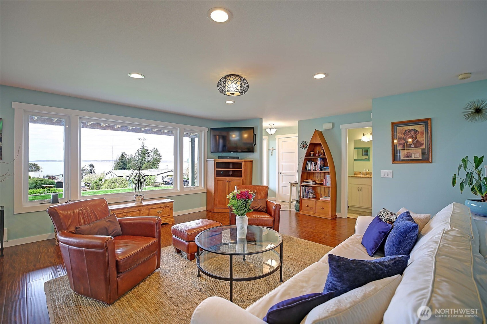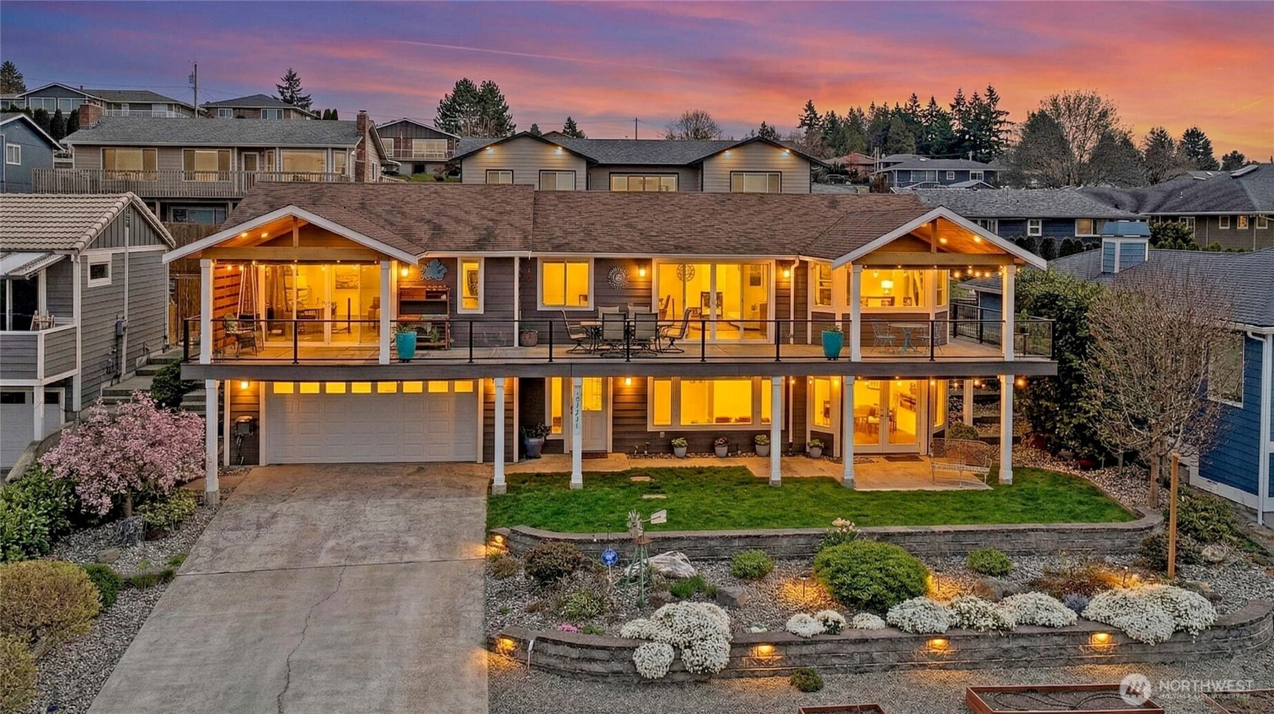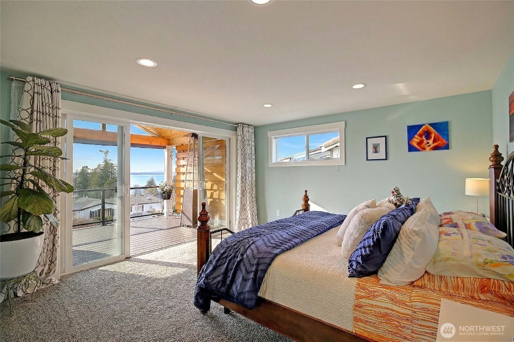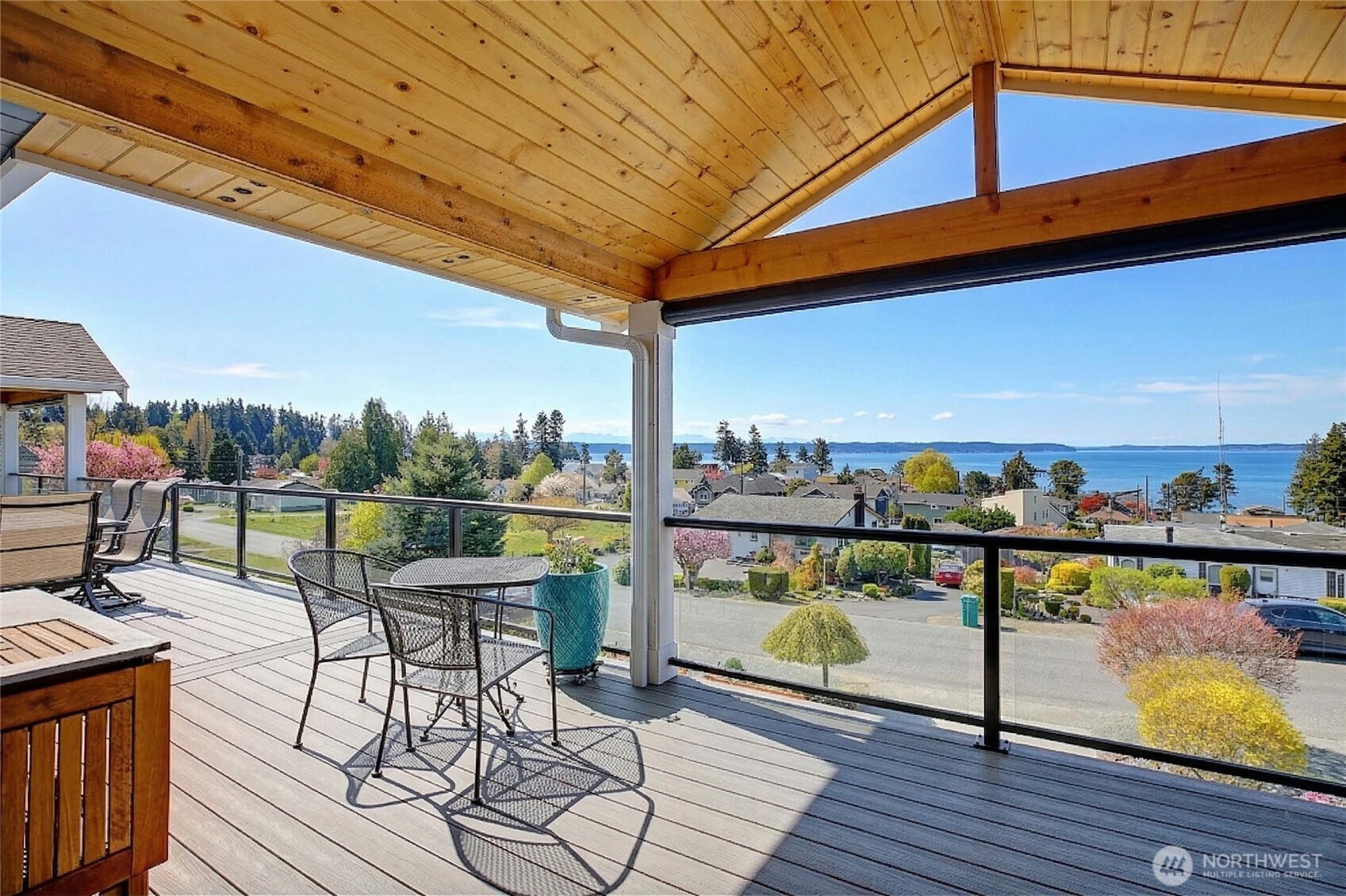 Luxurious Madrona Beach home with exclusive beach rights & gorgeous Westside views from every room, including a full-length upper deck to enjoy the beauty of Puget Sound! Expertly designed, this home exudes quality: Chef's kitchen crafted w custom cabinets, featuring deep drawers for convenient access, stainless appliances, an open layout flowing to dining, living room, patio, custom millwork, guest bath, engineered hardwood floors & Milgard windows! The upper level awaits w stunning views, including a great room for entertaining & relaxation, opening to an expansive deck, well-appointed office that could easily double as a guest room w a Murphy bed, bonus storage & two spacious primary suites. Main primary delights w water view & sliding doors to deck, plush carpet, walk-in closet & a lavish ensuite complete w heated floors, granite counters, linen storage & deluxe, frameless, dual-end rainshower equipped w multiple jets & fixtures! The second primary provides an oasis for your guests to relax with a view, attached bath w heated floors, elegant shower, granite counters, & spacious closet. Outdoor features: easy-care landscaping, raised garden beds, fenced backyard w privacy fence, solar lighting, fruit trees, manicured level yard, generator pad w hard-wiring, plenty of room to park your boat or RV, attached 2-car garage w storage cabinets. No HOA's! This quiet, friendly neighborhood is one of Camano's finest gems w private beach & yacht club just blocks away. Welcome Home!