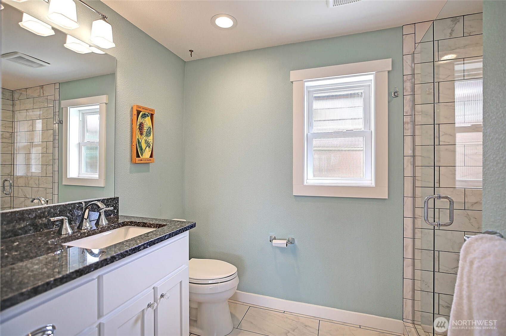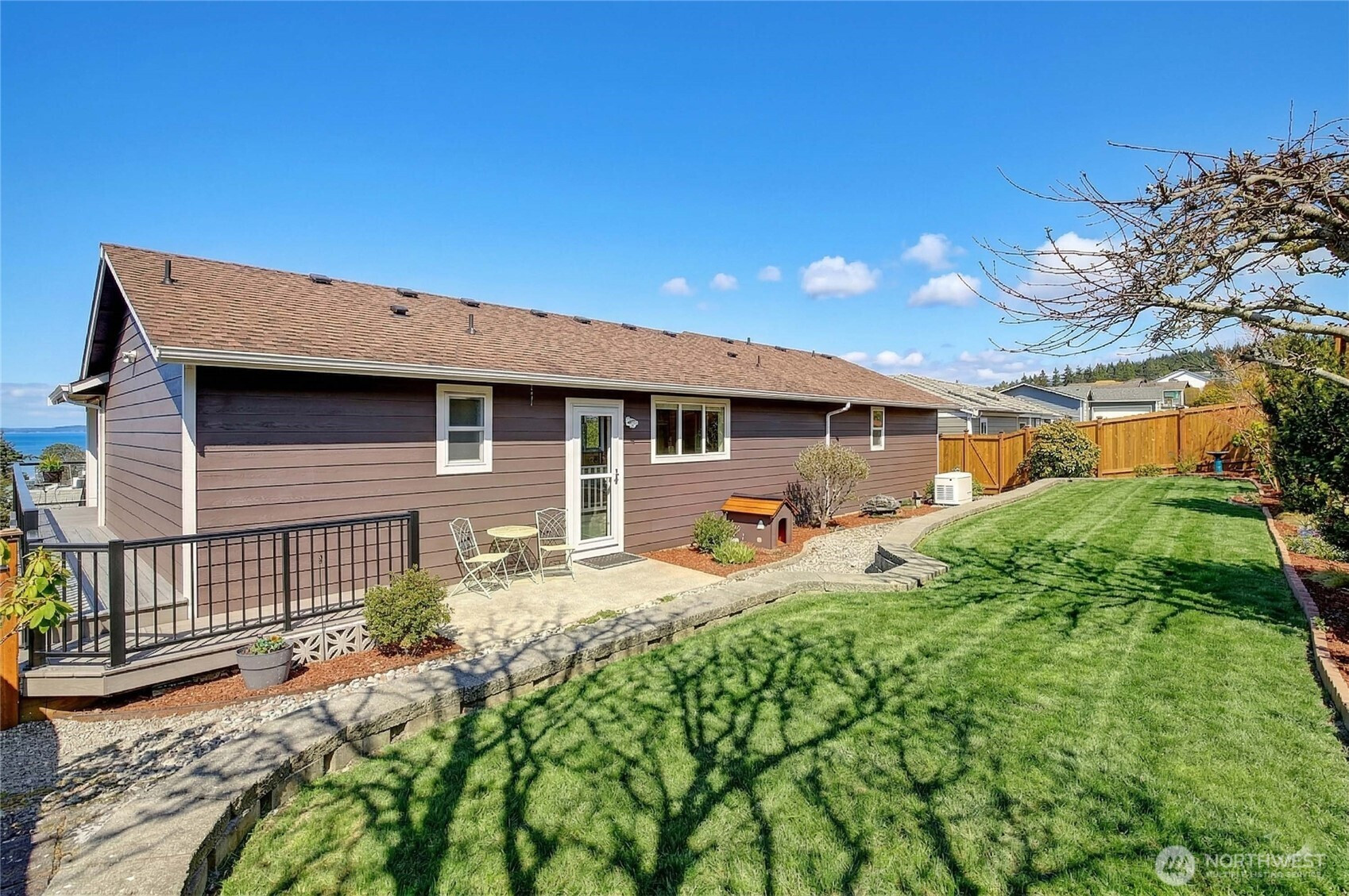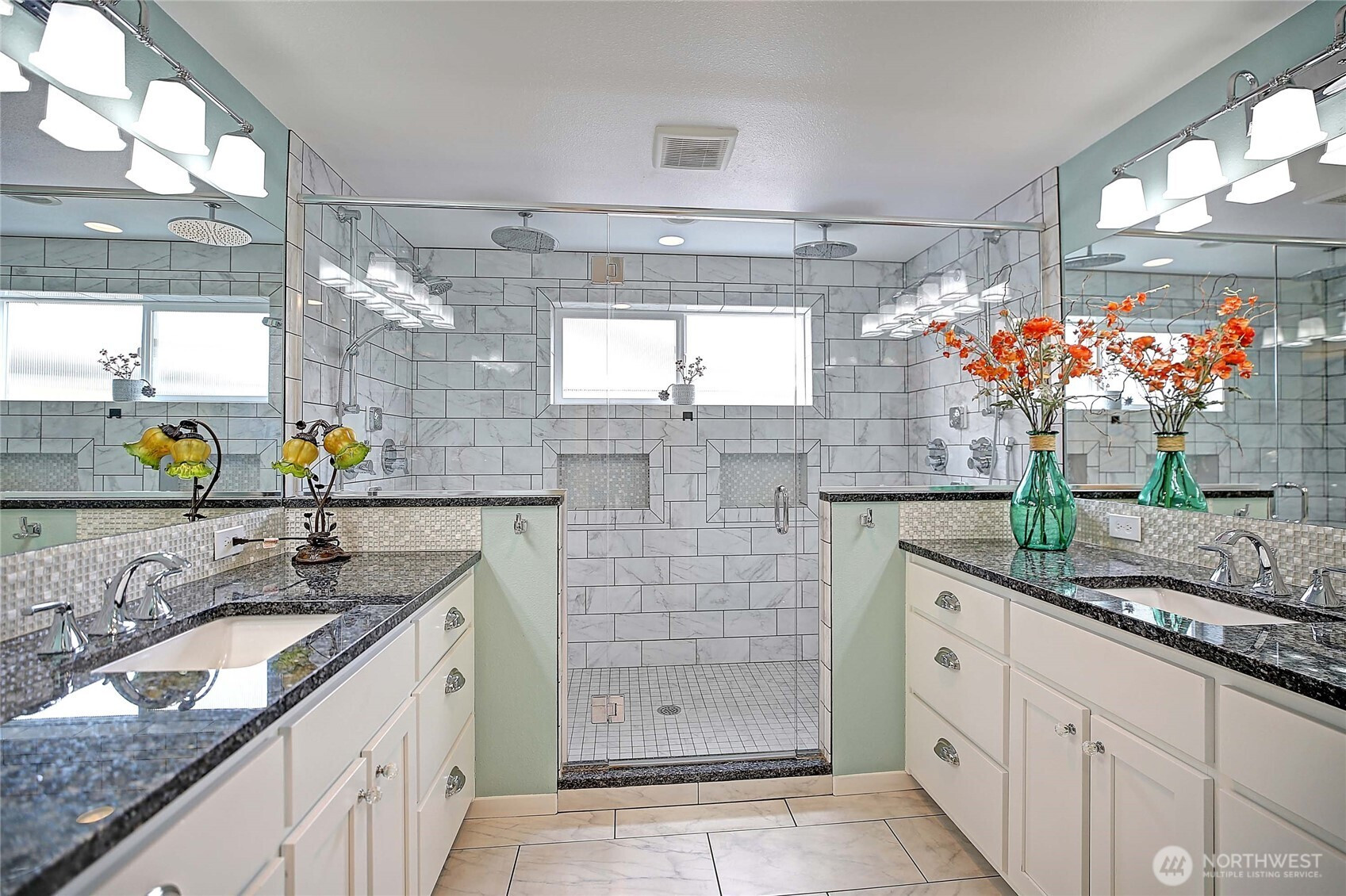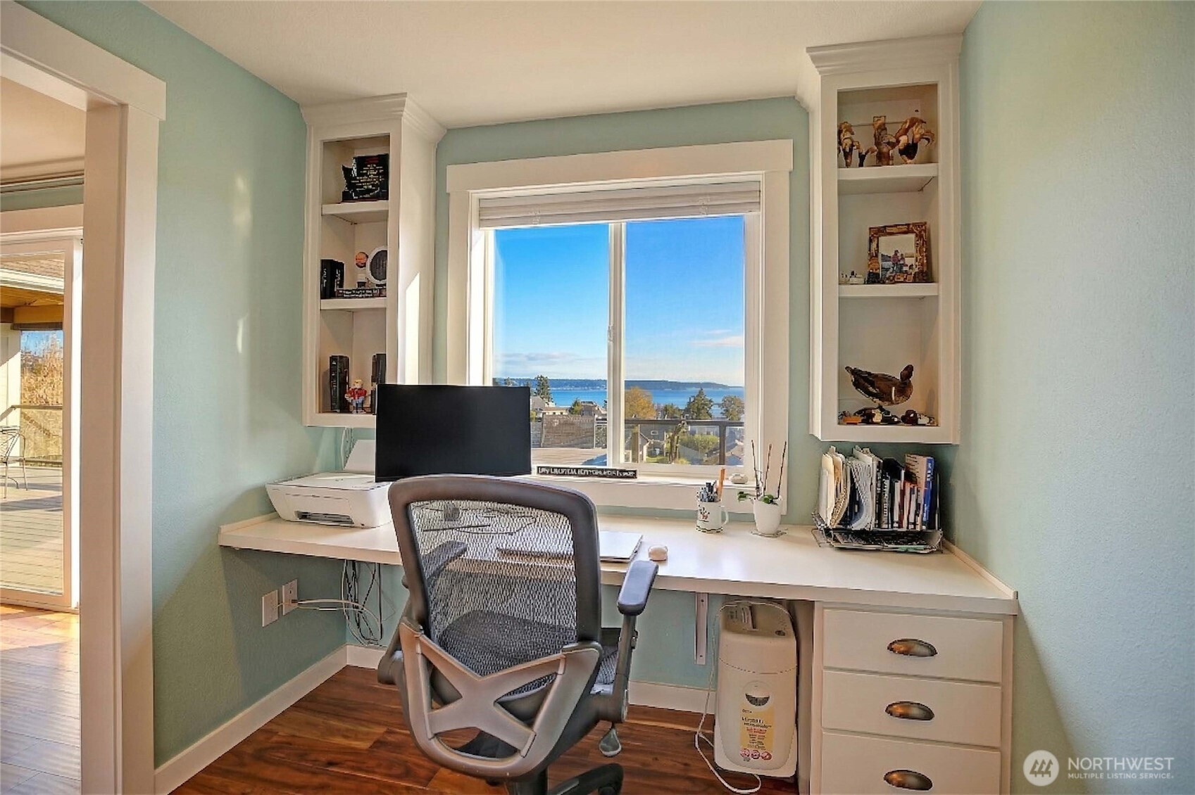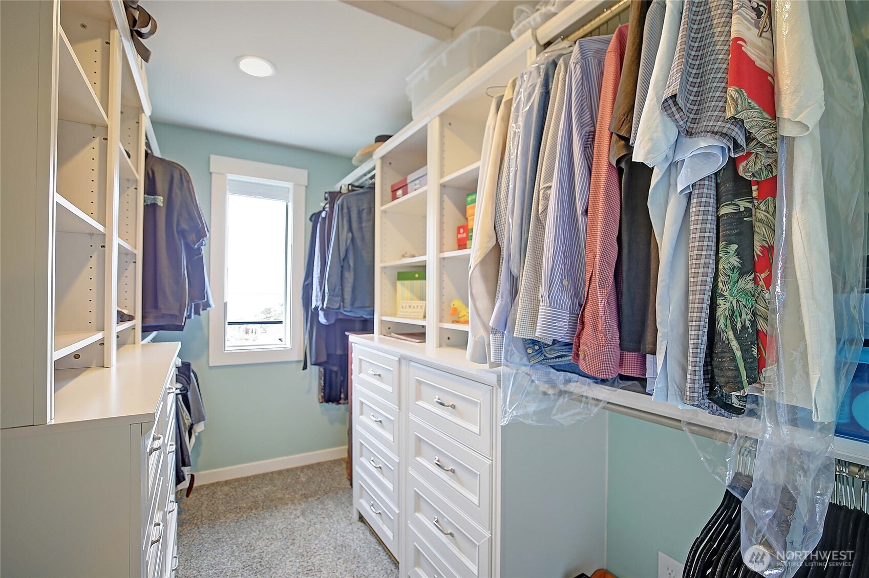 Luxurious Madrona Beach home with exclusive beach rights & gorgeous Westside views from every room, including a full-length upper deck to enjoy the beauty of Puget Sound! Expertly designed, this home exudes quality: Chef's kitchen crafted w custom cabinets, featuring deep drawers for convenient access, stainless appliances, an open layout flowing to dining, living room, patio, custom millwork, guest bath, engineered hardwood floors & Milgard windows! The upper level awaits w stunning views, including a great room for entertaining & relaxation, opening to an expansive deck, well-appointed office that could easily double as a guest room w a Murphy bed, bonus storage & two spacious primary suites. Main primary delights w water view & sliding doors to deck, plush carpet, walk-in closet & a lavish ensuite complete w heated floors, granite counters, linen storage & deluxe, frameless, dual-end rainshower equipped w multiple jets & fixtures! The second primary provides an oasis for your guests to relax with a view, attached bath w heated floors, elegant shower, granite counters, & spacious closet. Outdoor features: easy-care landscaping, raised garden beds, fenced backyard w privacy fence, solar lighting, fruit trees, manicured level yard, generator pad w hard-wiring, plenty of room to park your boat or RV, attached 2-car garage w storage cabinets. No HOA's! This quiet, friendly neighborhood is one of Camano's finest gems w private beach & yacht club just blocks away. Welcome Home!