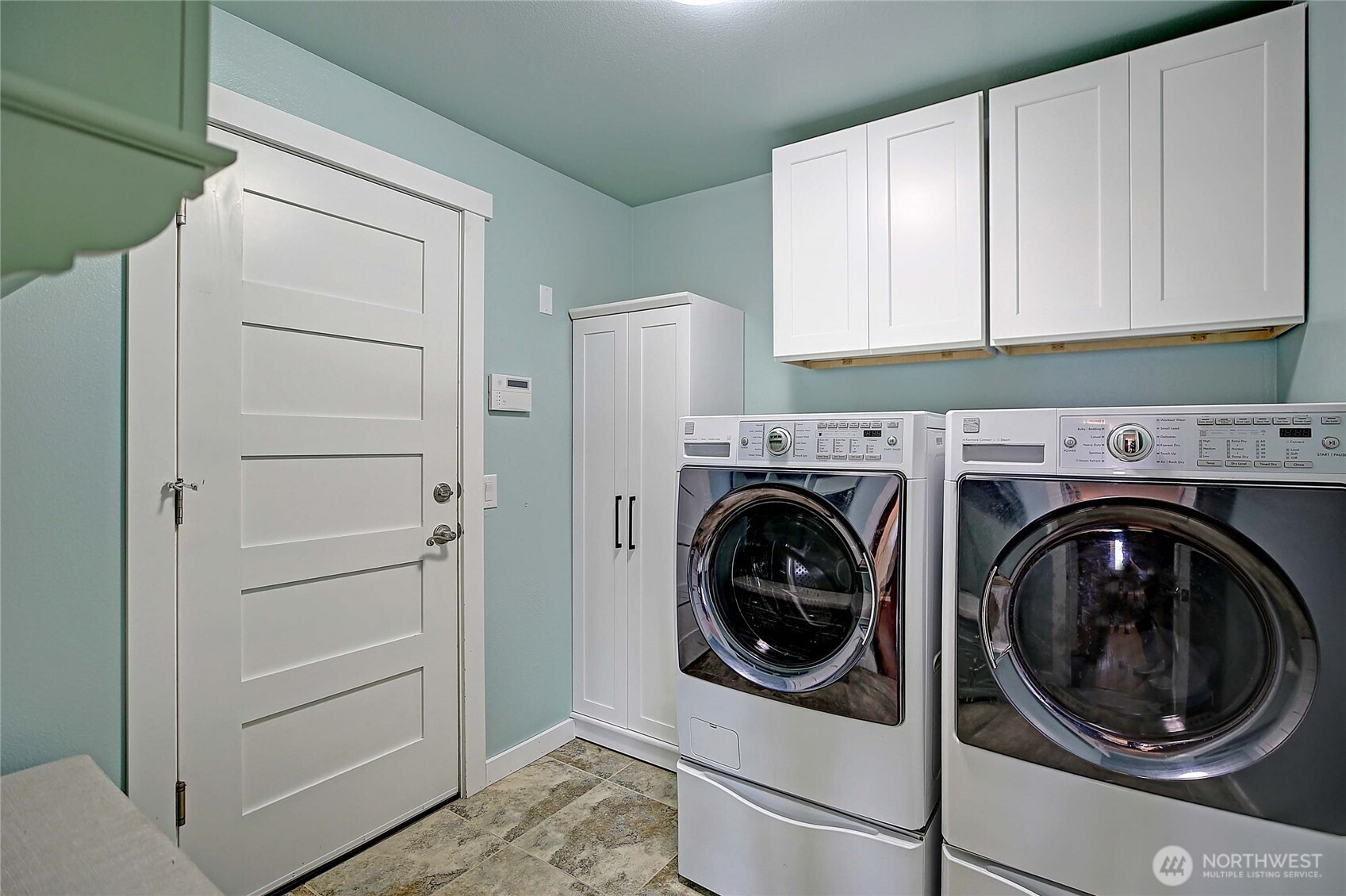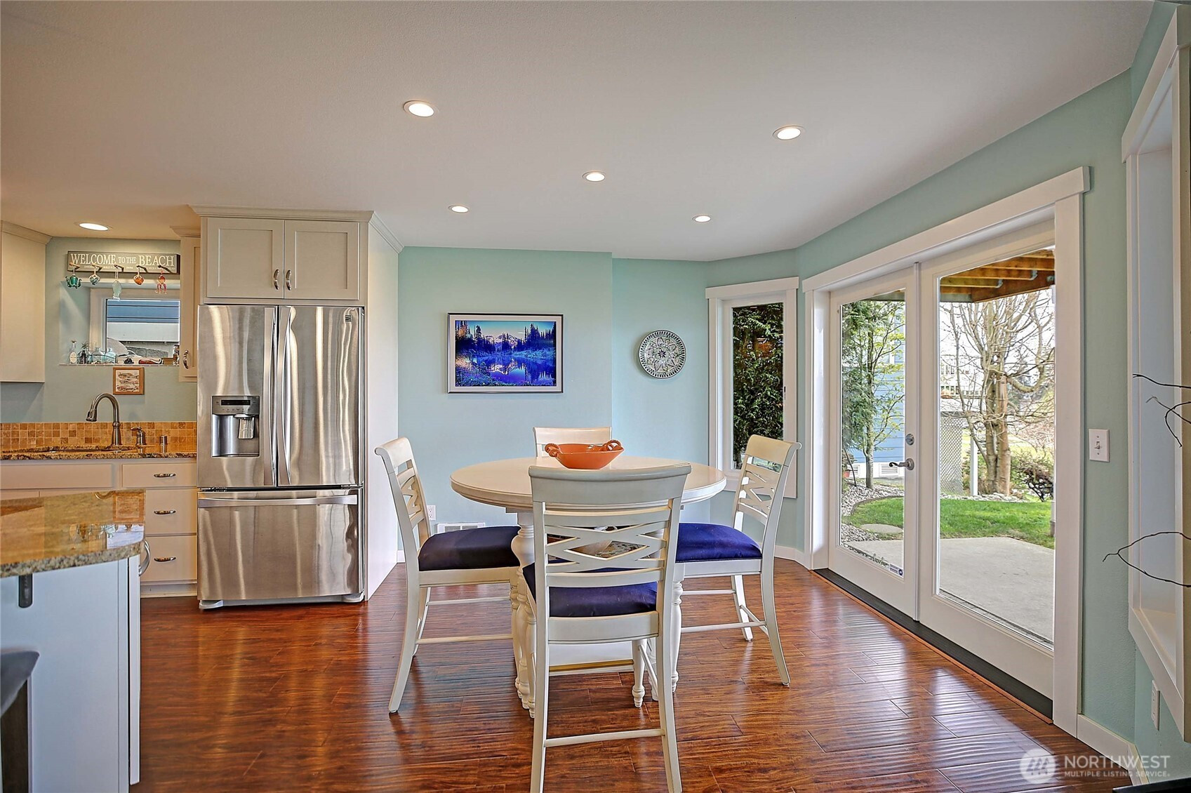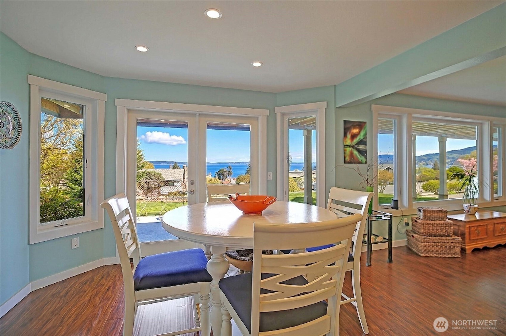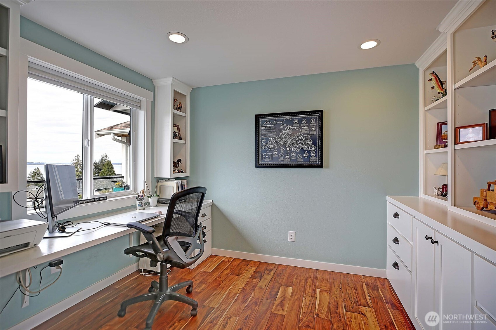 Luxurious Madrona Beach home with exclusive beach rights & gorgeous Westside views from every room, including a full-length upper deck to enjoy the beauty of Puget Sound! Expertly designed, this home exudes quality: Chef's kitchen crafted w custom cabinets, featuring deep drawers for convenient access, stainless appliances, an open layout flowing to dining, living room, patio, custom millwork, guest bath, engineered hardwood floors & Milgard windows! The upper level awaits w stunning views, including a great room for entertaining & relaxation, opening to an expansive deck, well-appointed office that could easily double as a guest room w a Murphy bed, bonus storage & two spacious primary suites. Main primary delights w water view & sliding doors to deck, plush carpet, walk-in closet & a lavish ensuite complete w heated floors, granite counters, linen storage & deluxe, frameless, dual-end rainshower equipped w multiple jets & fixtures! The second primary provides an oasis for your guests to relax with a view, attached bath w heated floors, elegant shower, granite counters, & spacious closet. Outdoor features: easy-care landscaping, raised garden beds, fenced backyard w privacy fence, solar lighting, fruit trees, manicured level yard, generator pad w hard-wiring, plenty of room to park your boat or RV, attached 2-car garage w storage cabinets. No HOA's! This quiet, friendly neighborhood is one of Camano's finest gems w private beach & yacht club just blocks away. Welcome Home!