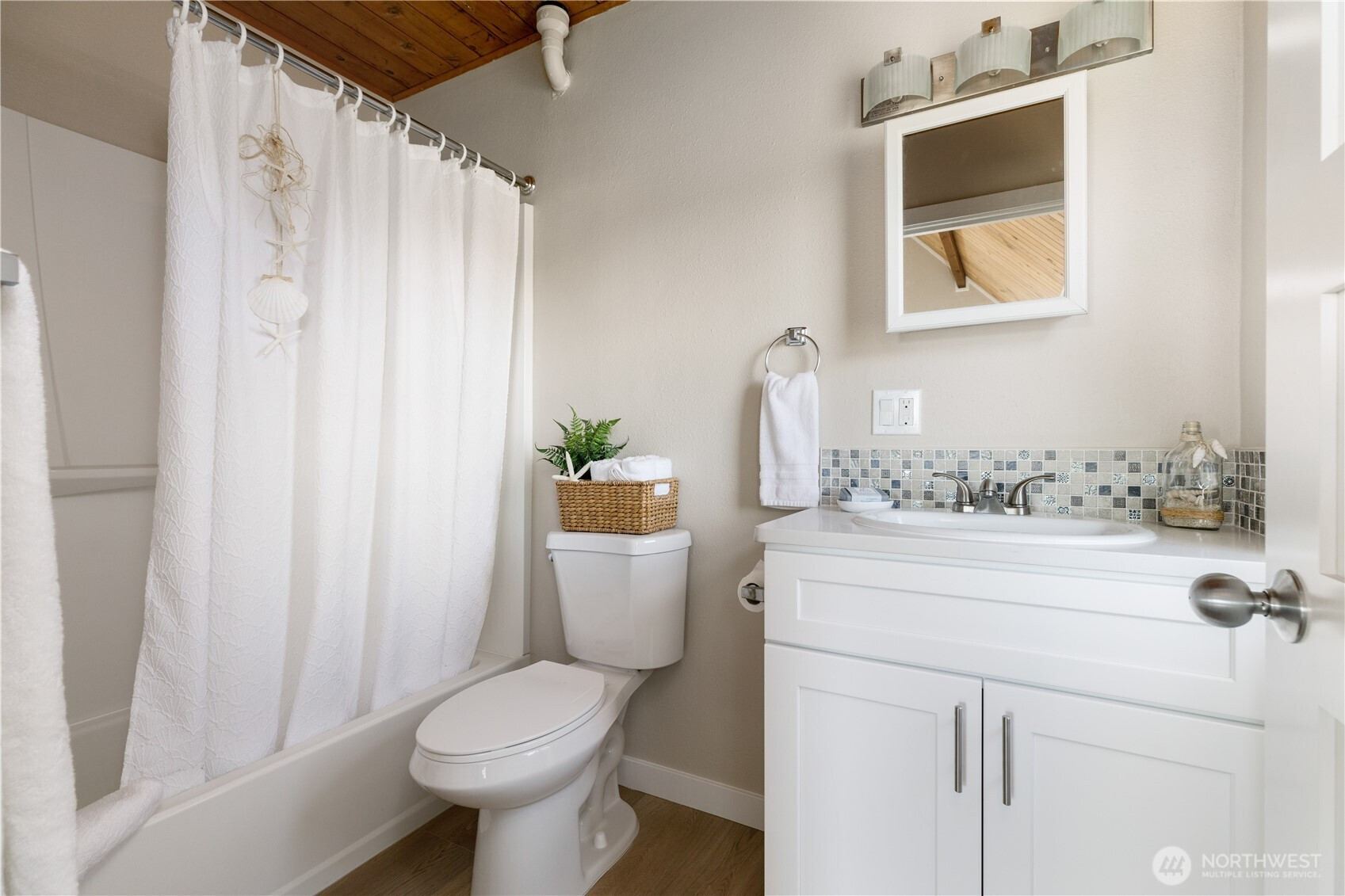 Adorable Northwest Beach Cottage. Completely renovated. Artistically maintained with views of Ocean / Sound & Olympic Mountains. Southern facing, 2 spacious view decks. Territorial views off the northern facing back deck with piped BBQ propane surrounded by wildlife and nature in every direction. A short distance to Beach walking/exploring, salmon fishing from the shore, Kayaking and everything you love to do on Whidbey Island Beaches. Lot 28 next door is included. Small shop for your water toys and a crawl/basement for more storage. Previously used as short term rental. This delightful cottage is bursting with Island happiness