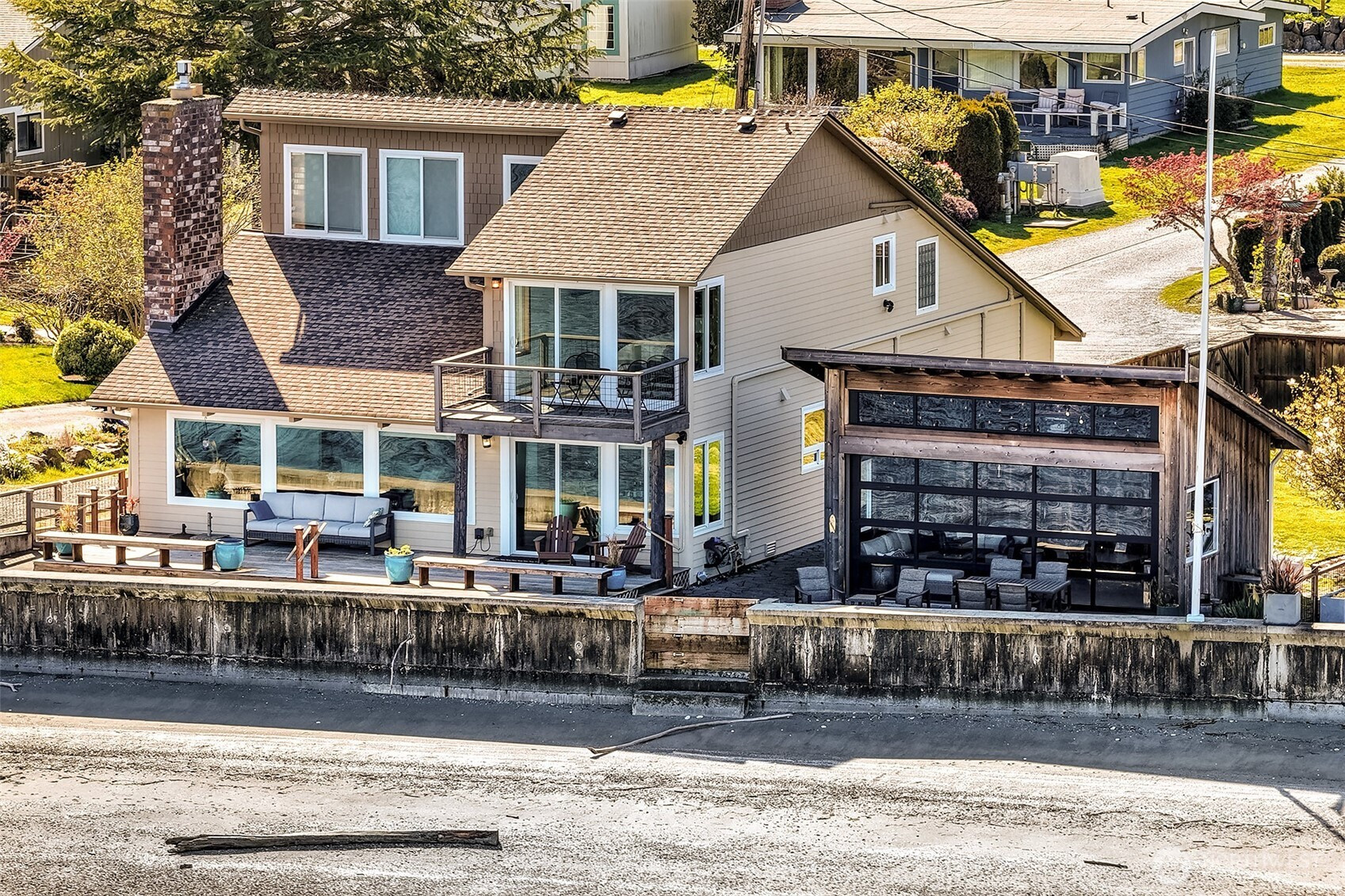 Welcome to The Beach House in Sunlight Shores! This fully remodeled home captures the spirit of island life and is truly an Entertainer’s Dream, thoughtfully designed to maximize the Western views of Useless Bay and beyond. Upstairs you’re greeted to a spacious living room and kitchen w/ eating space, custom maple cabinetry, SS appliances, and granite counters. Upstairs you’ll also find 2 bedrooms, a bathroom, and ~800 sqft of deck space. Downstairs, enjoy more versatile living space with 2 private entrances, a second kitchen with new SS appliances, and a bathroom. Bonus features include a 216 sqft storage room, a lush garden-like yard, and close to the community features: a clubhouse w/ heated pool, large lawn, and direct beach access.