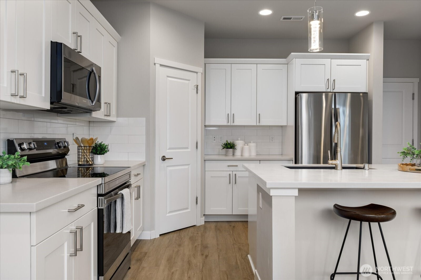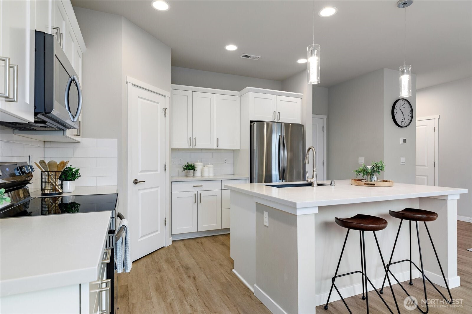 (503) 893-8874Set in a private yet centrally located pocket of town--with custom nearly-new construction & effortlessly stylish interior--this home has it all! With 1738 square feet, highlights: 3 bedrooms, 2.25 baths, & a spacious Great room with vaulted ceilings, durable LVP floors, & oversized picture windows. The thoughtfully designed kitchen has polished quartz counters, custom cabinetry, deluxe walk-in pantry & entertaining island/breakfast bar. The dining space is intimate & open w/fast access to your level patio & low maintenance yard. Wow! When you add in the efficient heat-pump (offering year-round comfort), 2-car garage, & nominal dues that cover landscaping, community park/play area & more? You've just unlocked an amazing place to call home!