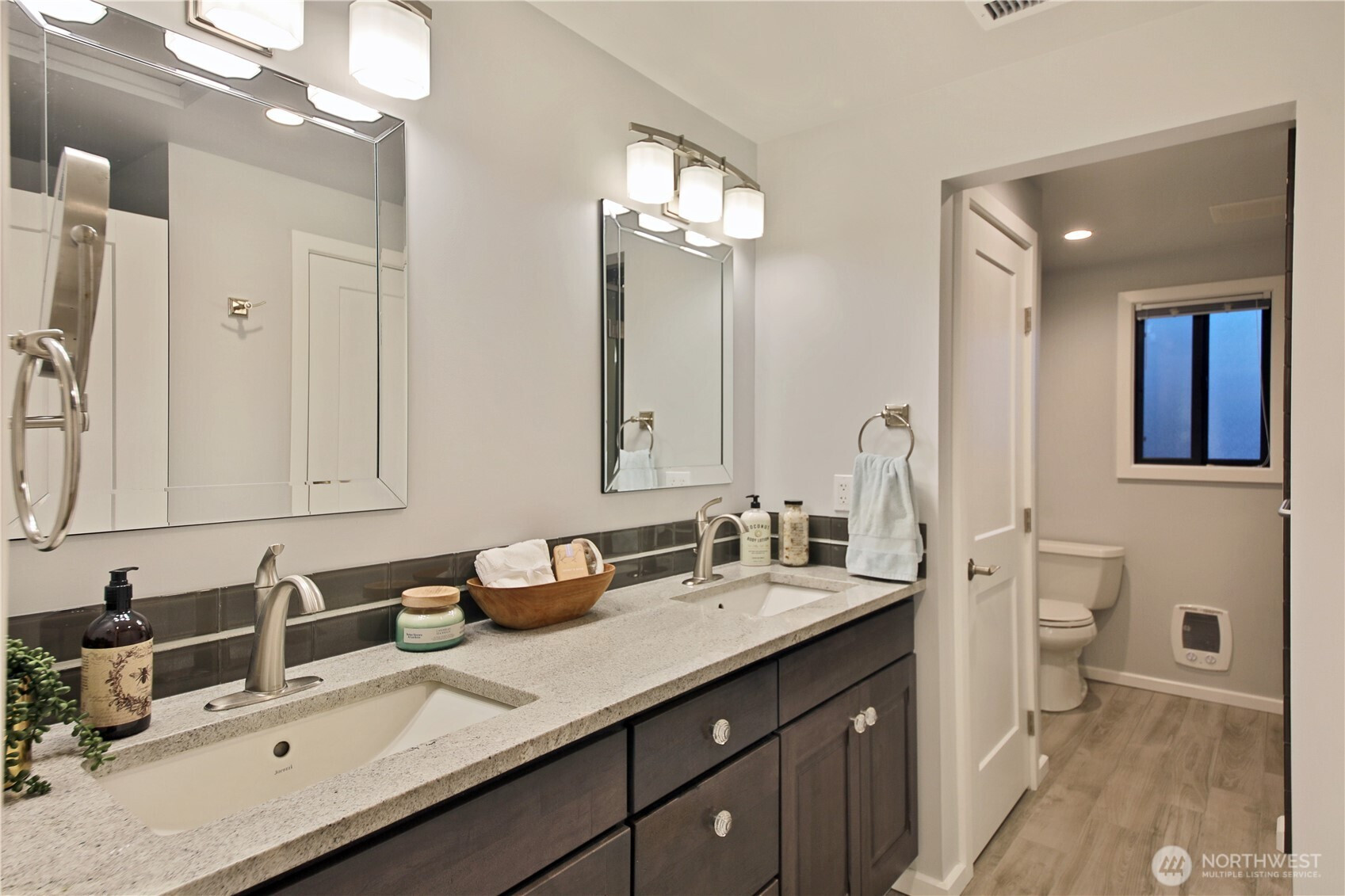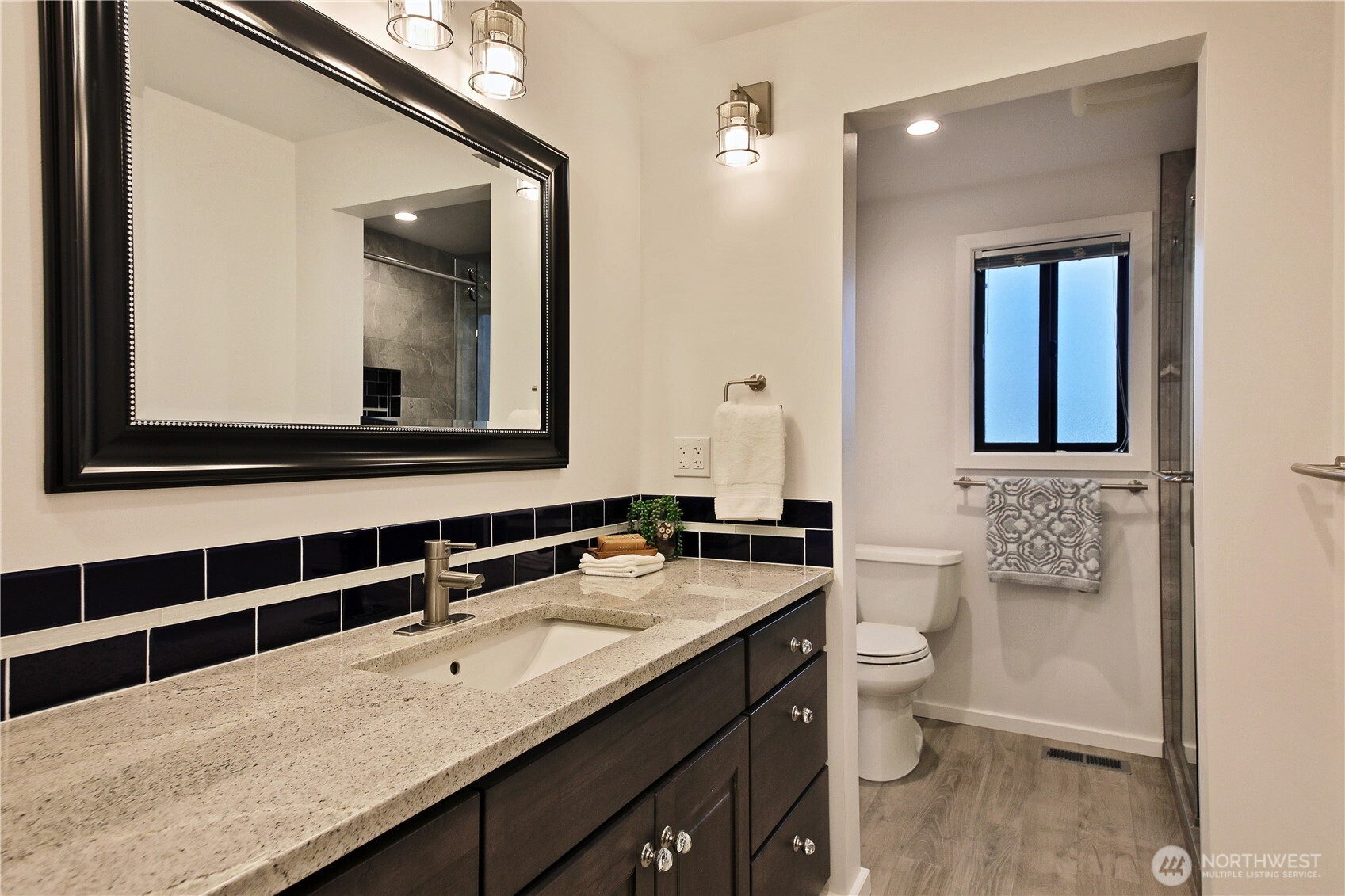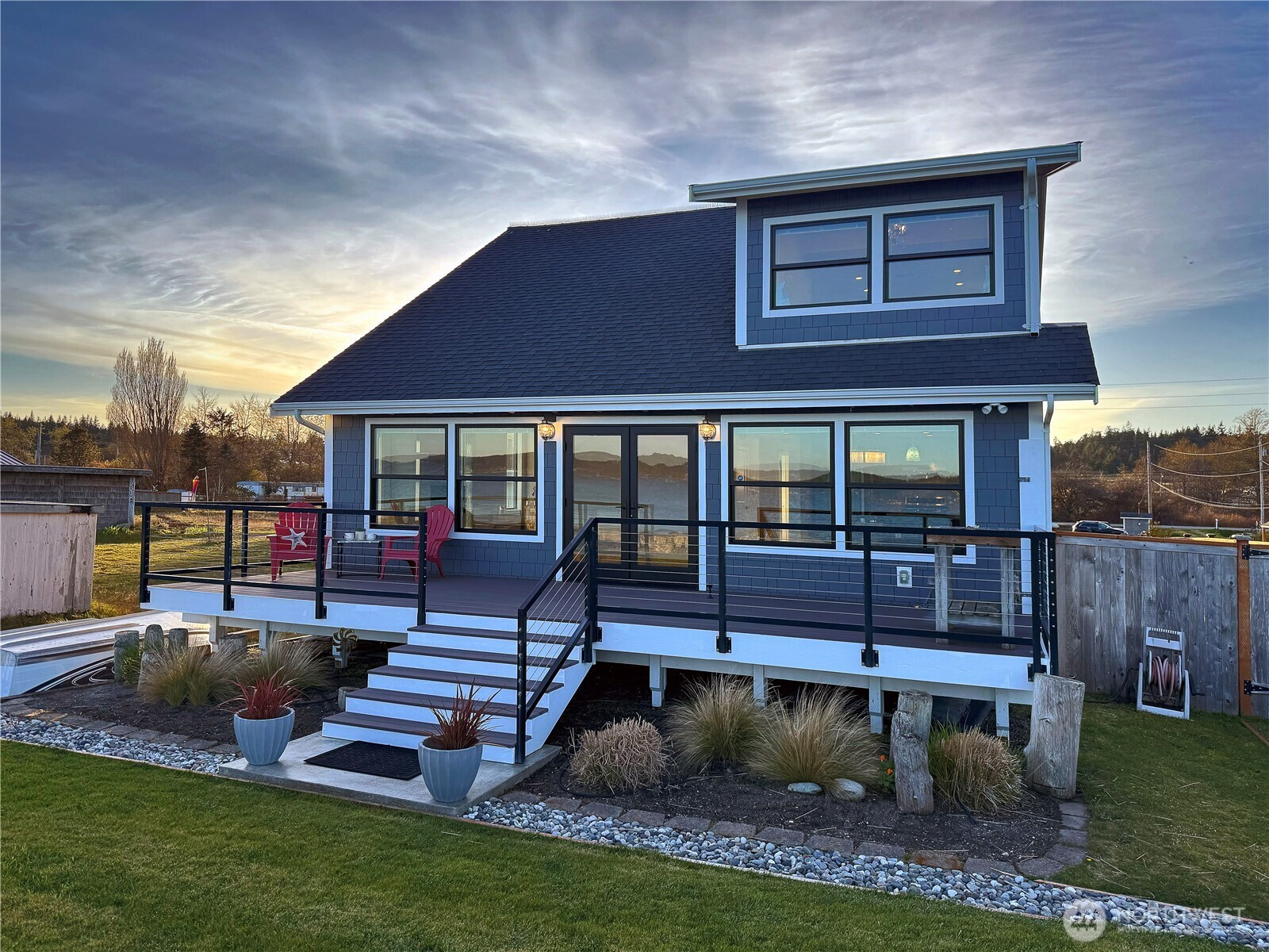 This builder's own personal home is a high-quality remodel! The large & level lot is low-bank & low-maintenance with stunning East-facing 180* mountain and sound views! On arrival, you are greeted by an oversized garage with an additional unfinished 704+/- sqft of endless possibilities. Plenty of room for an RV, large boat & projects here! As you enter the fully fenced courtyard, the cozy 160+/- sqft cottage is perfect for guests or a studio. Continue to the main house where beautiful French white oak engineered floors welcome you & incredible views abound the moment you open the door! A large laundry, bedroom & custom cabinetry kitchen make main-level living an easy option. The 2nd floor primary is also expansive, adorning a reading nook, large bathroom & equally sizeable walk-in-closet! The adjoining bonus room with a wall-to-wall closet is the ideal flex space with potential to be a 3rd bedroom! This home is very well cared for and built to last. The pride of ownership is immediately apparent upon arrival, a truly turn-key home where function and comfort blend beautifully. Watch sea life in Saratoga Passage from the large deck or beachcomb, fish, harvest from your own oyster beds, & enjoy fresh crab & shrimp with your very own private beach access & tideland rights! This is a truly special place with too many upgrades & features to include here-reach out for the list and check out the video for more!