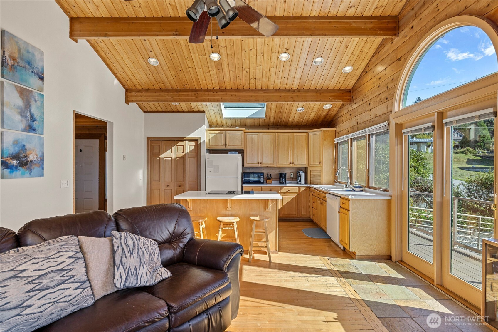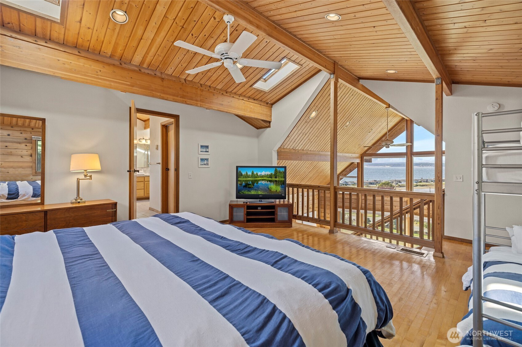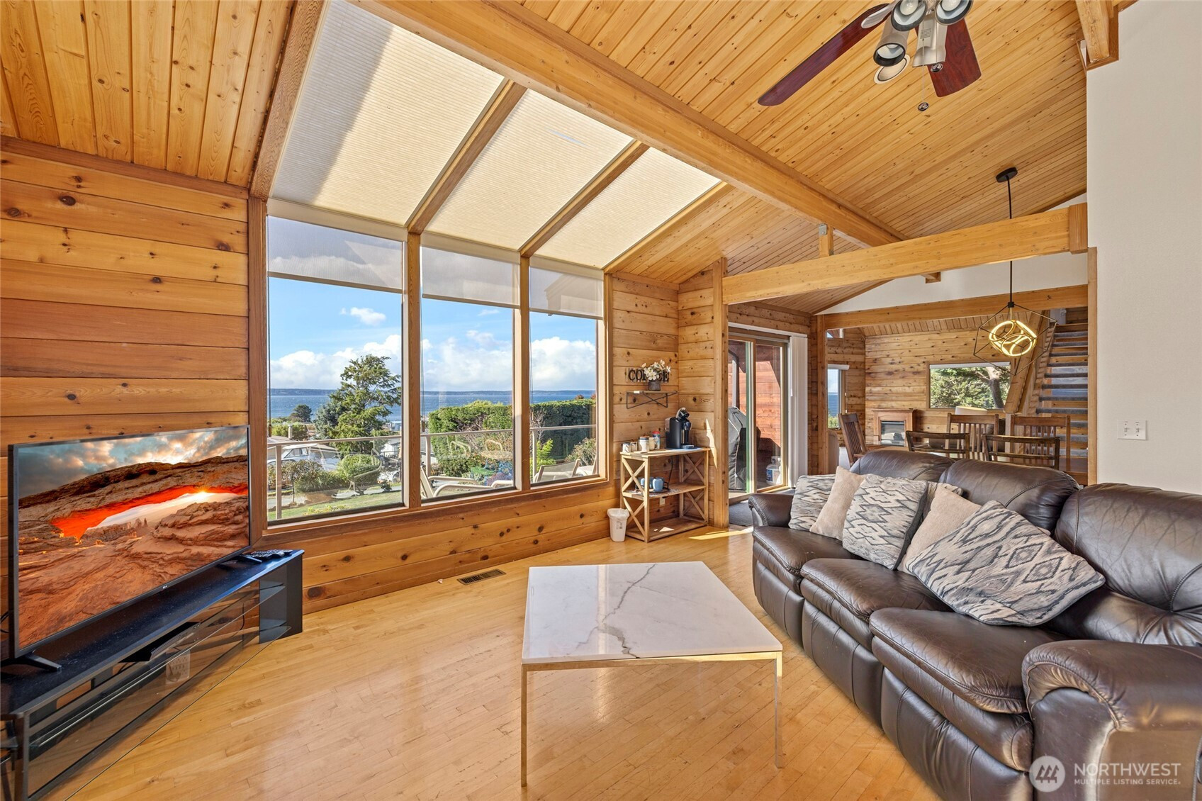 (503) 893-8874Looking for panoramic westside views of the shipping channel and Olympic Mountains? You’ll find them here in this stunning Lindal Cedar Home. Soaring prow windows & vaulted ceilings showcase the scenery with 180-degree views, while the spacious loft master suite offers a private retreat in additional to a bedroom on the main-floor. The lower level provides a versatile bonus/rec room plus an additional office, den, or sleeping area. Entertain with ease from the large open kitchen, relax on the expansive view deck, or soak in the hot tub while taking in the breathtaking surroundings. Upgrades include a new roof ('22), home was re-piped ('22), heat pump ('23), & a Kinetico Water Softener/Filter (2019). This is island living at its finest!