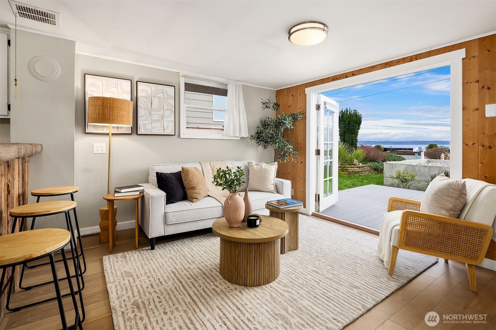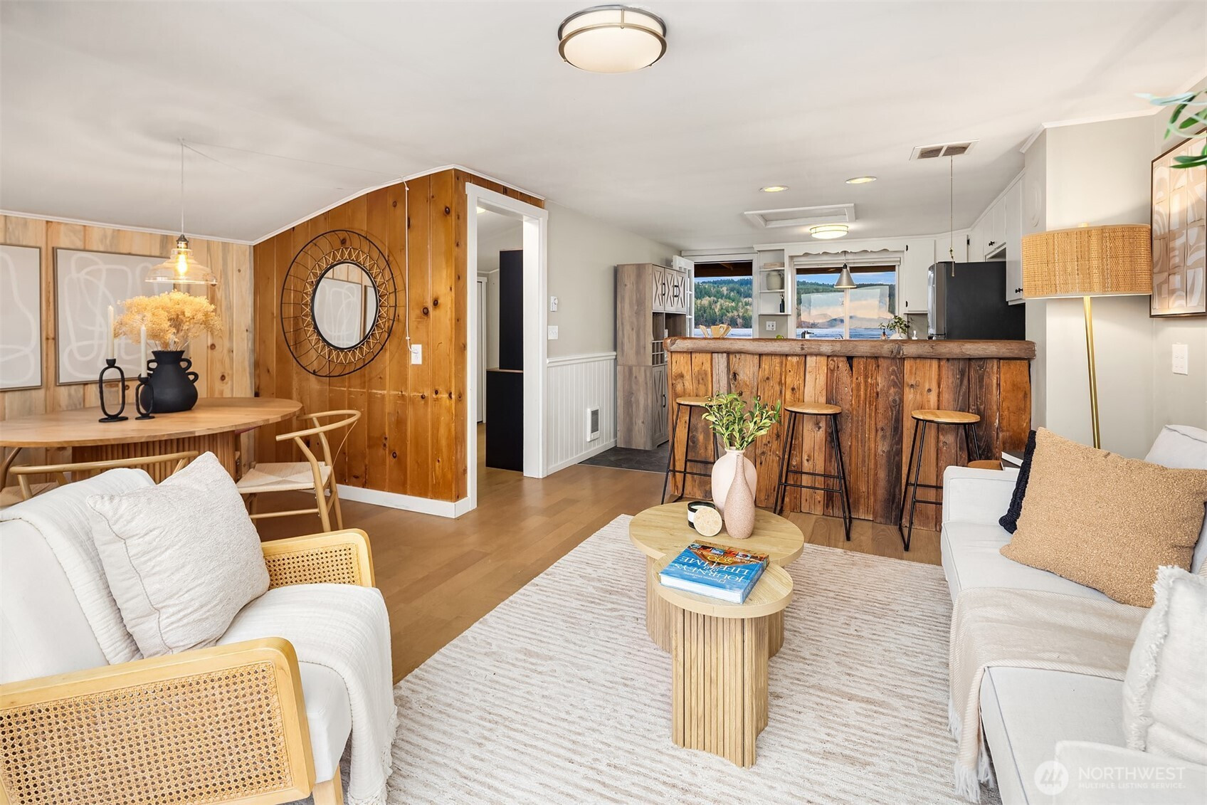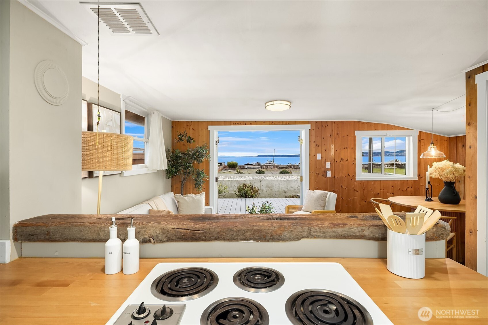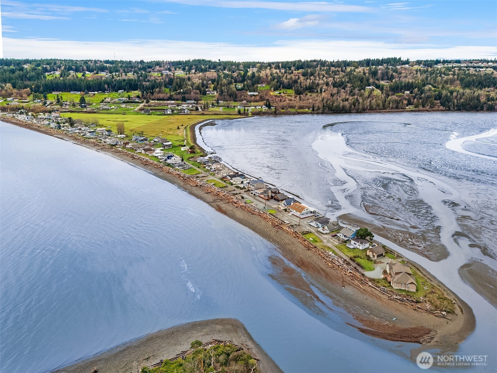 Escape to your own waterfront paradise, this charming cabin boasts rare level access to the shore. Captivating panoramic views of Port Susan, Barnum Point, and majestic Mt. Rainier await! Inside, enjoy cozy evenings by the wood-stove, a spacious walk-in closet, and French doors opening to a durable composite deck. A separate guest bungalow adds versatility for visitors or extra space. Stroll the private beach for treasure hunting and leisurely walks. This delightful cabin feels spacious and inviting—ideal as a peaceful weekend getaway, lucrative vacation rental, or year-round home in the desirable Driftwood Shores. Plus, over $20,000 of recent upgrades including the back deck, pergola, fencing, and a new septic system for peace of mind.