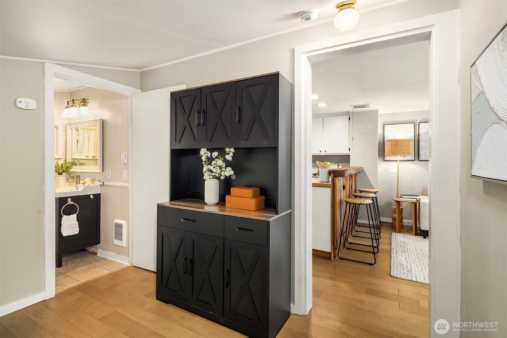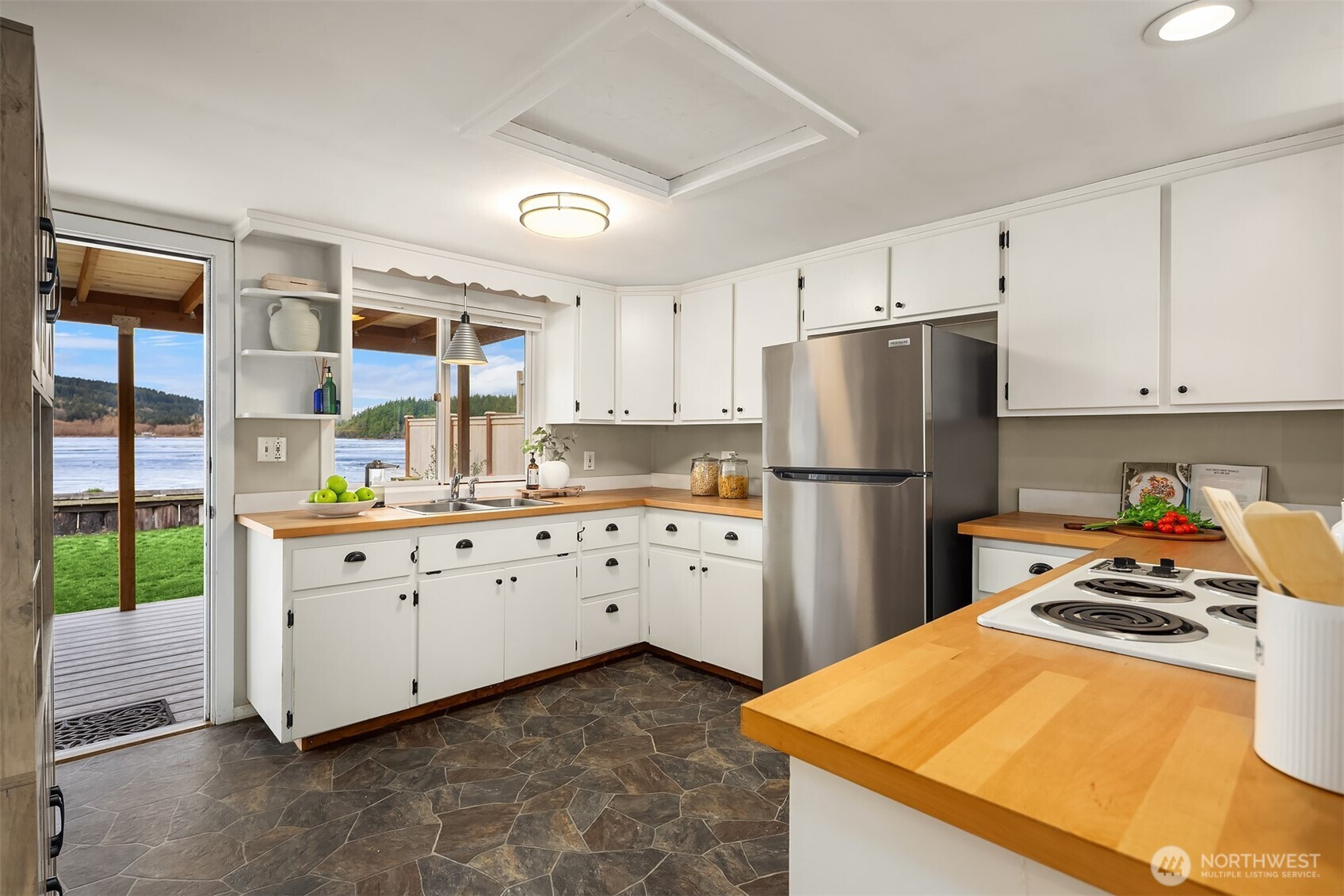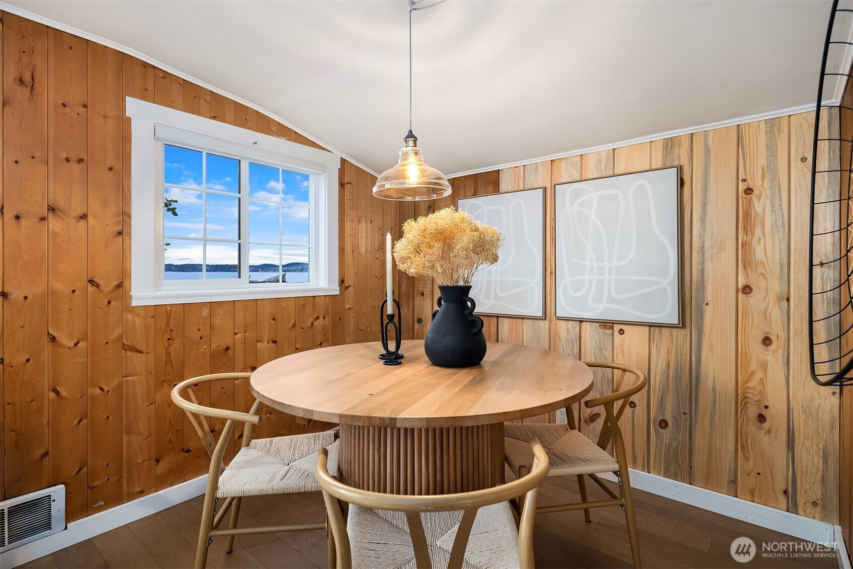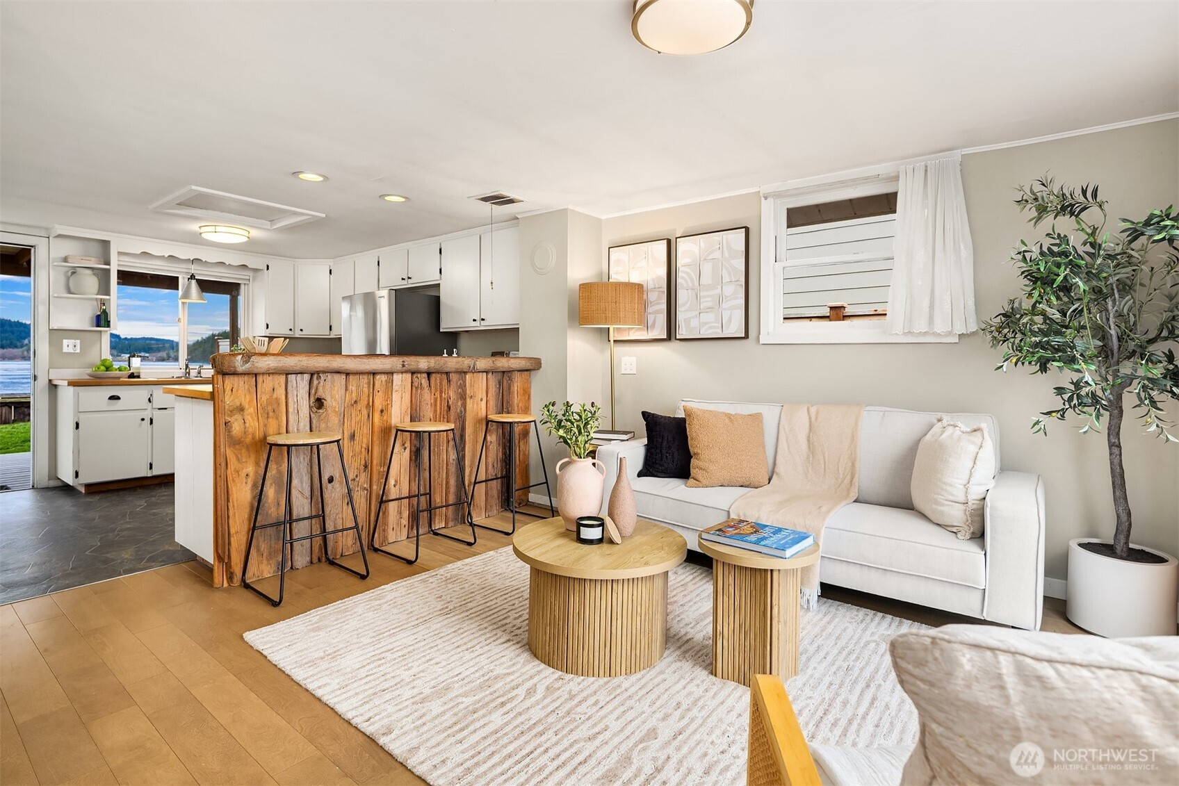 Escape to your own waterfront paradise, this charming cabin boasts rare level access to the shore. Captivating panoramic views of Port Susan, Barnum Point, and majestic Mt. Rainier await! Inside, enjoy cozy evenings by the wood-stove, a spacious walk-in closet, and French doors opening to a durable composite deck. A separate guest bungalow adds versatility for visitors or extra space. Stroll the private beach for treasure hunting and leisurely walks. This delightful cabin feels spacious and inviting—ideal as a peaceful weekend getaway, lucrative vacation rental, or year-round home in the desirable Driftwood Shores. Plus, over $20,000 of recent upgrades including the back deck, pergola, fencing, and a new septic system for peace of mind.
