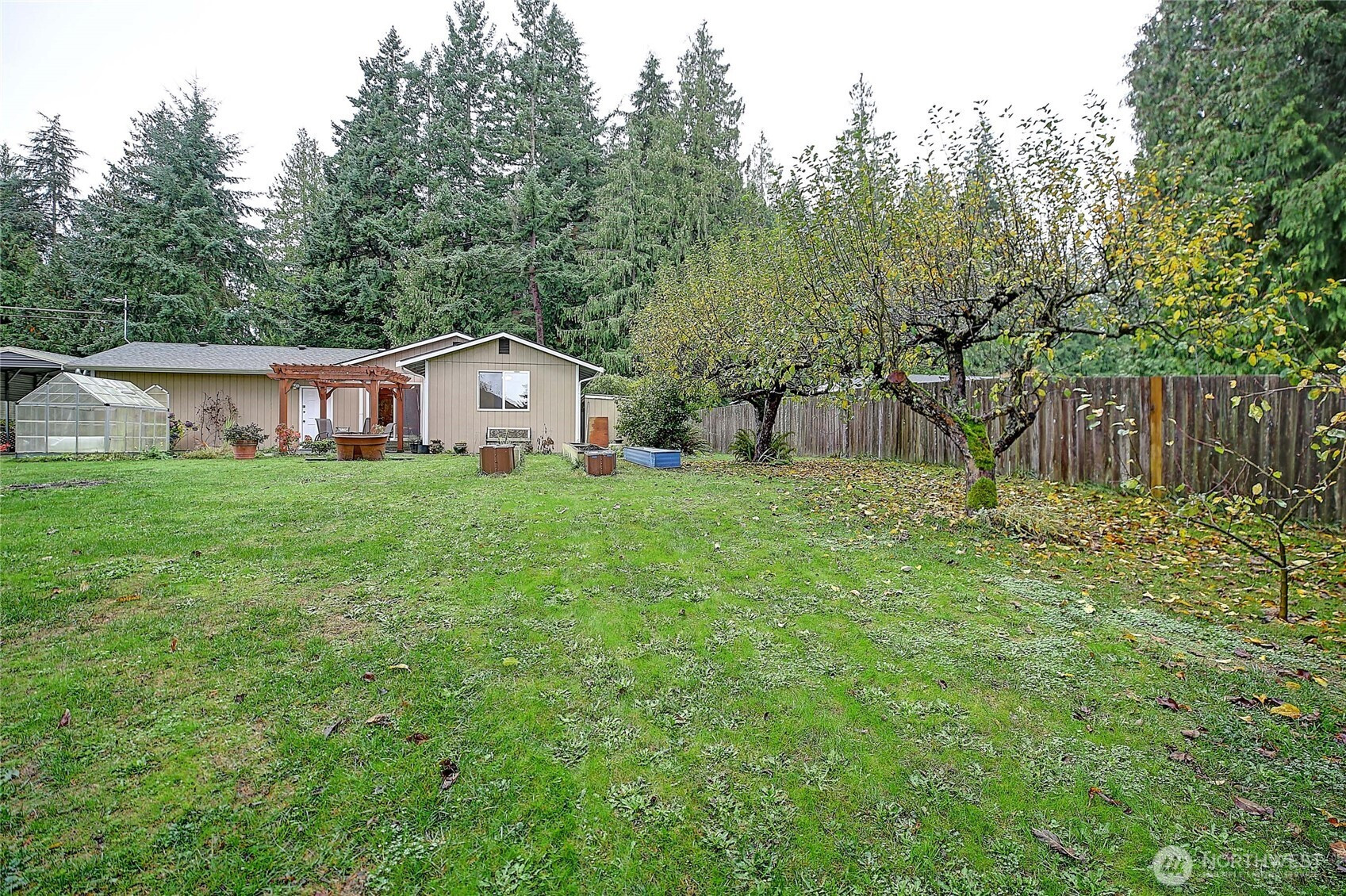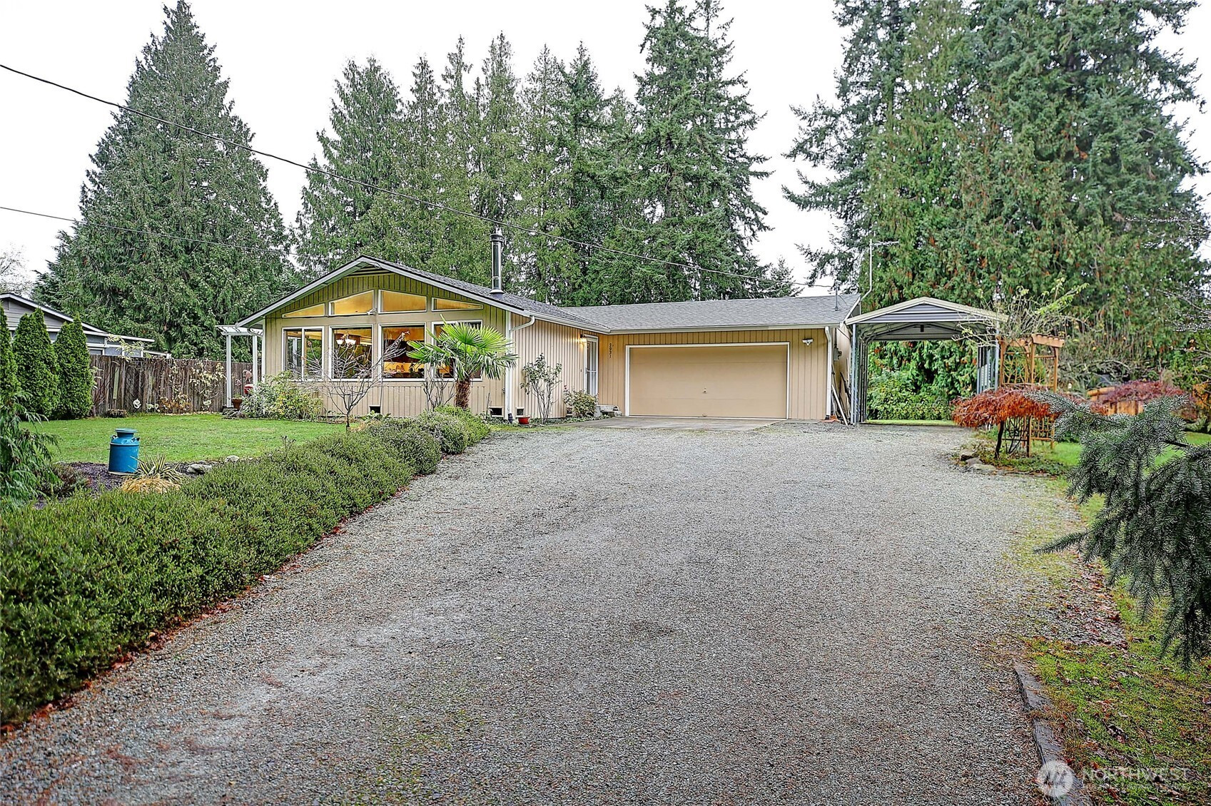 Experience island life in a charming move-in ready rambler nestled between forest and beach. Open concept home boasts a wall of windows, cozy wood-burning stove, gourmet kitchen with stainless appliances and granite countertops. Energy efficient Minisplit provides year round comfort. New pet-friendly luxury vinyl and cushy carpet. Set on generous lot, 2 car garage, covered RV.Fruit trees, greenhouse & raised garden beds will keep you in flowers, fruit & veggies.Enjoy dining and lounging on pergola-shaded patio. Stage your BBQ talent on patio off the dining room. Workshop-ready garage and shed offer loads of storage. Private beach access for launching your kayak and crabbing. Near two State parks. Welcome your guests with no ferry access.