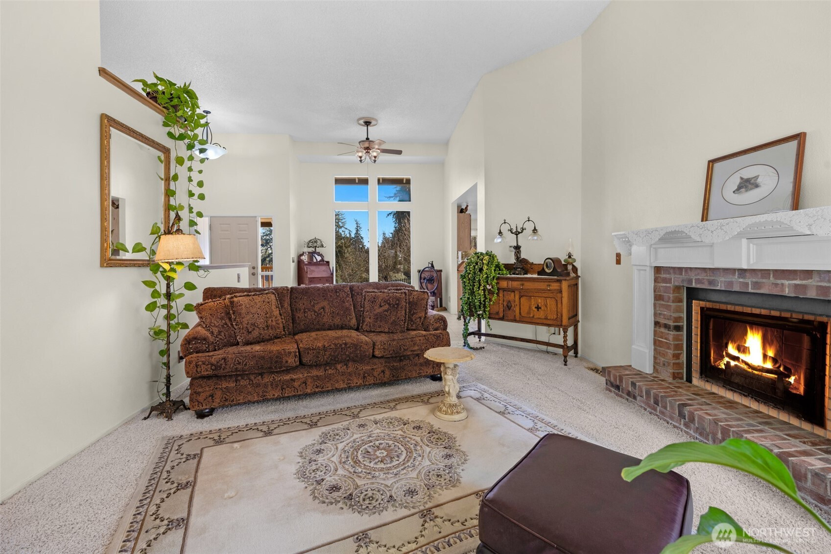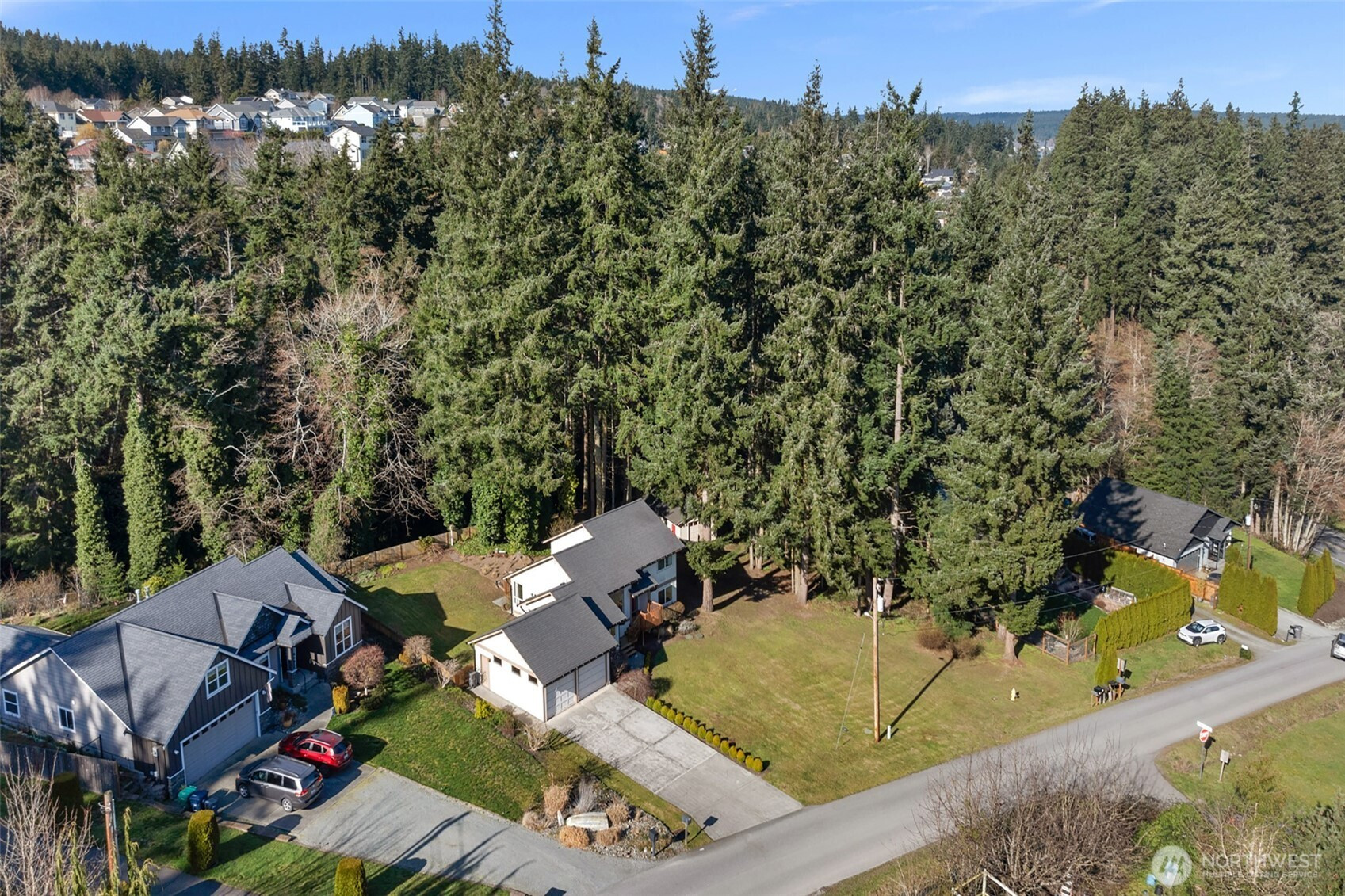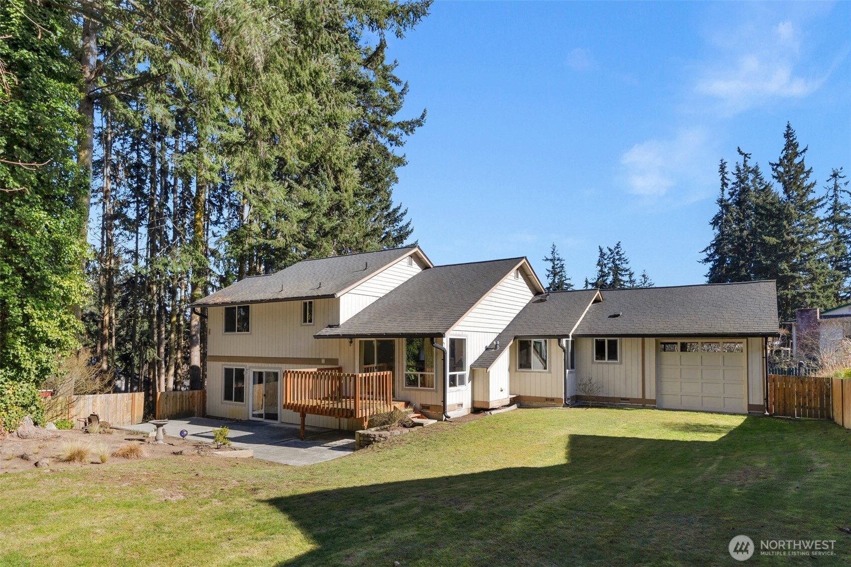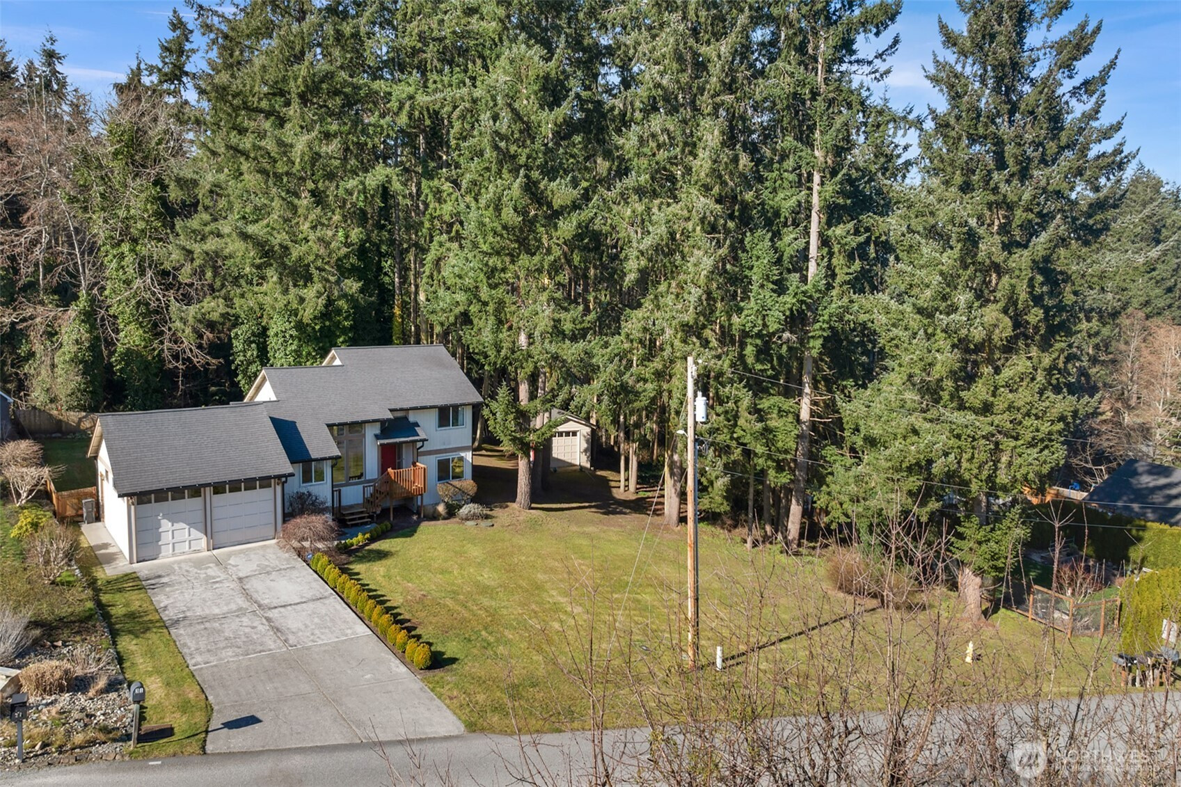 Best priced home on the Island under 500k- Welcome to this beautifully designed tri-level home on Camano Island, offering 1,834 sq ft of living space on a rare, large wooded double lot. Tucked away for privacy yet perfectly positioned, this home captures scenic water and mountain views through stunning floor-to-ceiling windows that fill the space with natural light. Classic brick fireplace anchors the main living area—perfect for cozy evenings. The thoughtful layout offers great separation of space, including two bedrooms plus additional finished room. A three-car tandem garage + an additional detached garage/shop for your toys and hobbies. As part of a desirable community, you’ll have access to three private beaches and a clubhouse, offering the ultimate island lifestyle. Quiet, private, and surrounded by nature, this home is the perfect blend of comfort, views, and Camano Island charm.