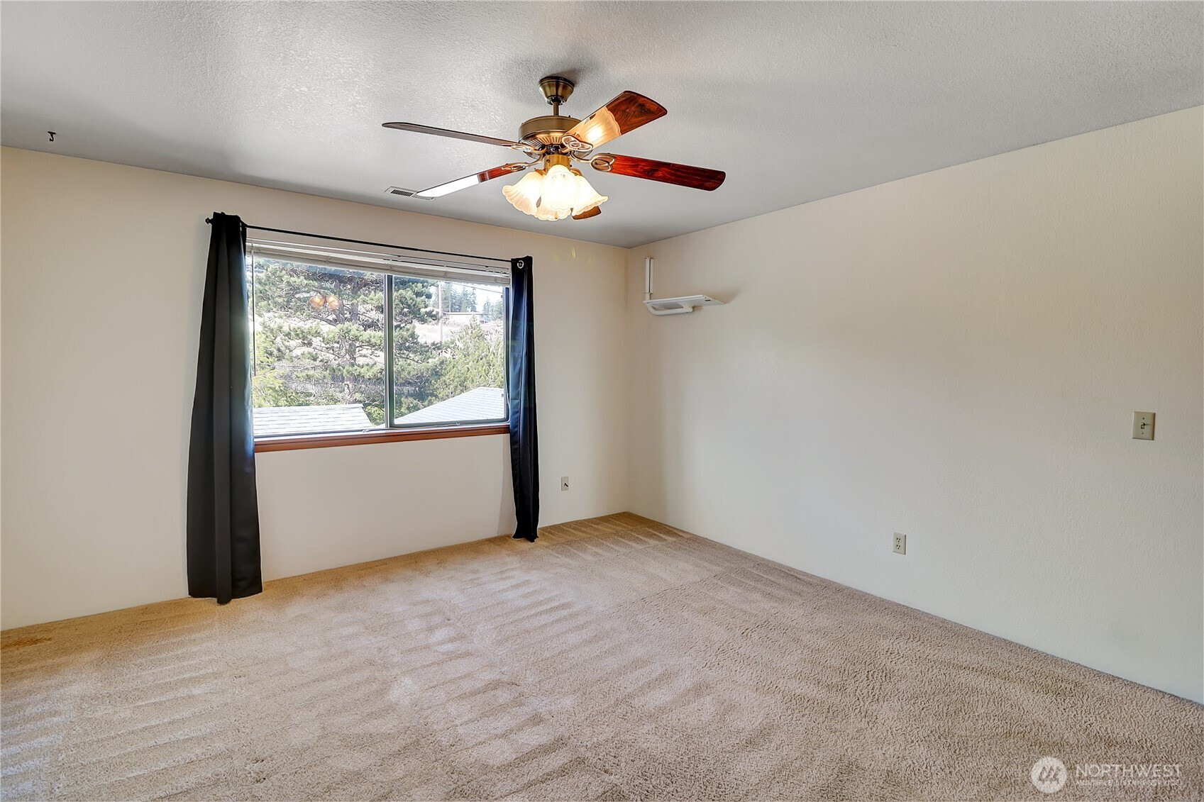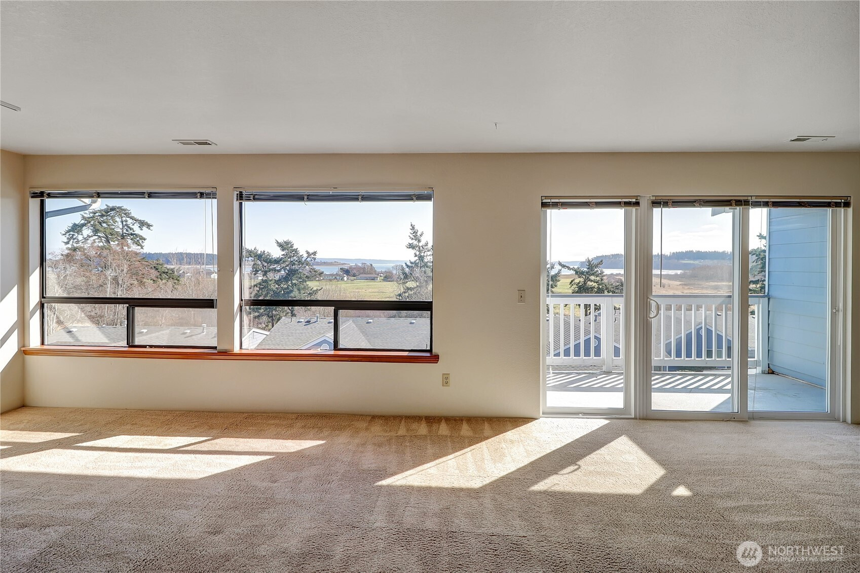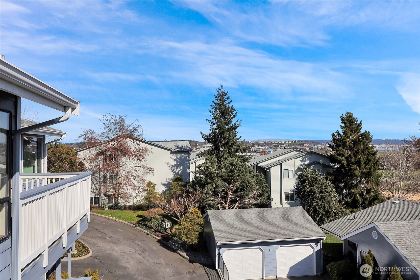 Ideally located 2 bedroom 1.75 bathroom condo with harbor and mountain views. Open concept kitchen with eat in bar and family room with gas fireplace. Dining area with adjacent slider leads to balcony perfect for entertaining. Common bathroom accessible via second bedroom. Private garage for parking or additional storage. Trails behind condominiums leads to downtown stores and Windjammer Park. Incredible opportunity to own a well-maintained view condo with convenient access to shops and community trail!