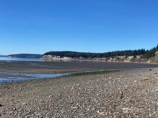 What's not to love? A quintessential fusion of natural beauty and contemporary living, providing privacy + wonderful Sound, Mountain & Island Views; Floor to ceiling wall of windows framing the water view with Eagles and Blue Herons in flight. First time on market. An open-concept & perfect for gatherings or just enjoying each day. Cozy up to the stone fireplace...let the sun shine in! Gorgeous, hardwoods, tongue & groove cathedral ceilings, live edge mantel & shelves. The amazing chef's kitchen with large entertaining island sets the home apart. Primary suite with 5 piece bath + 650 sf of unfinished usable space=nursery, craft, movie, music, reading room, office, storage, so many options! Private beach access in this wonderful friendly, quiet enclave of homes. The tree house, fire-pit area, 2 sheds, 35’ covered RV structure stays. Pre-Inspected! Truly a special place!
