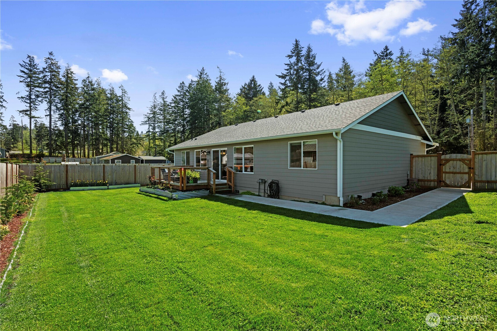 This nearly new 2023-built home offers the perfect blend of modern comfort, thoughtful design, and easy access to the best of Whidbey Island living. Situated on a desirable corner lot, this home welcomes you with natural light and a layout designed for both everyday living and effortless entertaining. Step inside to an open-concept floor plan where the kitchen, dining, and living areas flow seamlessly together—ideal for gathering, hosting, or simply enjoying a quiet evening at home. The kitchen anchors the space, offering ample storage and functionality for daily routines or weekend get-togethers. Three bedrooms and two bathrooms provide flexibility for a variety of living needs, including space for guests, a home office, or hobbies. Outside, the fully fenced, impeccably landscaped yard creates a private retreat—perfect for outdoor dining, play, or relaxing in the fresh coastal air. The corner lot adds a sense of openness while still maintaining privacy and usability. Located within walking distance to the water, this home offers easy access to scenic shoreline strolls and the peaceful rhythm of island life. You’ll also enjoy close proximity to the community clubhouse and pool, adding convenience and opportunities for recreation just moments from your doorstep. With its newer construction, low-maintenance features, and inviting outdoor space, this home presents a rare opportunity to enjoy modern living.