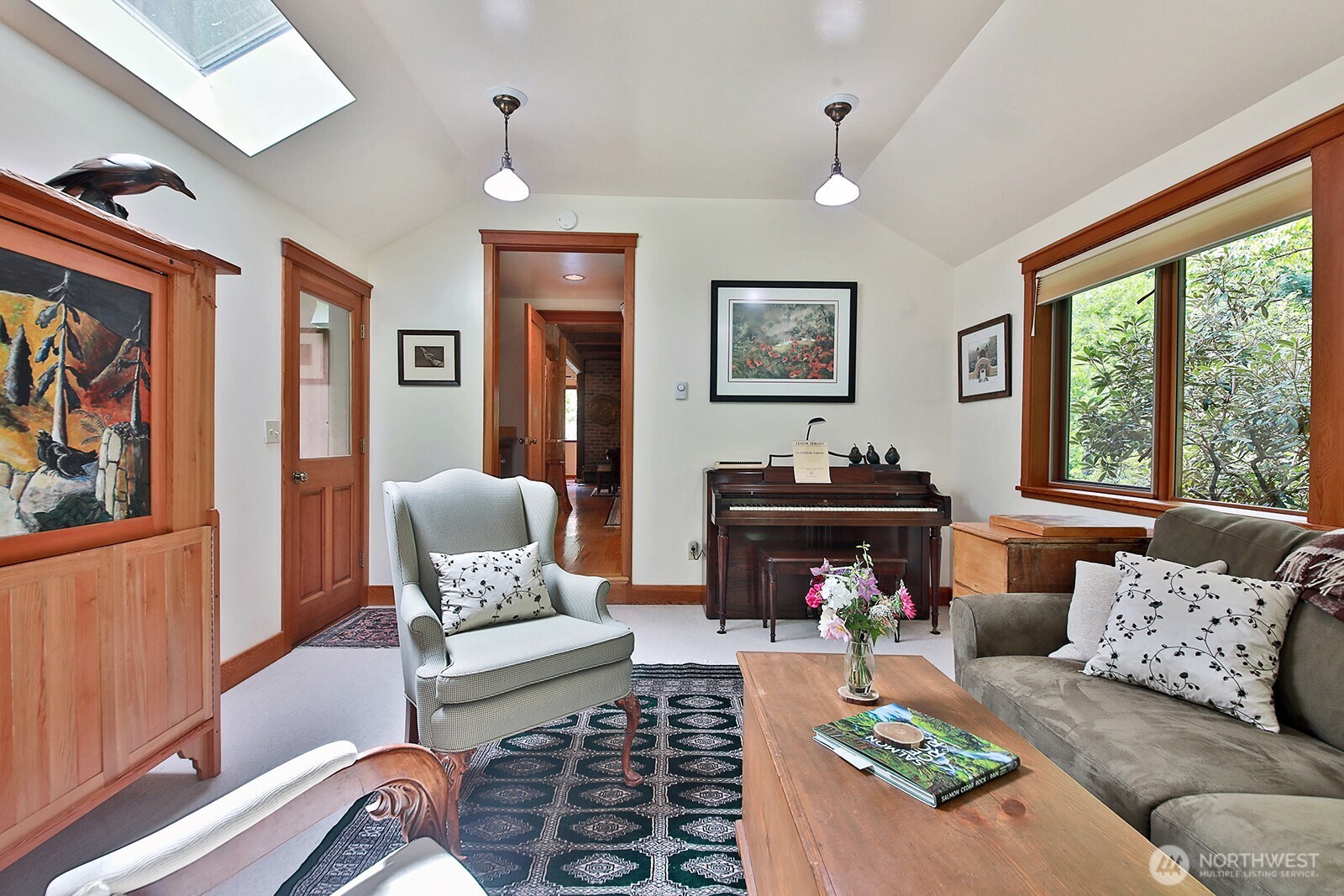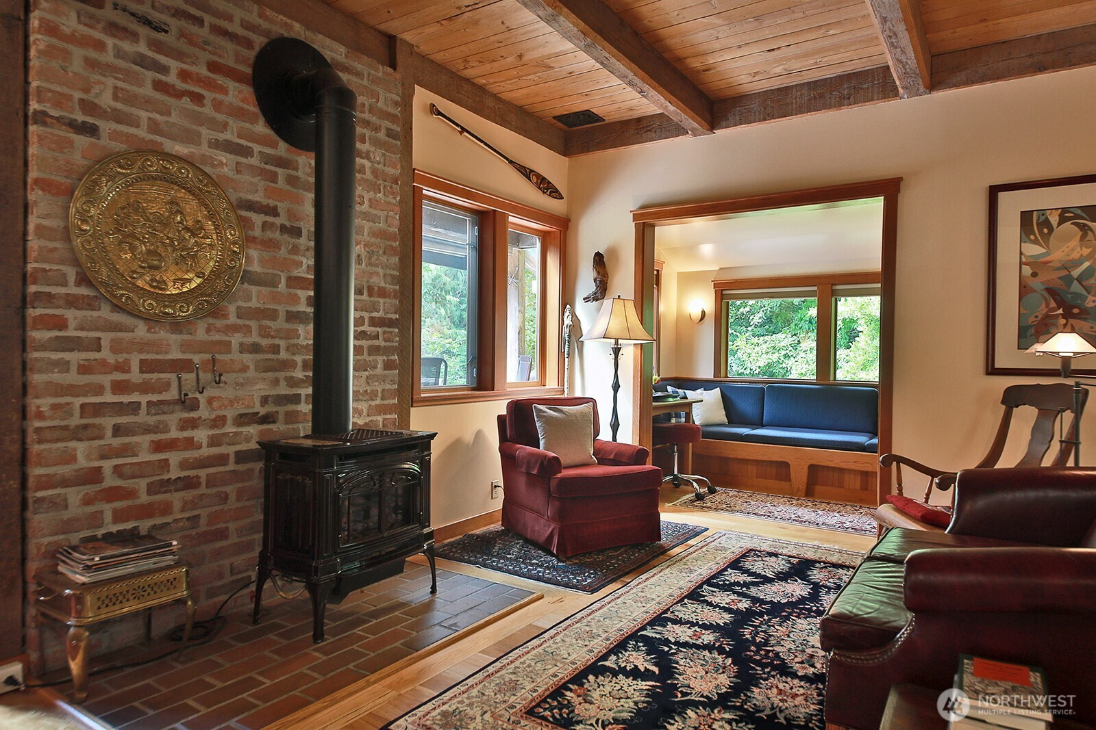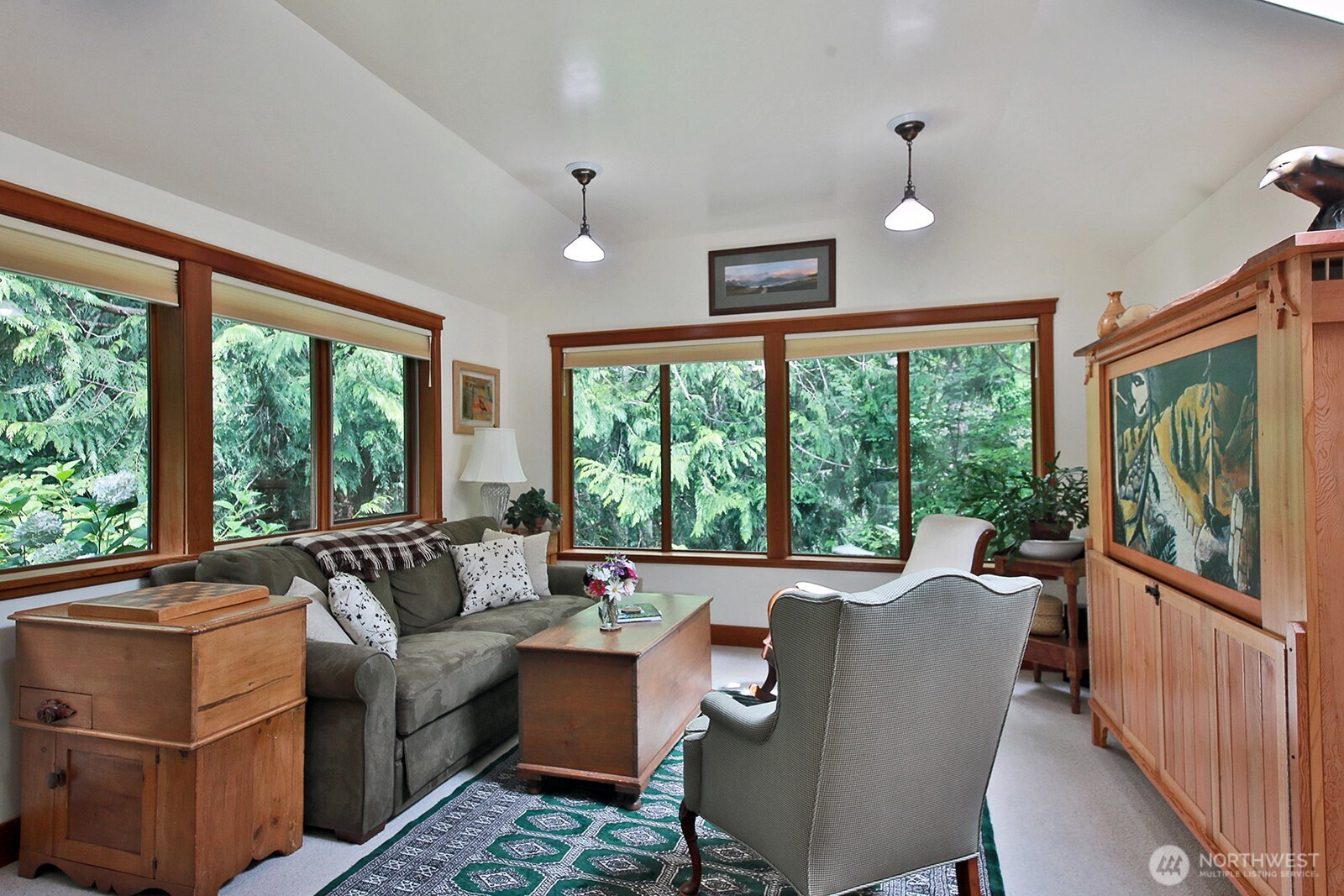 This quintessential Maxwelton Valley, one-owner home on 5.78 +/- acres adjacent to The Whidbey Institute's 106-acre conservation forest, with trails, is ready for its next steward. Perched on a sunny hilltop, at the end of a private road and surrounded by lush forest, gardens and mature landscape, this home was lovingly built and remodeled over the years with exquisite craftsmanship and a strong connection to nature. The woodworkmanship throughout this home is impeccable. Whether lounging on the cedar deck in the summer sunshine or cozying up inside on a crisp autumn evening, there is a deep sense of warmth that lives year-round with this one. Recent updates include a ductless heat pump & solar panels. Welcome to Whidbey! Welcome Home!