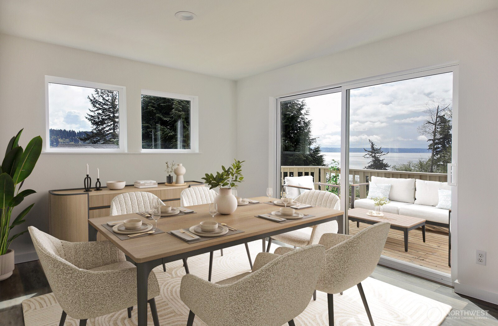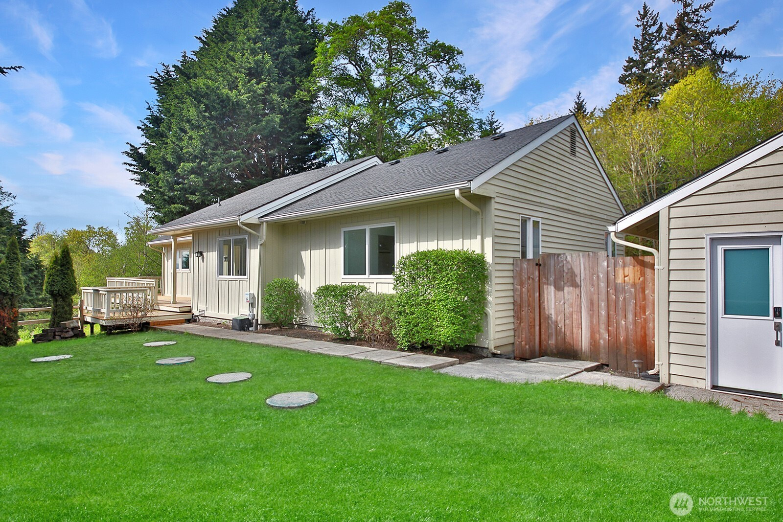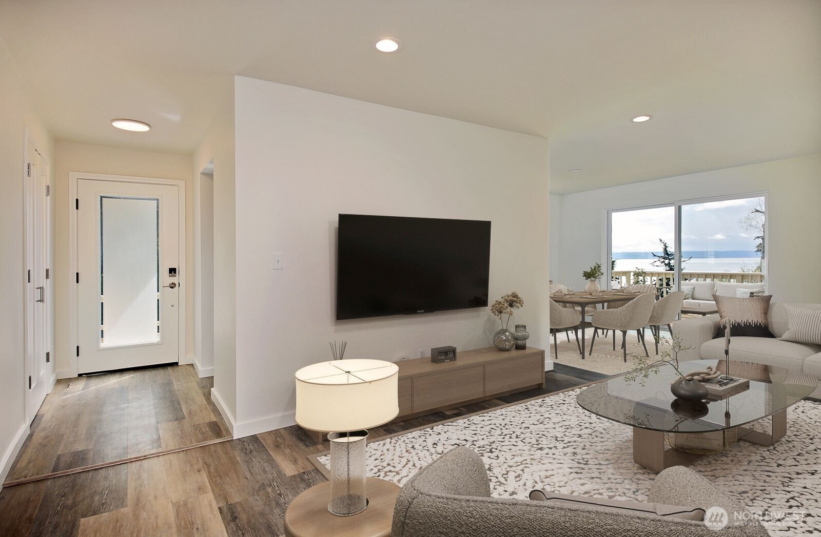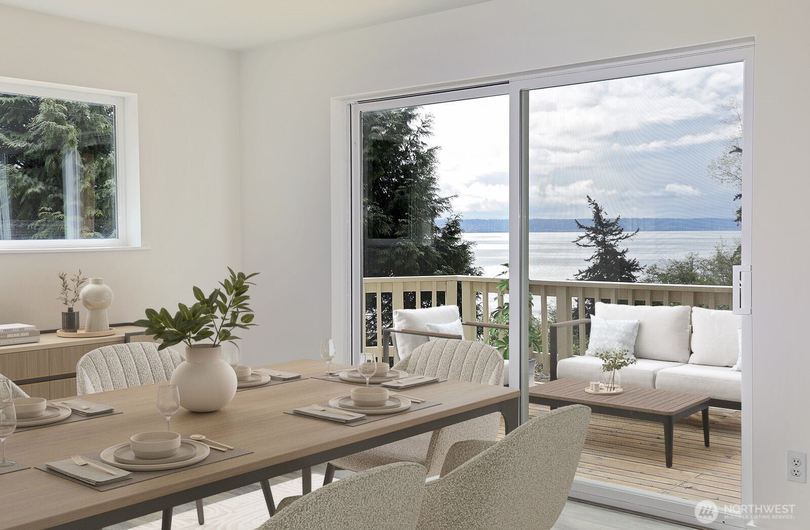 Better than new." Welcome home to an exquisitely transformed interior, where sunlight pours in, highlighting a fully remodeled floor plan designed with uncompromising quality at every turn. The beautiful kitchen showcases soft-close cabinetry, sleek quartz countertops, a stylish backsplash, and state-of-the-art appliances. Enjoy all-new luxury vinyl plank flooring throughout, with plush carpet in the bedrooms and office—ideal as a flex space or additional guest room. Every bathroom has been thoughtfully modernized, featuring Hivone LED mirrors with integrated lighting and anti-fog technology. Ample storage abounds, with custom-built-in cabinets in the laundry room, a brand-new washer and dryer, a new water heater, and additional built-ins down the hallway. Ductless heating and air conditioning in the living room for days when you need AC. Step onto the deck to relax or entertain while taking in serene water views and, on a clear day, Mt. Rainier. The detached three-car garage is perfect for car enthusiasts or those seeking dedicated project space. A new septic system has been installed. Experience life in one of the most desirable beach communities, offering a boat launch, clubhouse, seasonal indoor pool, athletic courts, playground, and picnic area.