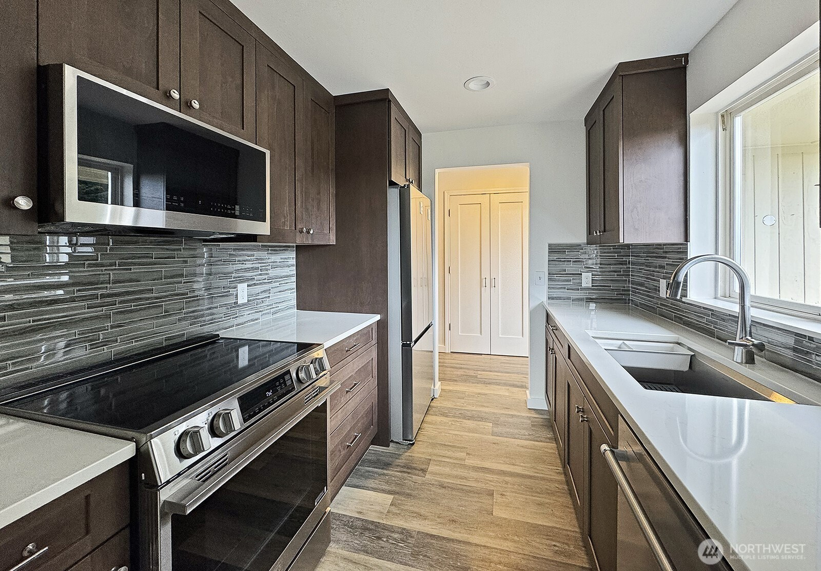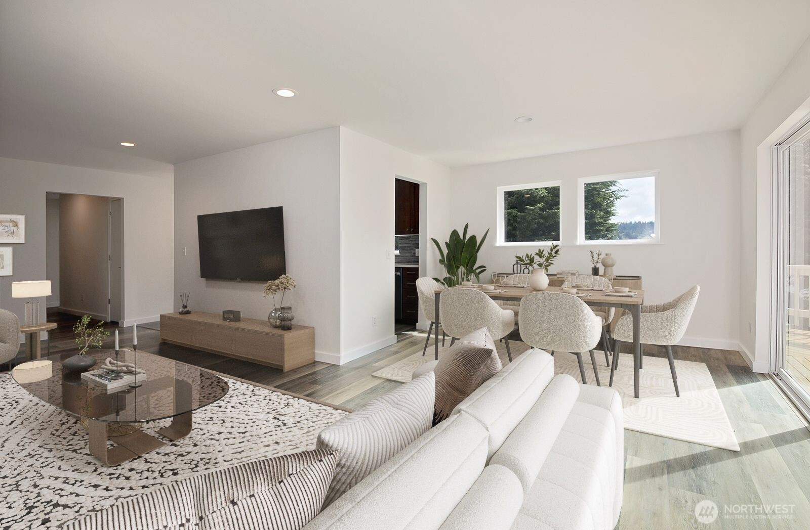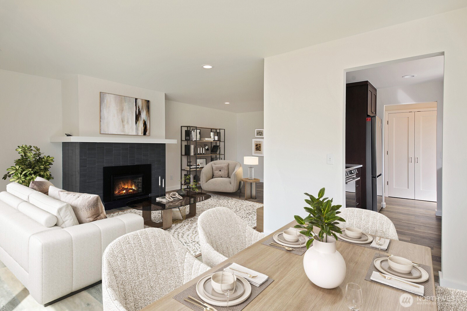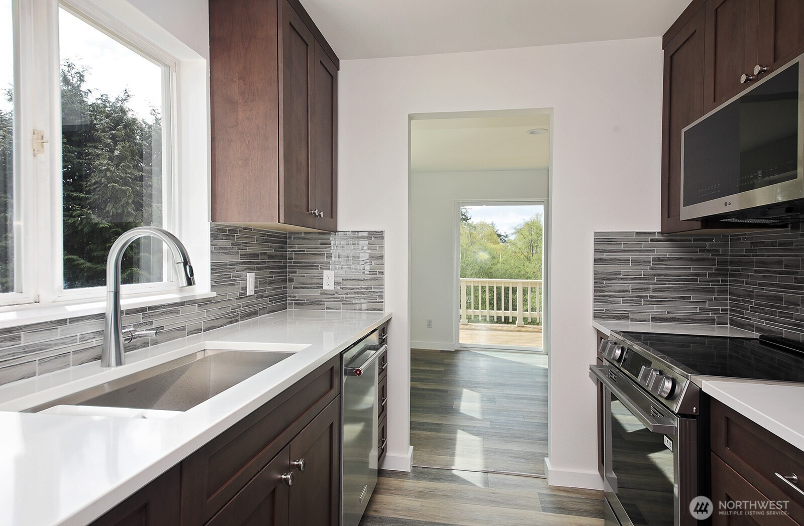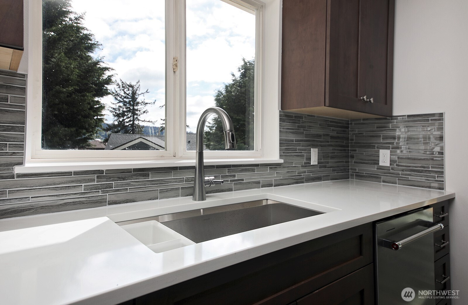 Better than new." Welcome home to an exquisitely transformed interior, where sunlight pours in, highlighting a fully remodeled floor plan designed with uncompromising quality at every turn. The beautiful kitchen showcases soft-close cabinetry, sleek quartz countertops, a stylish backsplash, and state-of-the-art appliances. Enjoy all-new luxury vinyl plank flooring throughout, with plush carpet in the bedrooms and office—ideal as a flex space or additional guest room. Every bathroom has been thoughtfully modernized, featuring Hivone LED mirrors with integrated lighting and anti-fog technology. Ample storage abounds, with custom-built-in cabinets in the laundry room, a brand-new washer and dryer, a new water heater, and additional built-ins down the hallway. Ductless heating and air conditioning in the living room for days when you need AC. Step onto the deck to relax or entertain while taking in serene water views and, on a clear day, Mt. Rainier. The detached three-car garage is perfect for car enthusiasts or those seeking dedicated project space. A new septic system has been installed. Experience life in one of the most desirable beach communities, offering a boat launch, clubhouse, seasonal indoor pool, athletic courts, playground, and picnic area.