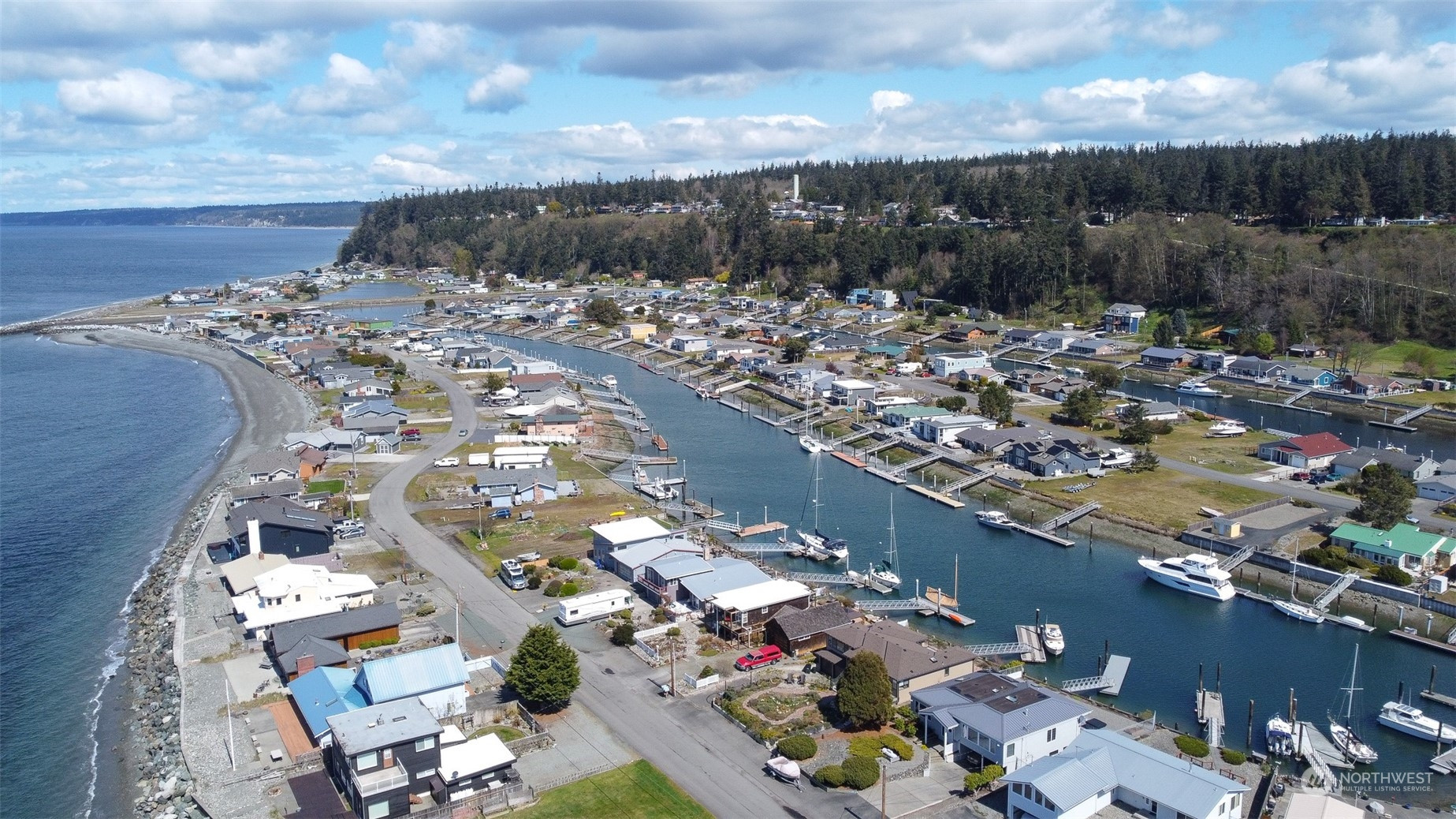 Welcome to Beautiful Lagoon Point! A private residential community near Greenbank along the western shores of Whidbey Island. Homes here have access to canals, private beaches & a boat launch. This beautiful lot offers a sweeping 180 degree views of the Admiralty Inlet, the Olympic Mountain Ranges & an abundance of spectacular sunsets. Steps away from one of the island’s most popular beaches, along with some of the best salmon fishing around. Hiking, biking, crabbing, clamming & whale watching are just a few of the other possibilities here, it's practically endless. Build the home of your dreams on this flat ready to build lot with water, power, & septic connected. The water comes right up to the bulkhead of the property during high tide.