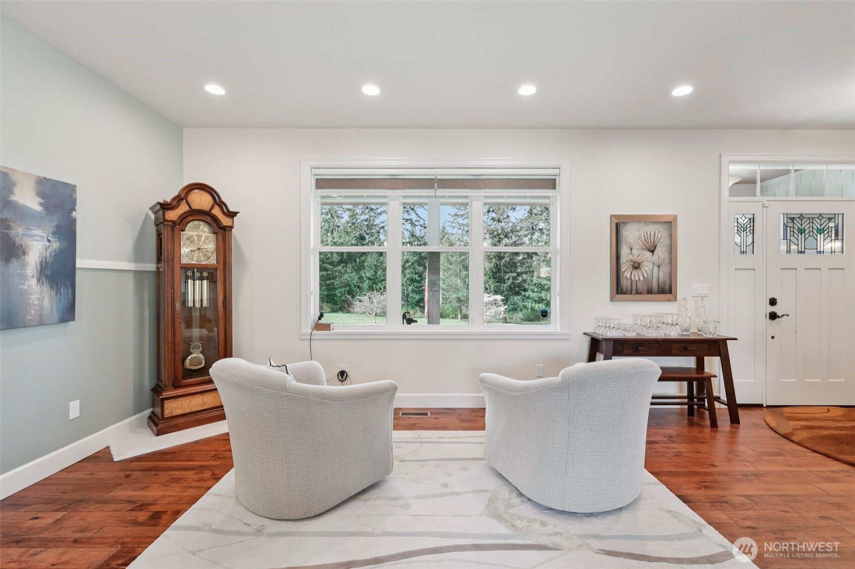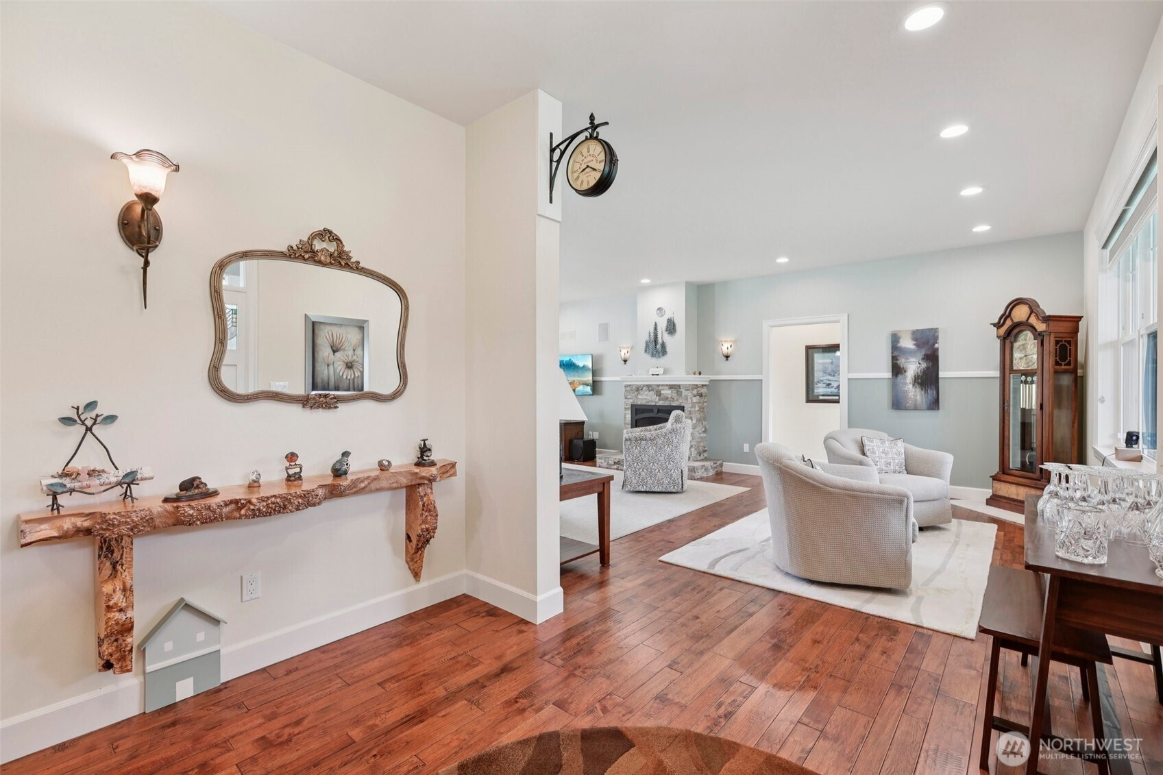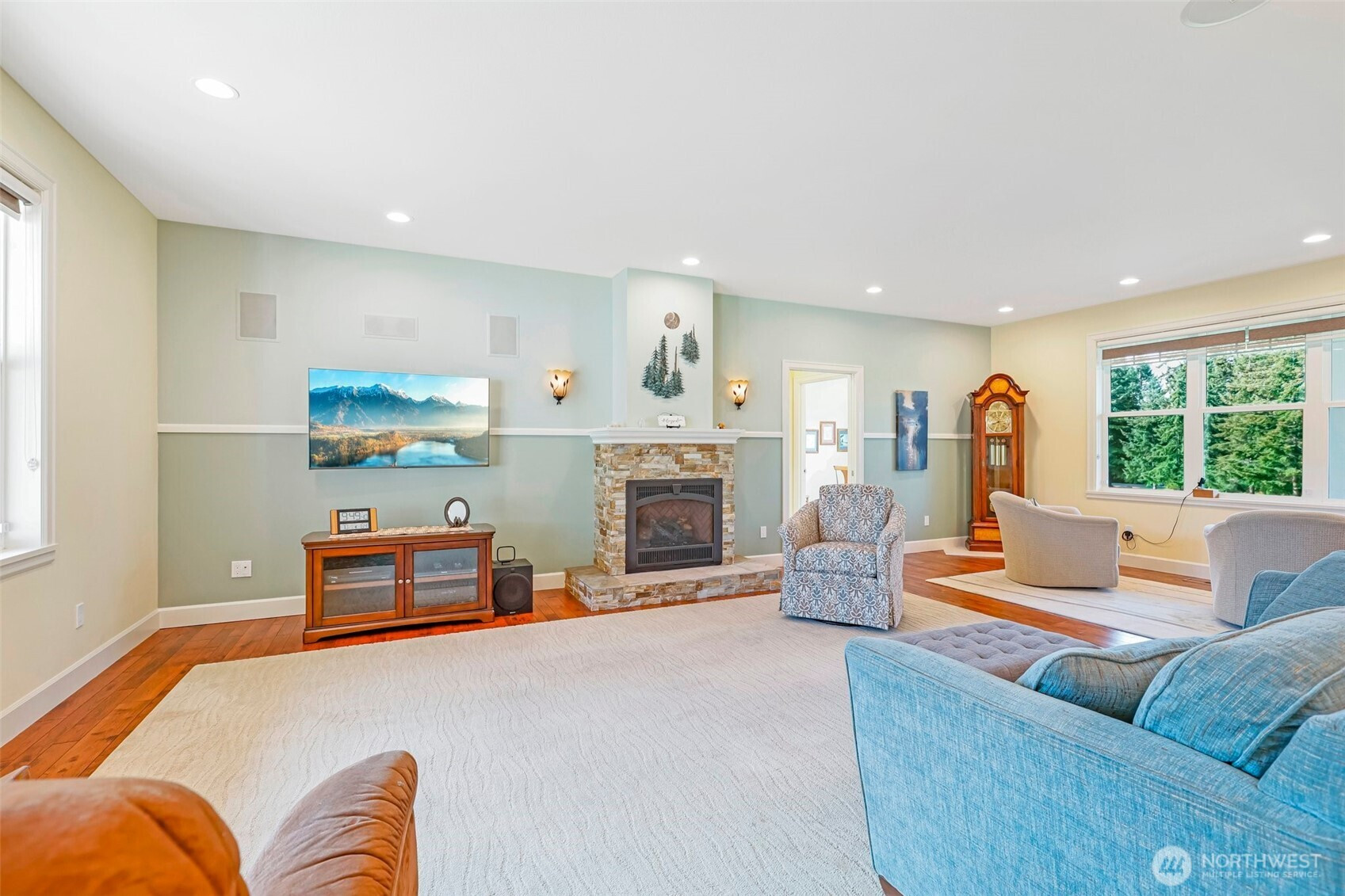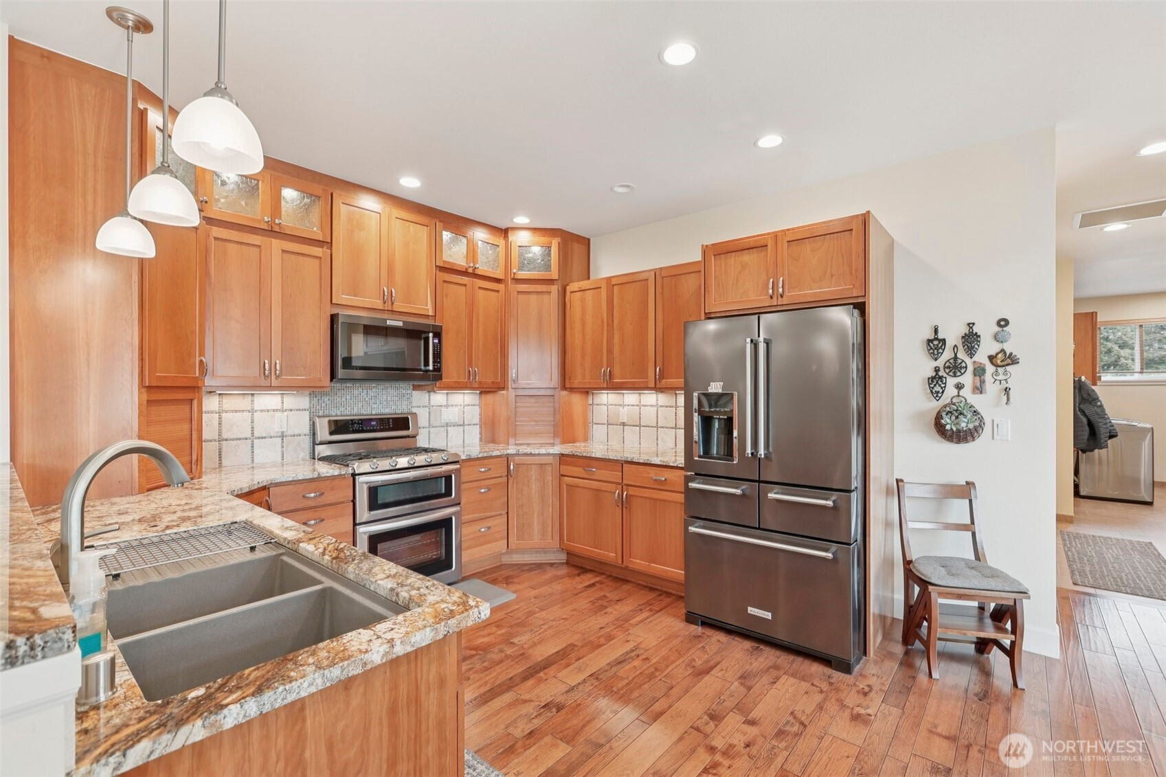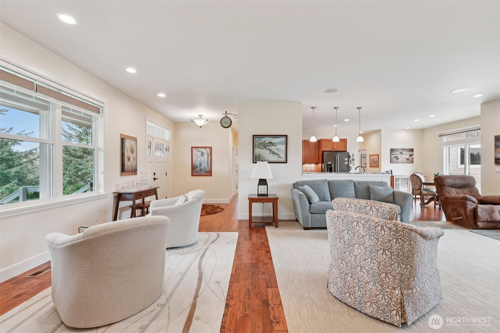 Tucked into almost 5 peaceful acres in the heart of Camano Island, this craftsman style rambler invites a slower, more intentional way of living. Light-filled, open living spaces highlight warm cherry cabinetry, stone surfaces, and engineered hardwood floors, while a gas fireplace anchors cozy evenings at home. The kitchen flows easily for everyday living and gathering, and the primary suite offers a spa-like escape with heated tile floors and shower pan, and a multi-head shower. Step outside to a back deck and patio made for summer nights under the stars. A three-car garage with a workshop and half bath adds flexibility, while the acreage offers room to create—whether a shop, guest space, or something more. Thoughtful features, including a whole-house generator and water filtration system, bring ease to island living.