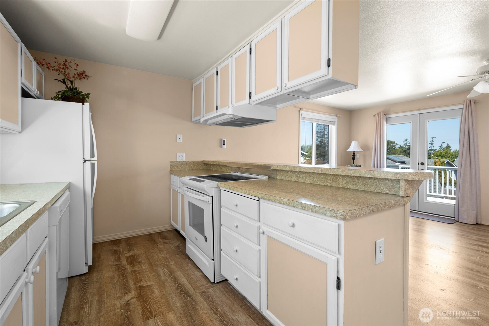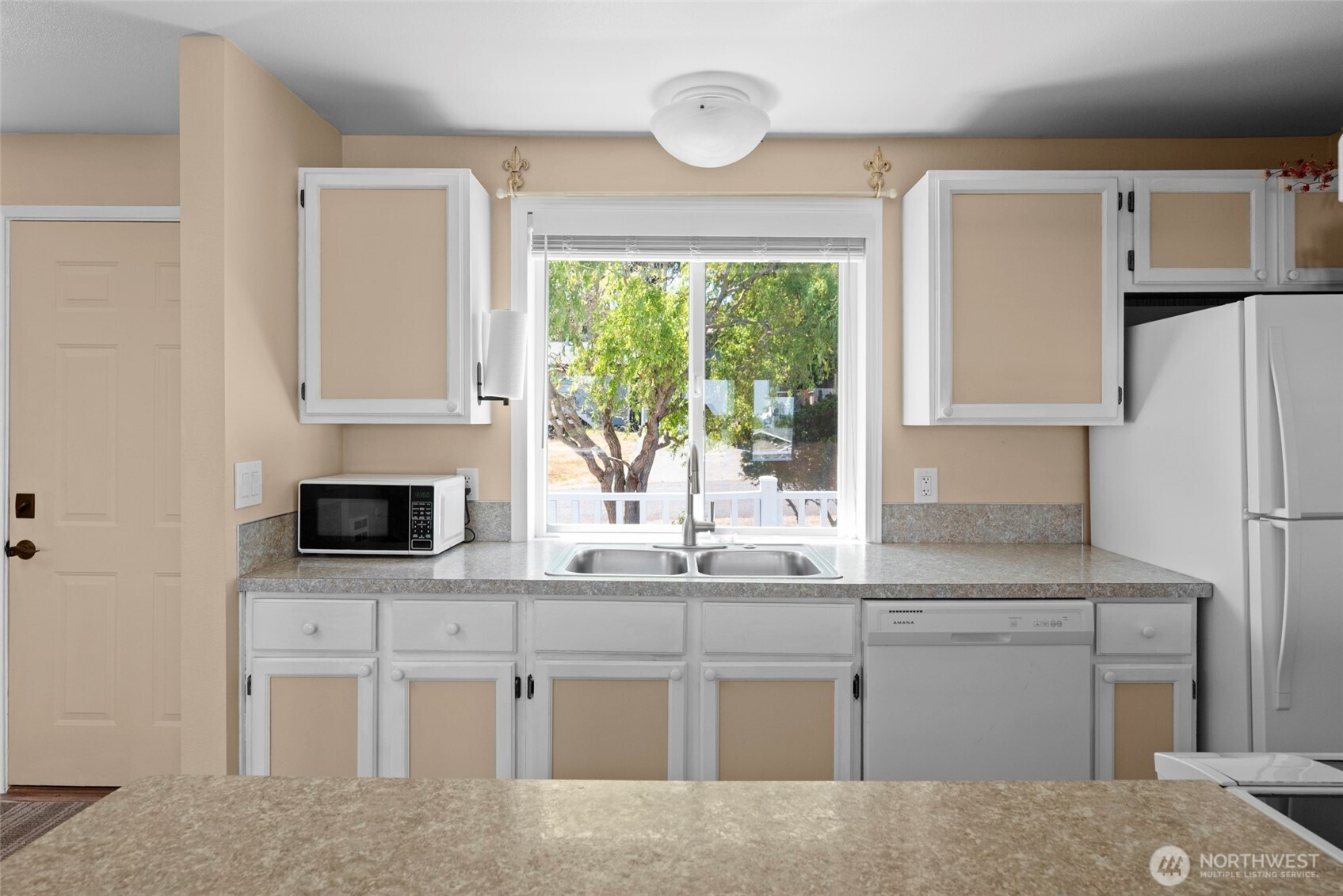 ***Clean & bright with a view of beautiful Penn Cove, this 3 BR/2 BA is move-in ready**Nothing to do but unpack and enjoy**Large lot w/fenced back yard includes a sizable 12'x16' storage shed with electricity & skylight - could be an art studio or office ** Situated in the heart of Coupeville, this 1,408 s.f. home has a brand new 50-year roof as of July 2025 ** Blocks from Front Street shopping & dining, close to hospitals too ** Decks in front & back are the perfect place for sunrises or sunsets, or take in Penn Cove views from the generous back deck with new staircase down to the big back yard ** Propane free standing stove for cold winter nights ** Seller offering $1500 appliance credit ** Make this one your island home ***