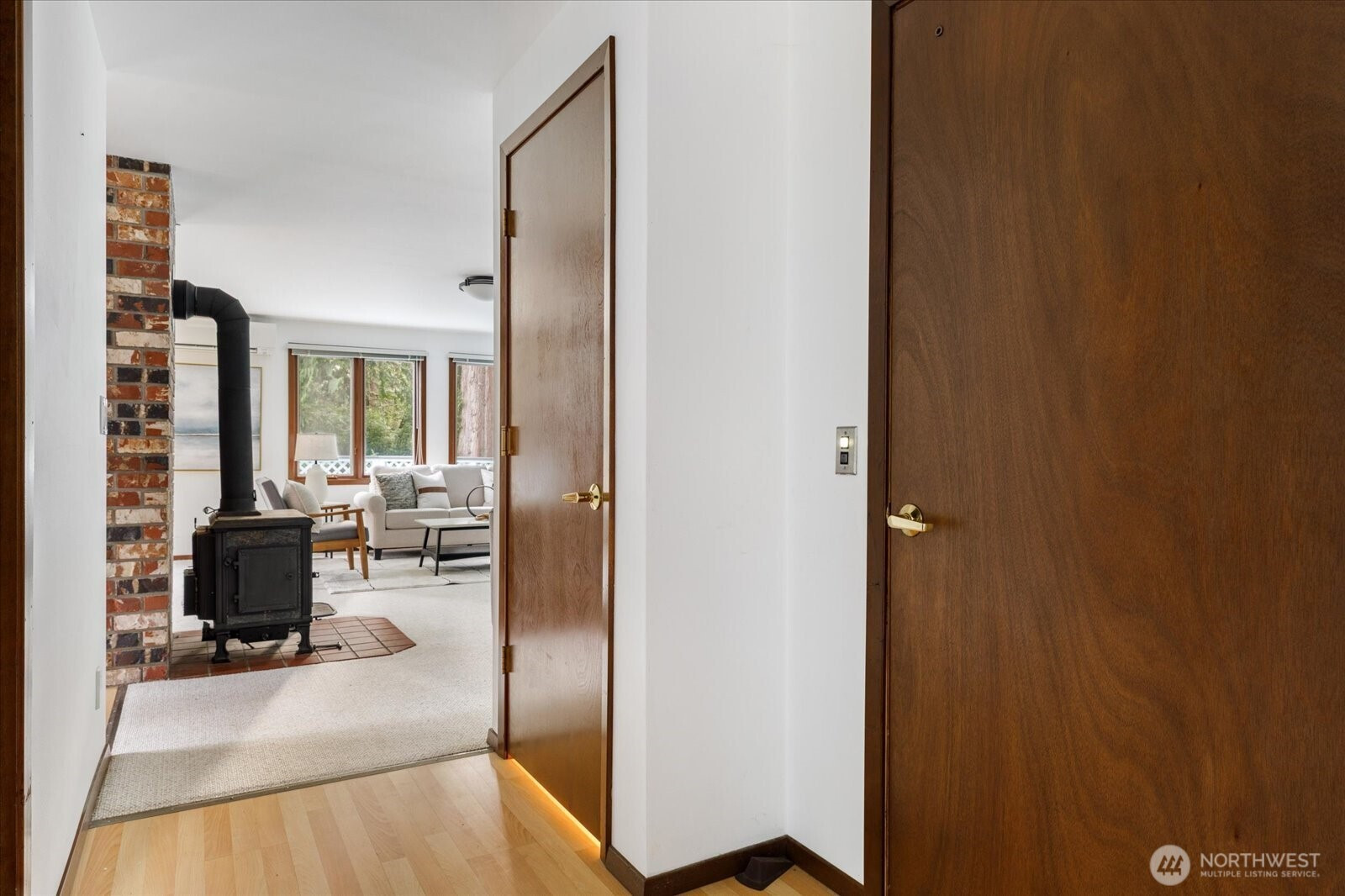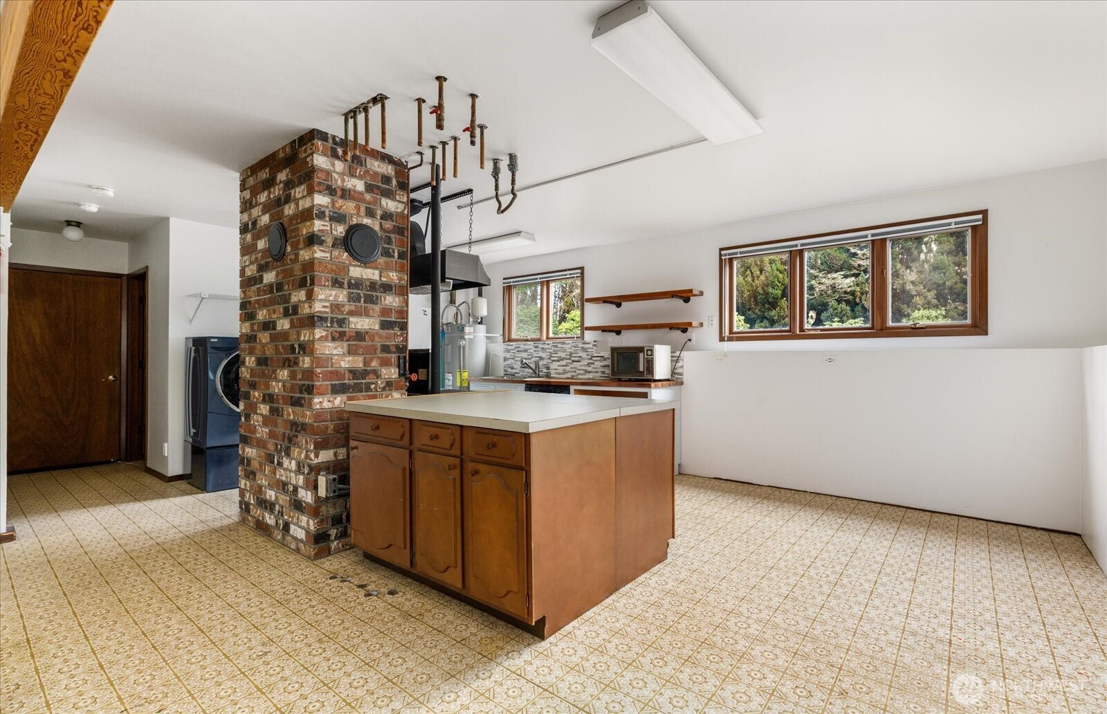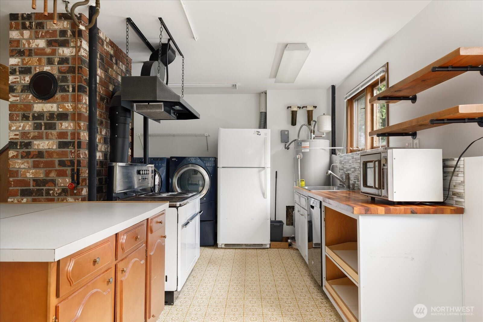 Imagine a truly unique island property offering flexibility, privacy, and income potential—just two miles from charming Langley Village. Set on 5± acres, this 1,794 sq ft 2-bedroom, 2-bath home with a 3-bedroom septic features two separate living spaces, each with its own kitchen—ideal for rental income, guest quarters, or multi-generational living. An elevator connects both levels, and the spaces can be combined if desired. Additional features include a whole-house generator, shop/garage/RV space, car lift, storage container with covered storage, large fenced garden, and deeded beach access at the end of the road. A rare and versatile opportunity on Whidbey Island.