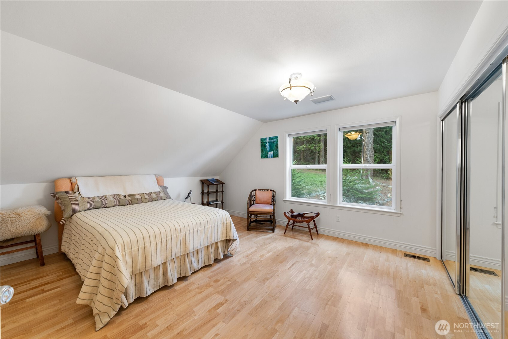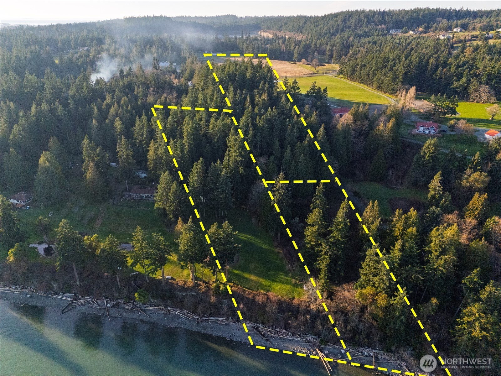 Welcome to a rare waterfront estate offering a custom Yonkman-built Lake Tahoe Chalet–style home plus two additional vacant parcels, creating an extraordinary 10.4-acre opportunity. Nestled among towering evergreens with serene water views, this property delivers privacy, beauty, and exceptional potential. The custom home features 2 bedrooms, 2 bathrooms, and an open-concept layout filled with natural light and rich wood finishes. The gourmet kitchen offers custom cabinetry, granite countertops, and modern appliances, flowing into a charming dining nook and inviting living area with large windows and a cozy wood-burning stove. Sliding glass doors lead to a private deck ideal for relaxing or entertaining. Outdoors, the grounds gently slope toward the shoreline and include open meadow areas, mature trees, and a tranquil pond, creating a peaceful, park-like setting. The two additional vacant parcels provide ideal building sites for a custom estate, guest homes, or future development. Enjoy expansive water frontage, sweeping views, and shoreline access for kayaking, paddleboarding, beach walks, and wildlife viewing. A truly special waterfront offering combining lifestyle, location, and long-term value.