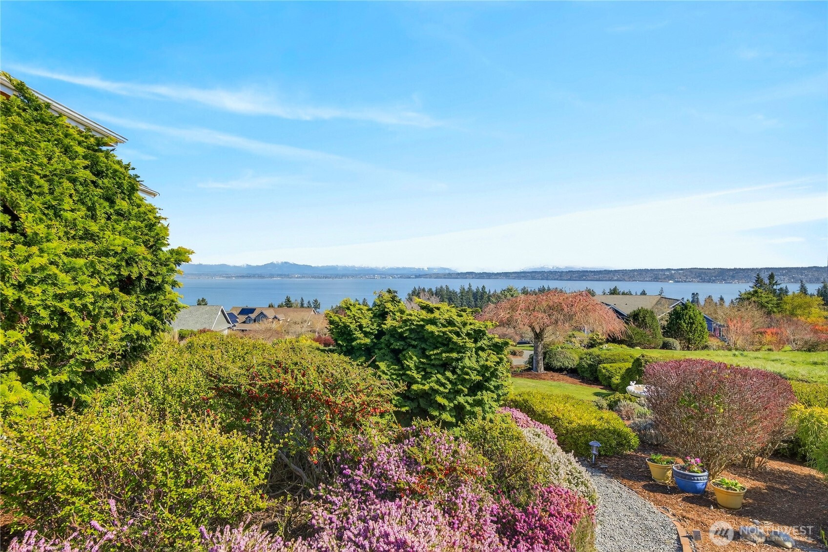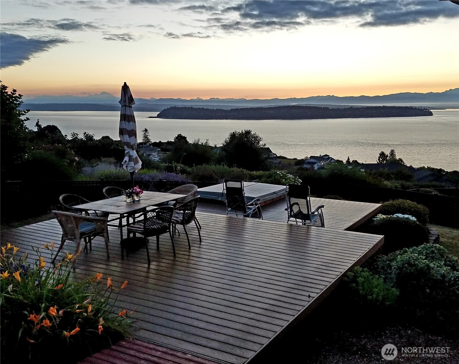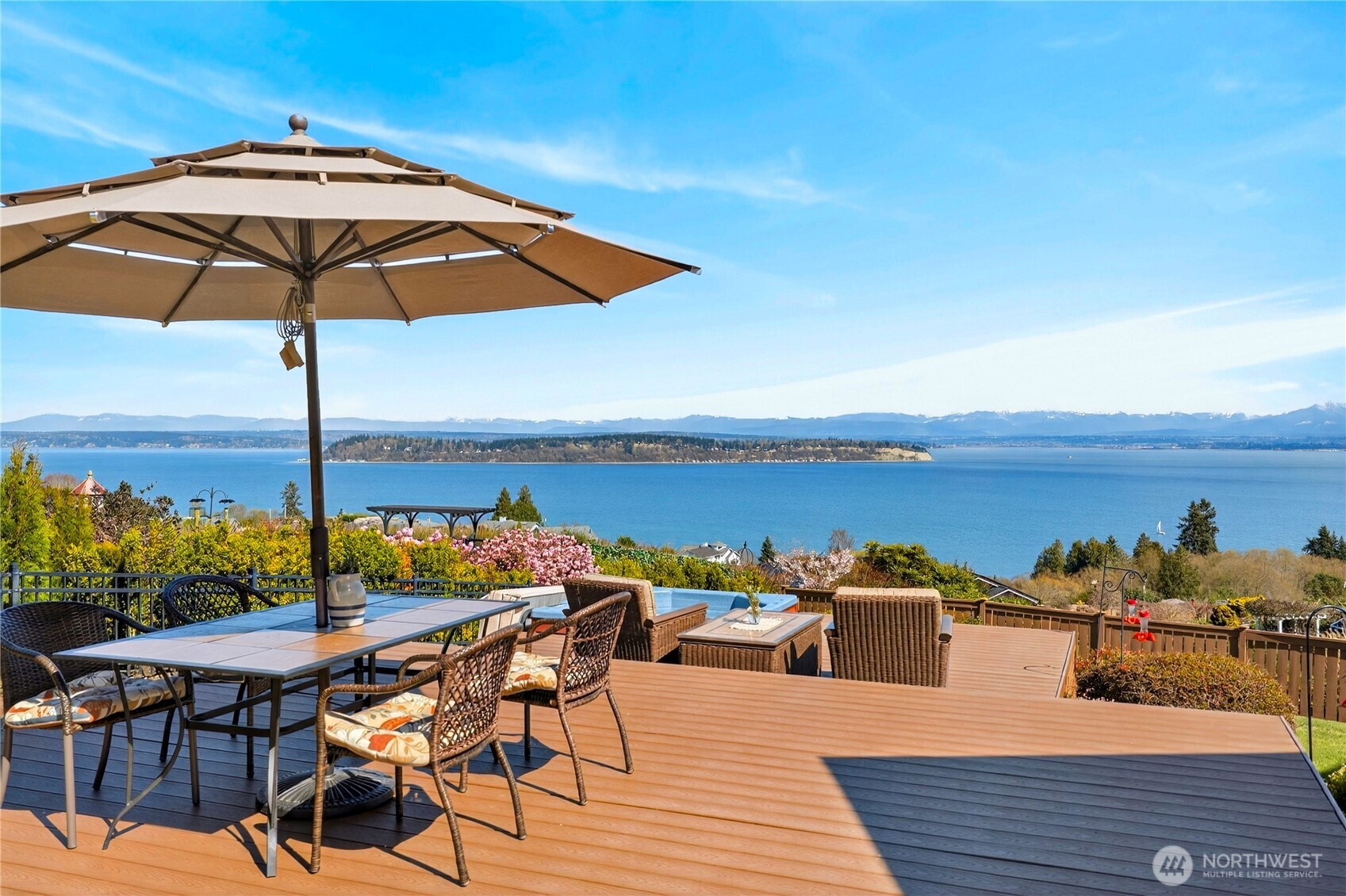 Perched above the shimmering waters of North Puget Sound on Whidbey Island, this exceptional home captures truly breathtaking, panoramic views stretching from Mount Rainier to Mount Baker and across the full sweep of the Cascade Mountains. From sunrise to sunset, the ever-changing sky and water create a living work of art visible from nearly every room. Designed for effortless main-level living, the home offers a seamless blend of comfort and elegance with expansive NEW windows that frame the scenery and fill the interiors with natural light. The open-concept living spaces flow beautifully to generous outdoor decks—perfect for entertaining, relaxing, or simply soaking in the stunning Northwest vistas. Ideal for multigenerational living or flexible lifestyle needs, the thoughtfully designed layout provides ample space and privacy, including lower-level accommodations perfect for guests, extended living, or potential separate quarters. Situated just minutes from the Clinton ferry for easy access to the mainland, this property combines tranquility with convenience. Lush, established landscaping enhances the setting, creating a peaceful retreat that feels worlds away while remaining close to everyday amenities. Experience the best of Pacific Northwest living—where dramatic views, versatile living spaces, and an unbeatable location come together in one remarkable offering.