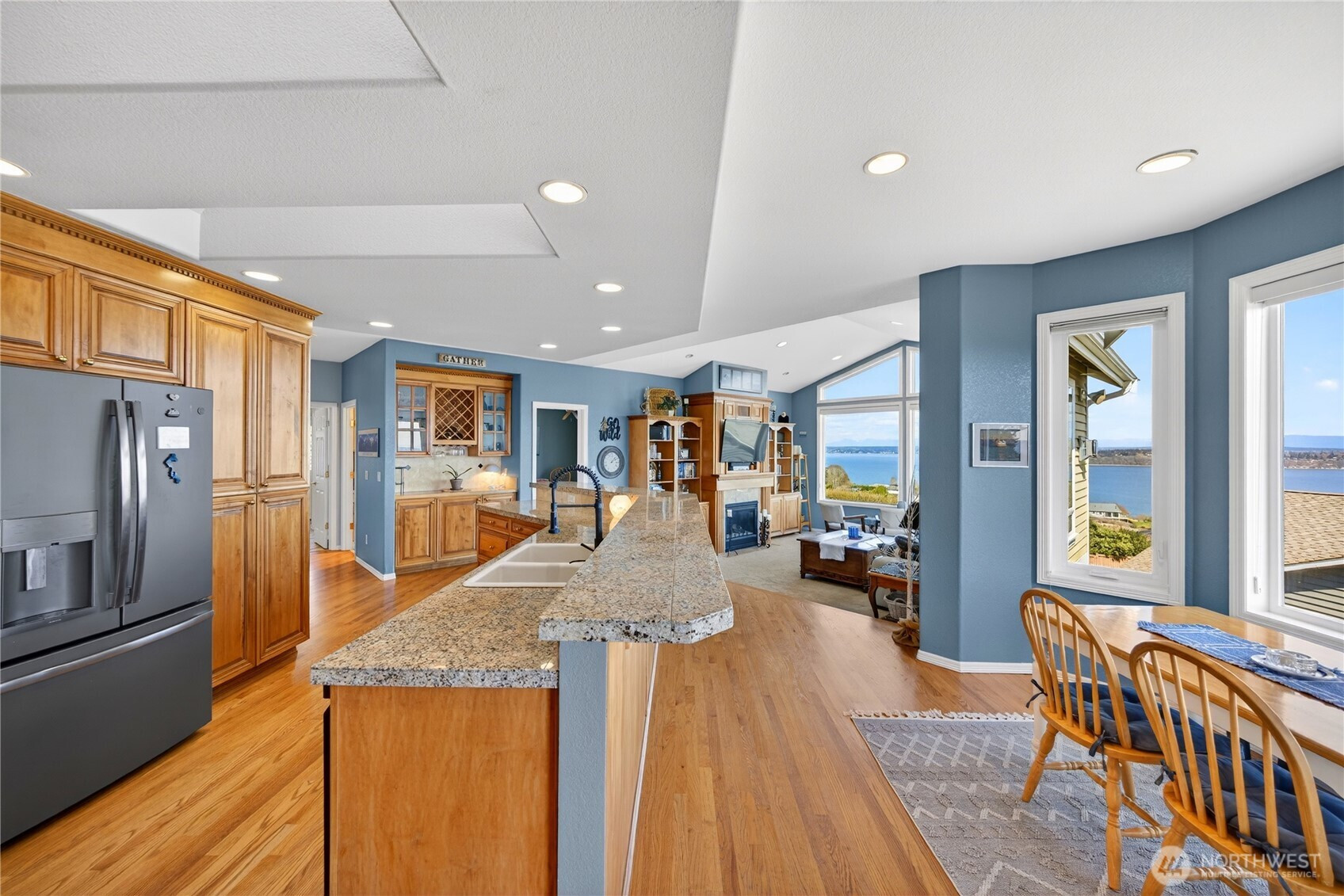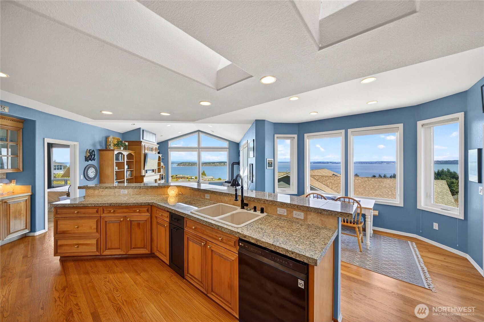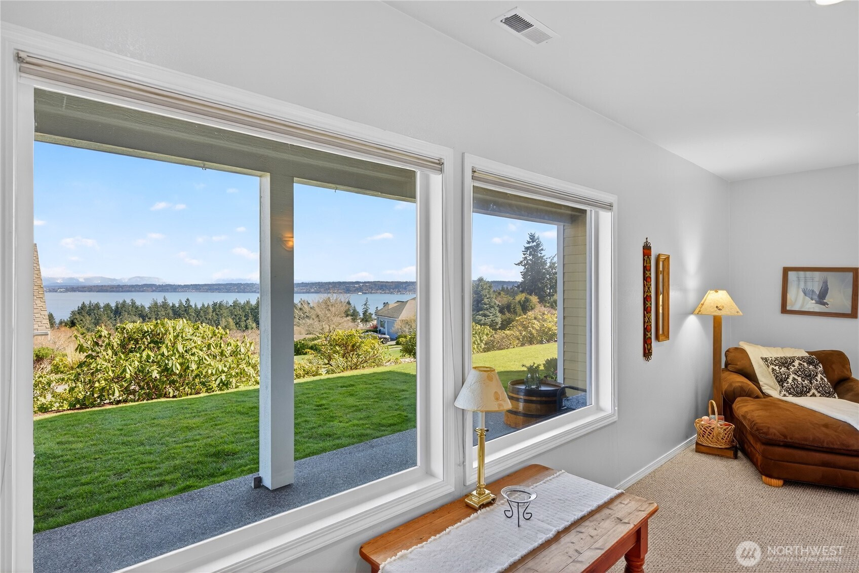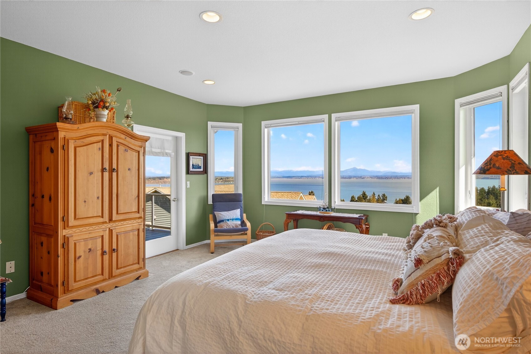 Perched above the shimmering waters of North Puget Sound on Whidbey Island, this exceptional home captures truly breathtaking, panoramic views stretching from Mount Rainier to Mount Baker and across the full sweep of the Cascade Mountains. From sunrise to sunset, the ever-changing sky and water create a living work of art visible from nearly every room. Designed for effortless main-level living, the home offers a seamless blend of comfort and elegance with expansive NEW windows that frame the scenery and fill the interiors with natural light. The open-concept living spaces flow beautifully to generous outdoor decks—perfect for entertaining, relaxing, or simply soaking in the stunning Northwest vistas. Ideal for multigenerational living or flexible lifestyle needs, the thoughtfully designed layout provides ample space and privacy, including lower-level accommodations perfect for guests, extended living, or potential separate quarters. Situated just minutes from the Clinton ferry for easy access to the mainland, this property combines tranquility with convenience. Lush, established landscaping enhances the setting, creating a peaceful retreat that feels worlds away while remaining close to everyday amenities. Experience the best of Pacific Northwest living—where dramatic views, versatile living spaces, and an unbeatable location come together in one remarkable offering.
