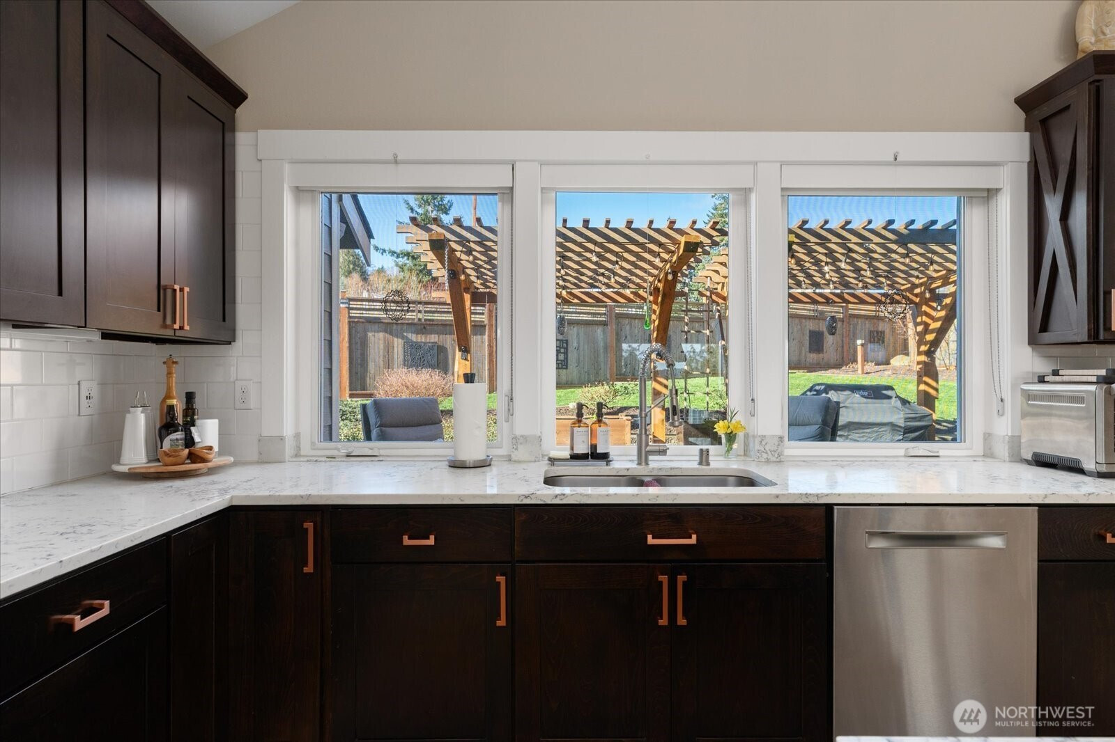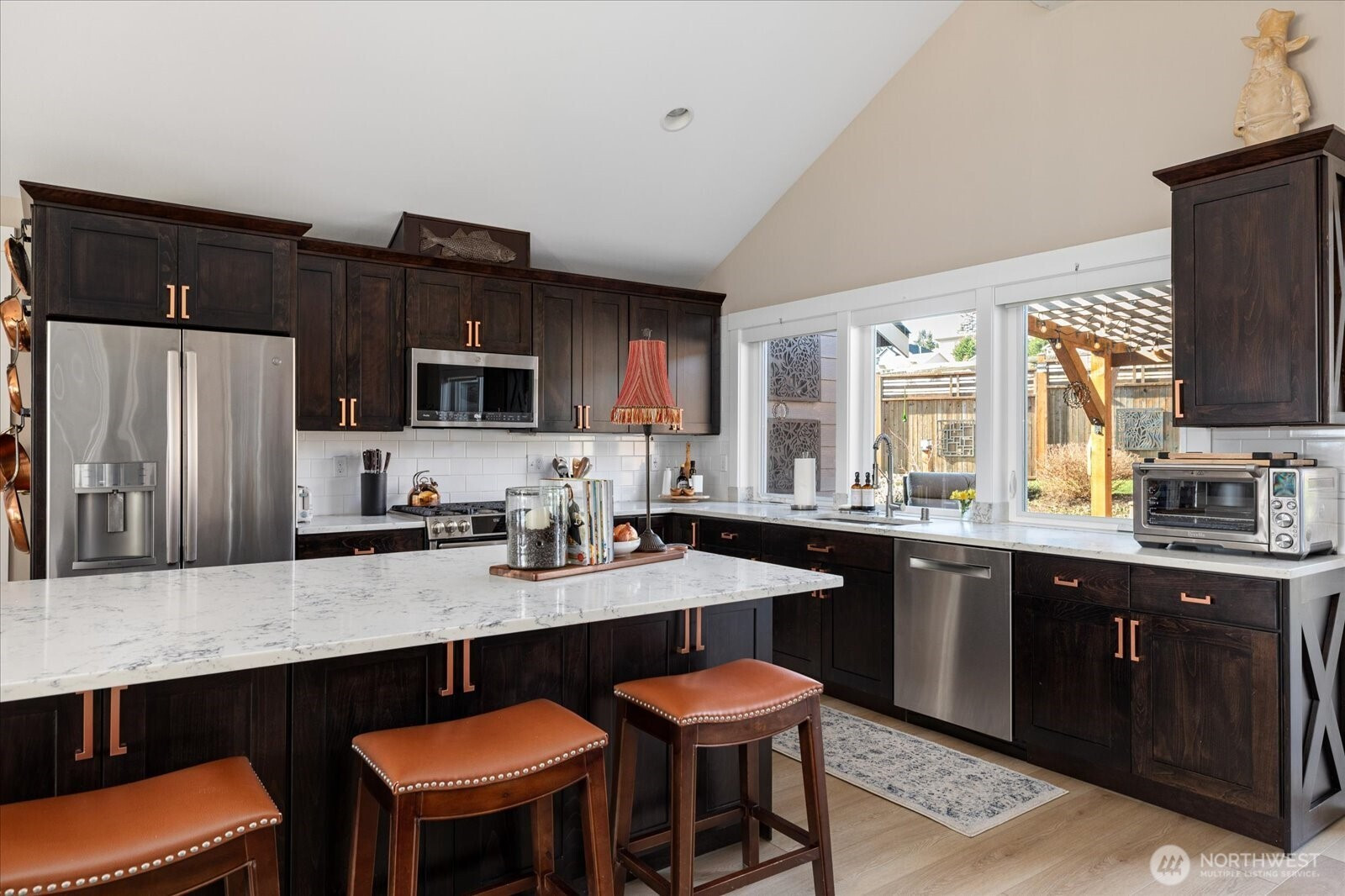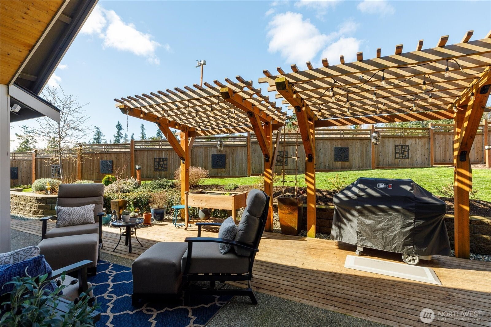 Beautifully upgraded 3-bdrm, 1.75 bath home blends thoughtful design w high-end improvements inside & out. Add a view of Holmes Harbor & backing up to a golf course, this home is truly one of a kind. The moment you arrive, you notice a beautiful curb appeal & stunning landscape, two-tiered rock wall & lighting. No detail has been overlooked! Brand-new flooring flows throughout. Great room is a true showpiece w custom fireplace & media wall, built-in bookcases w storage, & coffee bar. Open concept perfect for entertaining or cozy evenings at home. Kitchen offers both style & functionality w an oversized island, endless counter & cabinet space, upgraded appliances, convenient roll-outs in cabinets & perfectly designed pantry. Laundry room with built-in cabinetry & additional refrigerator. Retreat to the primary suite featuring vaulted ceilings, spa-inspired bathroom w a double vanity, tile finishes & dream walk in closet w a remodeled closet system. Fully fenced yard meticulously designed for enjoyment & practicality, complete with patio space, garden walls, pathways & pergolas creating inviting outdoor living. Garage w electrical upgrades, whole-house generator, EV charger, & a lift to make the home accessible or moving items up the stairs. Every detail was considered in this extensively improved home- offering comfort, efficiency, elevated style & exceptional functionality inside and out. Truly a rare find with upgrades you can see & improvements you'll appreciate every day!