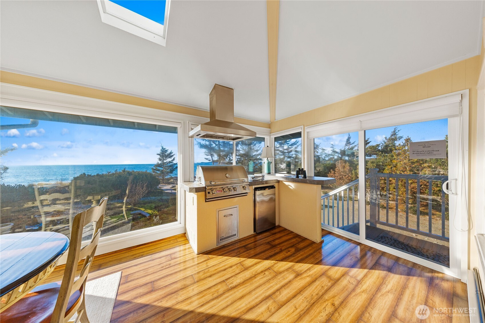 Discover an extraordinary waterfront lifestyle with 99 feet of walk-on sandy beach and stunning views of Puget Sound and the Olympic Mountains. This beautiful 3-bed, 2.5-bath home feels like a retreat every day, where light dances through vaulted ceilings and panoramic scenes invite you to pause and enjoy the moment. Inside, the remodeled kitchen with granite countertops and stainless appliances blends effortless style with everyday comfort. Propane fireplaces on both levels add warmth and ambiance, while the bright sunroom with wall-to-wall windows and built-in propane BBQ becomes your favorite place to relax, soak in the water views, or host friends. Whether entertaining near the beach, gathering on the patio, or simply savoring a quiet sunset from the sunroom, this home invites joy in every season. The landscaped yard with an herb garden enhances outdoor living, and thoughtful extras like a detached 2-car garage and automatic generator add ease and peace of mind. Situated in a gated community with scenic trails at your doorstep and within walking distance to Deception Pass State Park, this setting blends serenity with adventure. Minutes to Oak Harbor and Anacortes, this home offers timeless beauty, comfort, and a true sense of coastal living.