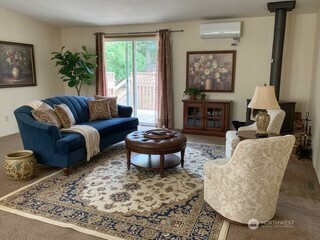 Enjoy the comfort of living in a 55+ community in a 3 bd, 2 full bath home with many updated features. Open living rm, eating/ dining area and kitchen with eating bar. Free standing wood stove / w/w carpet w/ vinyl in kitchen, baths and utility room. Ramp from carport to the back utility door entrance, living room sliders to back deck & small porch at front entrance. New paint inside and out in 2016 windows and some new appliances in 2017, roof 2018 & water heater in 2022. Monthly land rental fee includes the taxes on the lot plus water & septic which is inspected yearly. Road maintenance, dumpster for trash, mailbox. book lending spot and a community park with gazebo and a green area to put your yard waste.