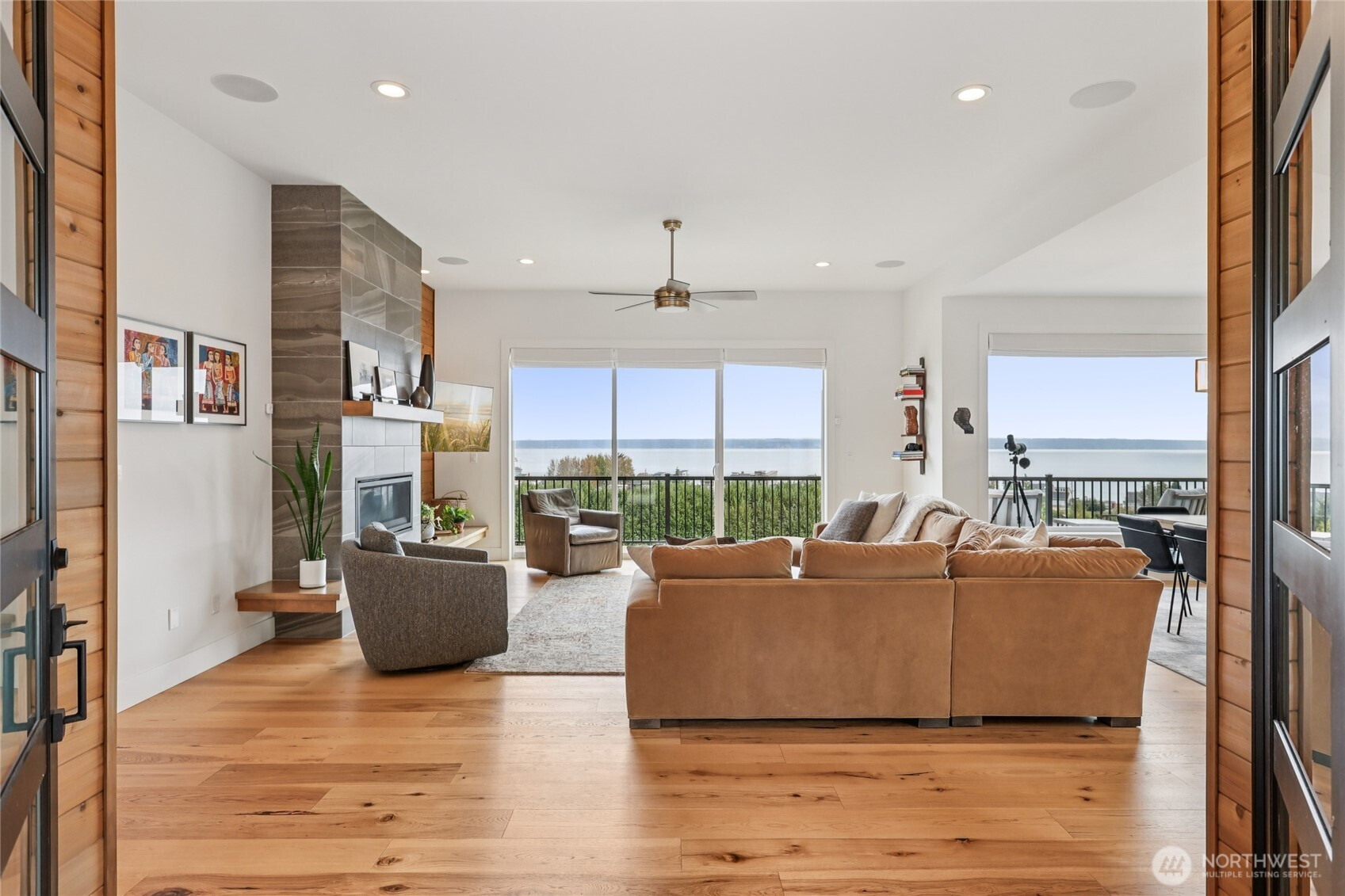 (503) 893-8874Experience private Camano Island living with sweeping bay, mountain, and territorial views. Ideally located, offering easy access to parks, beaches, and shopping. Main floor living offers custom cabinetry throughout, warm hardwood floors, and chef’s kitchen with double ovens and elegant finishes. Enjoy Northwest outdoor living year-round on the covered view deck. The primary suite captures views from every angle and features a large walk-in closet, en suite bath with a soaking tub, an oversized shower, and private deck access. Lots of space to entertain either floor! Two garages (one on each level) + a 300+sqft flex room w/space for gym, studio, or storage. Generator wiring and EV charging make this home as functional as it is beautiful.