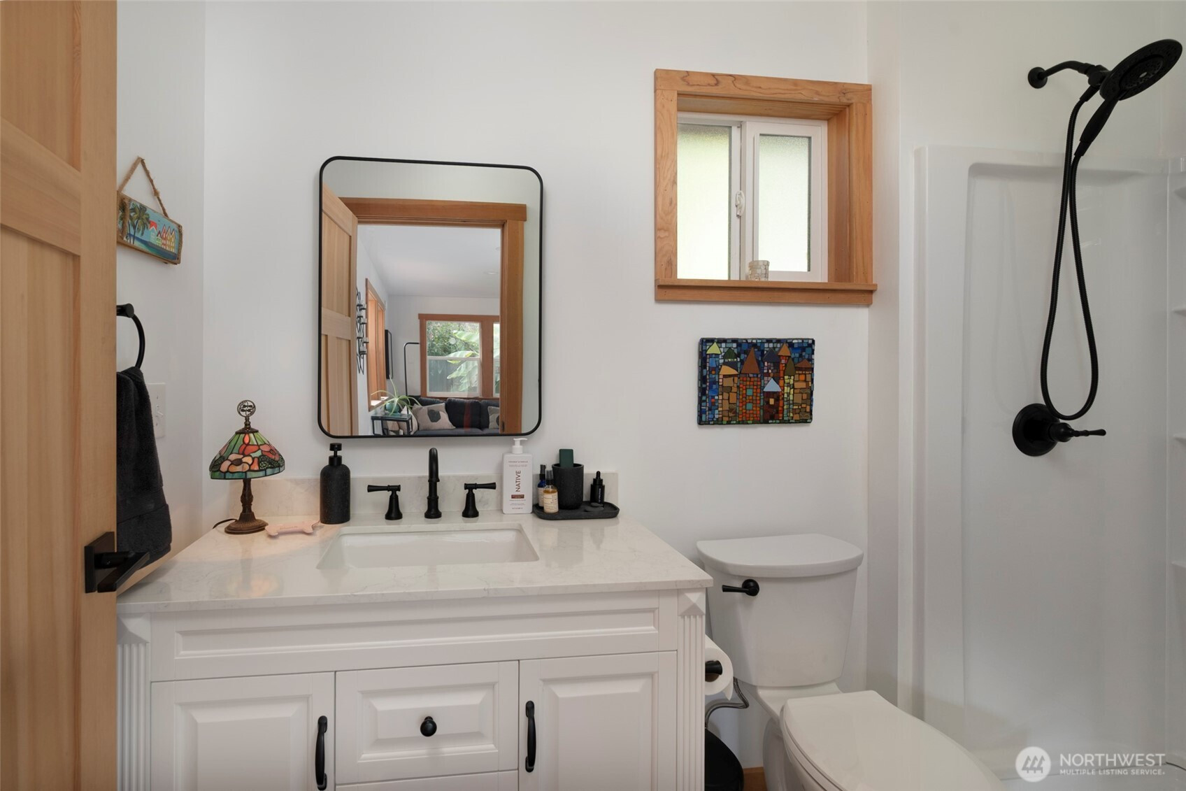 (503) 893-8874Recent upgrades include new roof, decks and more! Amazing, must see property. Total of almost 2200 sqft living space combined in two dwellings. Just over an acre of beautifully landscaped waterfront property located just 1+/- mile from all that downtown Freeland has to offer! Wind your way down the tree-lined drive way to this magical property with plenty of indoor and outdoor spaces for quintessential island living. Open concept layout and a cozy woodstove in the main house. Both decks and side patios ideal for relaxing or entertaining with 73 feet of water frontage to take in the stunning sunset, mountain & water views! Guest house has multiple flex rooms and studio spaces and was finished in 2015. No restrictions/CC&Rs. This is the one!