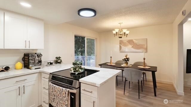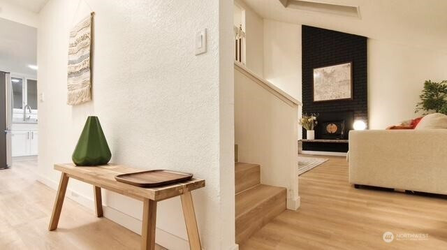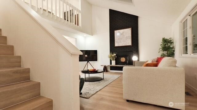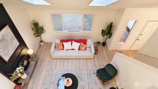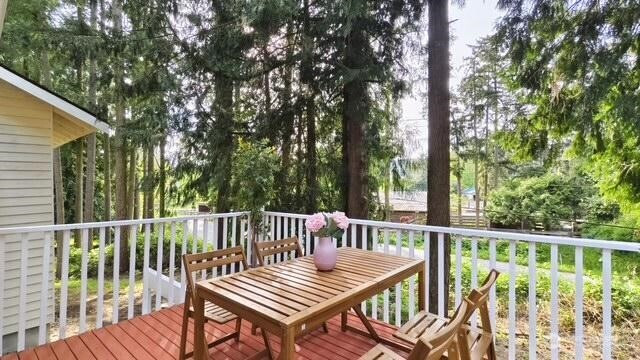 Welcome to your beautifully updated home on oversized lot in serene setting. Enjoy upgraded baths and kitchen with quartz countertops, stainless steel appliances and brand-new cupboards. Love sliding glass doors from dining room onto large deck to relax and entertain. Cozy around wood burning fireplace. High ceilings, new flooring, skylights and tons of windows for maximum sunlight. Excellent location. Don’t miss this one!