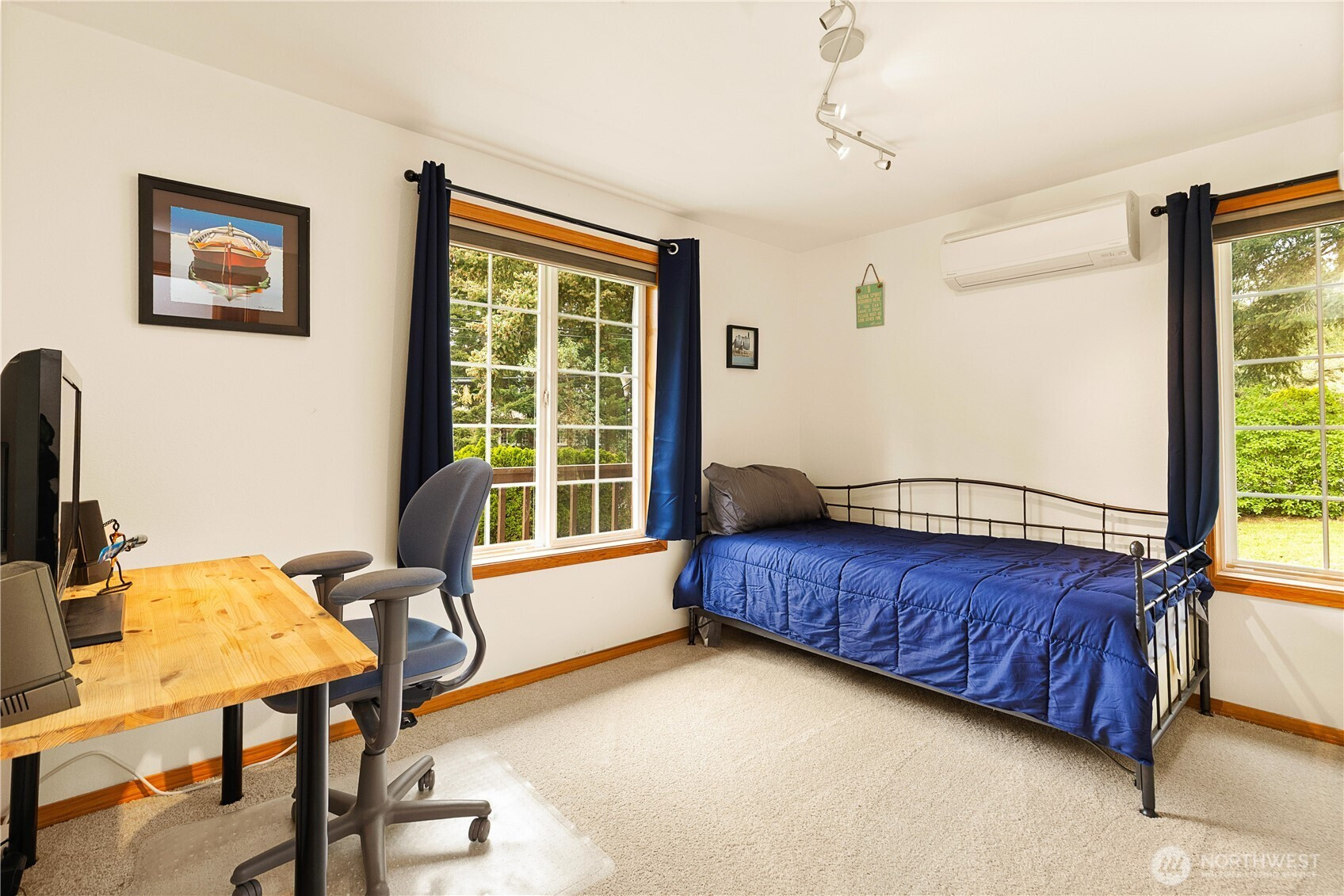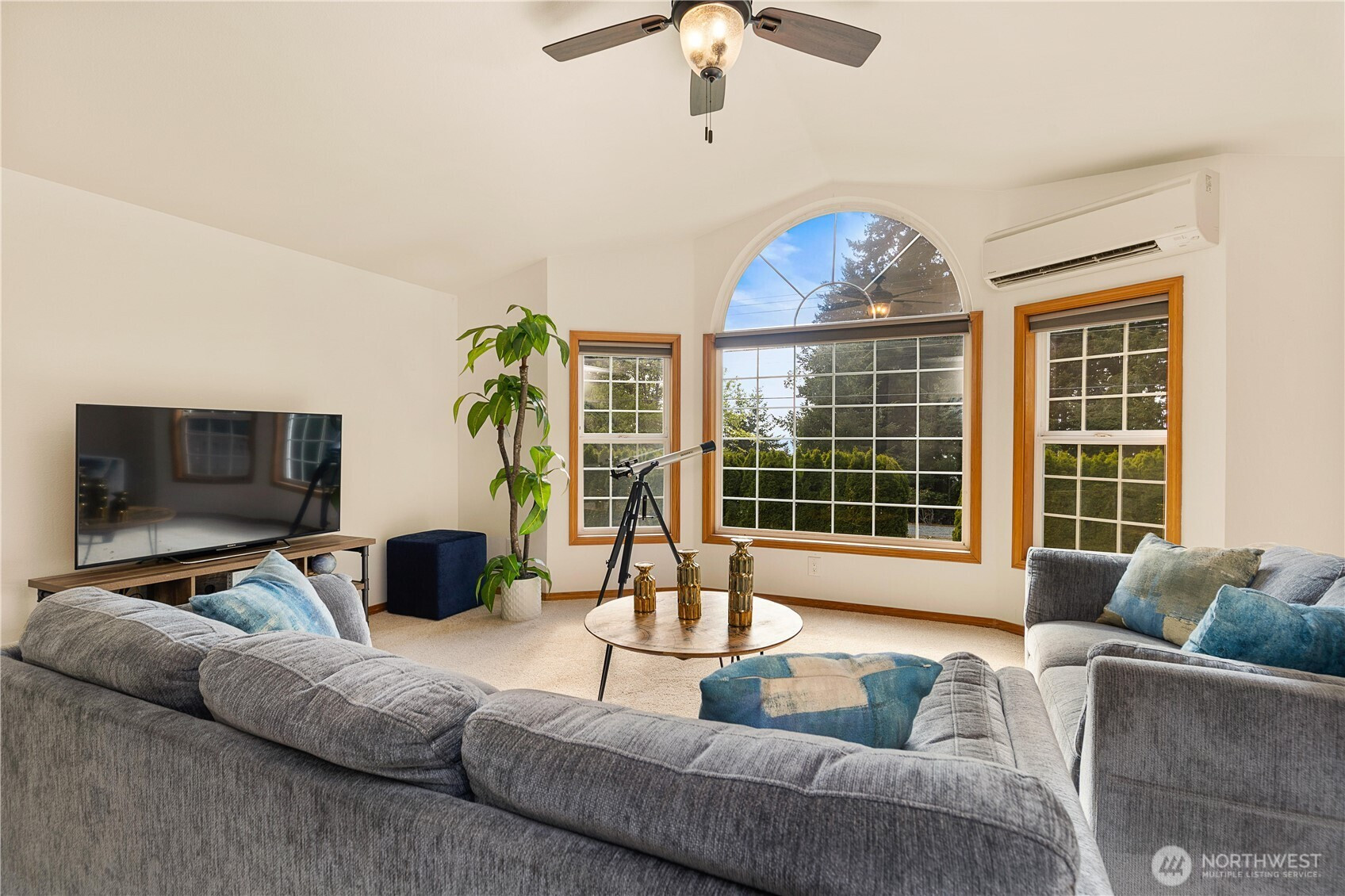 Discover the charm of living in the Madrona neighborhood, where this inviting home offers peekaboo views of Saratoga Passage. As part of the community, you’ll also have access to a private waterfront beach minutes away—an exceptional amenity that lets you further embrace the beauty and recreation of your Puget Sound home. Start your mornings with coffee on the deck as the soft rhythm of the waves drifts in the far distance, and unwind in the included hot tub as eagles glide effortlessly overhead. Charming and thoughtfully designed rambler, this well-appointed home offers an efficient layout that makes the most of every square foot. Light-filled living spaces flow seamlessly into a functional kitchen, while flexible rooms provide options for a home office or guest space. Vaulted ceilings enhance the sense of space and openness, while each individual window brings in just the right amount of natural light. The kitchen and bathrooms are beautifully appointed with quartz countertops, blending style and durability for everyday living. Efficient split-unit systems provide year-round comfort with both heating and cooling. Charming standalone shed—perfect as an art studio, reading nook, additional office, or creative escape space. Whether you're searching for a full-time residence or a weekend getaway, this Madrona gem captures the perfect balance of both comfort and lifestyle!