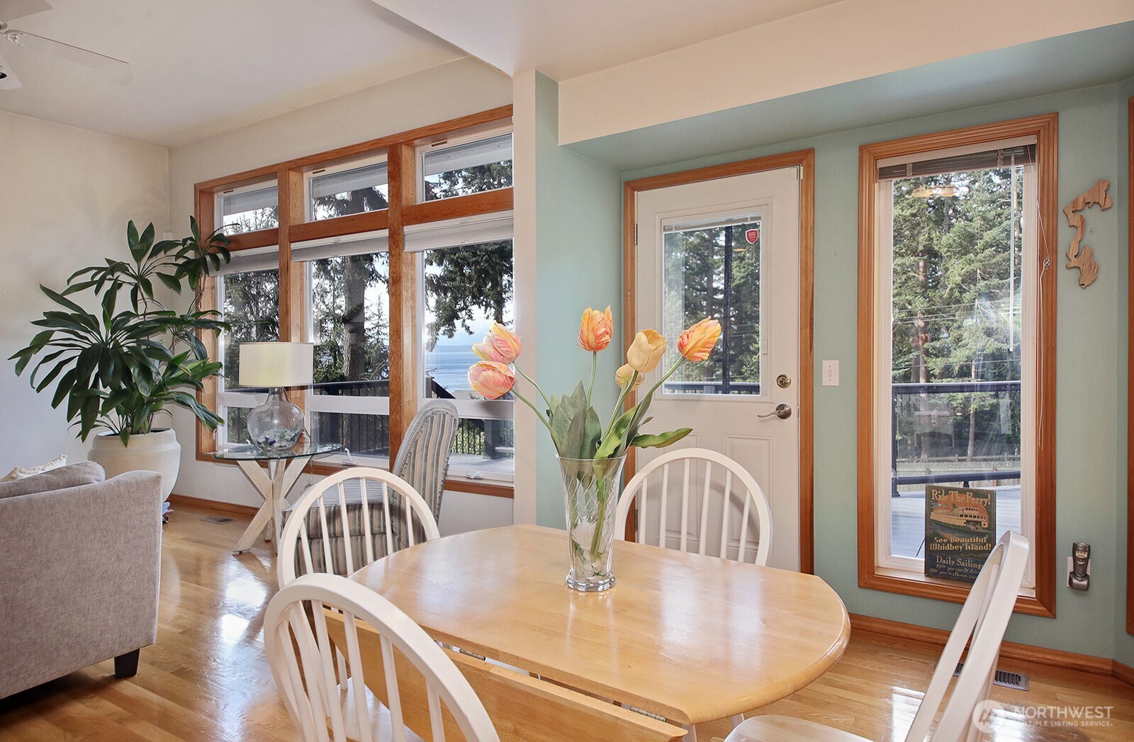 Charming and thoughtfully maintained, this Mutiny Manor home captures west-facing views of Mutiny Bay and the Olympic Mountains an ever-changing backdrop of color enjoyed from indoors and out. Single-level living features 3 bedrooms, 1.75 baths, and a two-car garage, all wrapped in comfort with hardwood floors, wood-wrapped windows, and a cozy, welcoming feel. A spacious new view deck and fenced backyard extend the living space outdoors, perfect for relaxing or entertaining. There is room to garden! Just a mile to Robinson Beach and less than two miles to the shops and amenities of downtown Freeland, the location blends convenience with coastal living. The crawl space offers generous headroom for storage, and recent exterior paint plus landscaping add standout curb appeal. With careful updates and attentive maintenance throughout, this home is ready to be enjoyed for years to come. Come see this wonderful home with so much potential to enjoy your future abode that is truly move in ready!