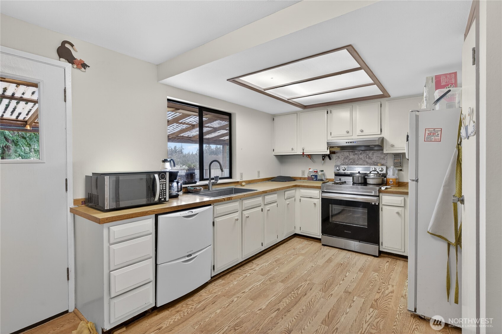 Welcome to a rare opportunity to own a private Northwest retreat where space, versatility, and natural beauty come together. Set on a peaceful, usable property surrounded by towering evergreens, this unique homestead offers exceptional privacy with room to live, work, and create your ideal lifestyle. The main home features warm wood floors, spacious living areas, and large windows that frame tranquil views of the surrounding landscape. Open living and dining spaces flow easily into the kitchen, creating comfortable areas for everyday living and gathering with friends and family. Adding flexibility, the property also includes a separate guest home offering excellent potential for rental income, multigenerational living, or private guest accommodations. Outside, the land truly shines. The expansive grounds are perfect for farm animals, hobby farming, gardening, or simply enjoying wide open space rarely found in residential properties. A barn structure, multiple outbuildings, and fenced areas provide ideal spaces for animals or equipment. Nature lovers will appreciate the orchard-like setting featuring 24 mature fruit trees that offer seasonal harvests and beautiful scenery throughout the year. The combination of open pasture, wooded privacy, and usable land creates a secluded sanctuary while still offering convenient access to nearby amenities. This one-of-a-kind property delivers opportunity, character, and space to make your vision a reality.