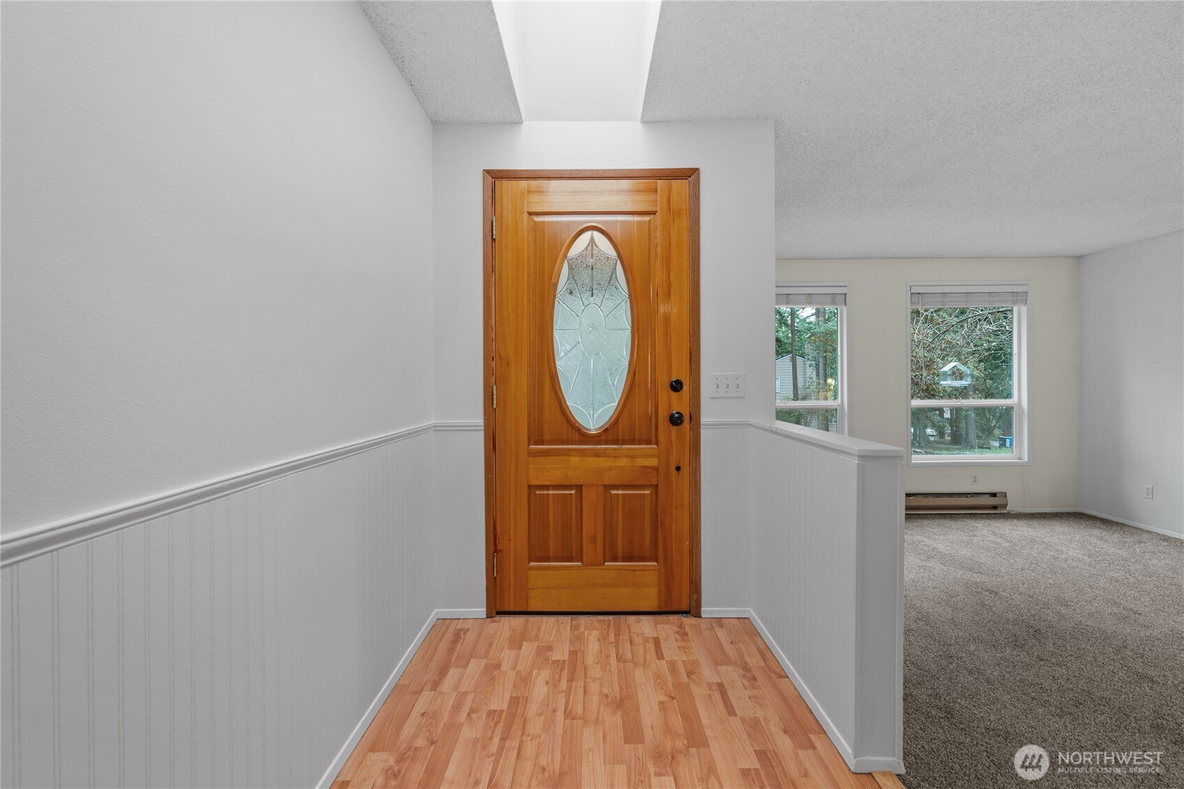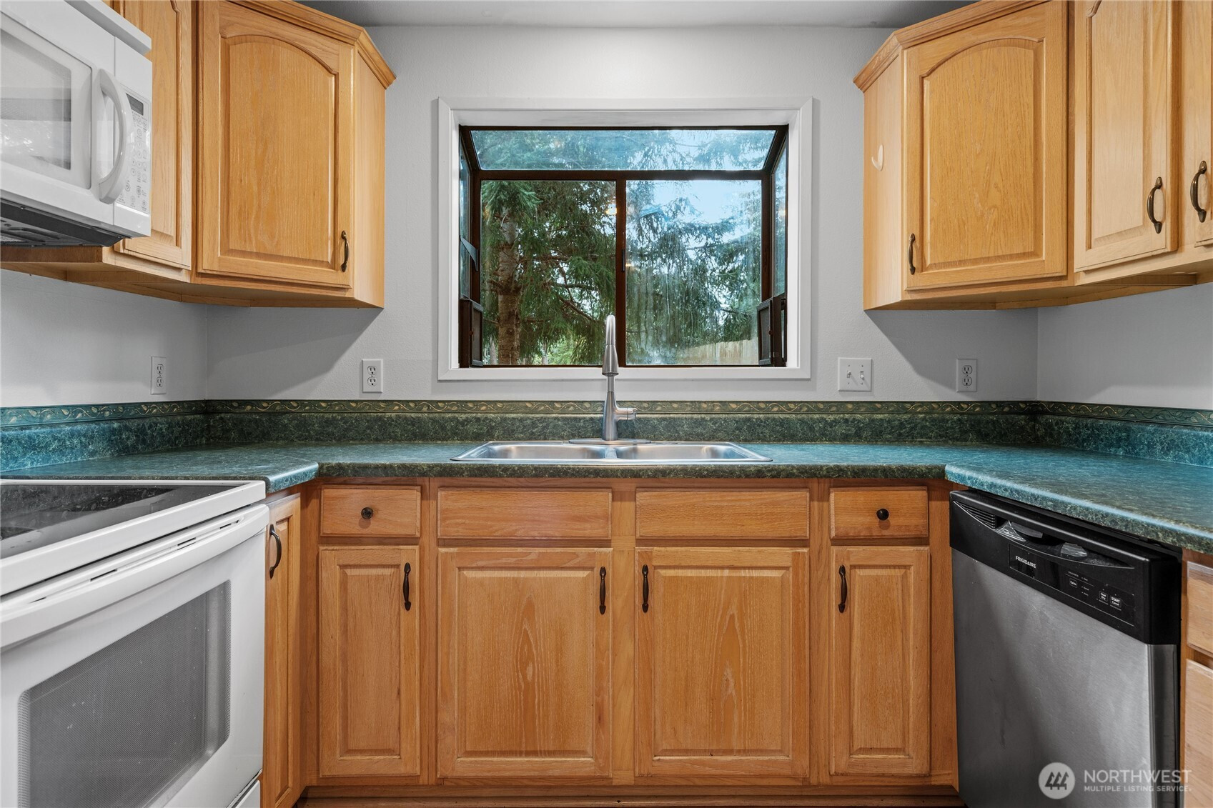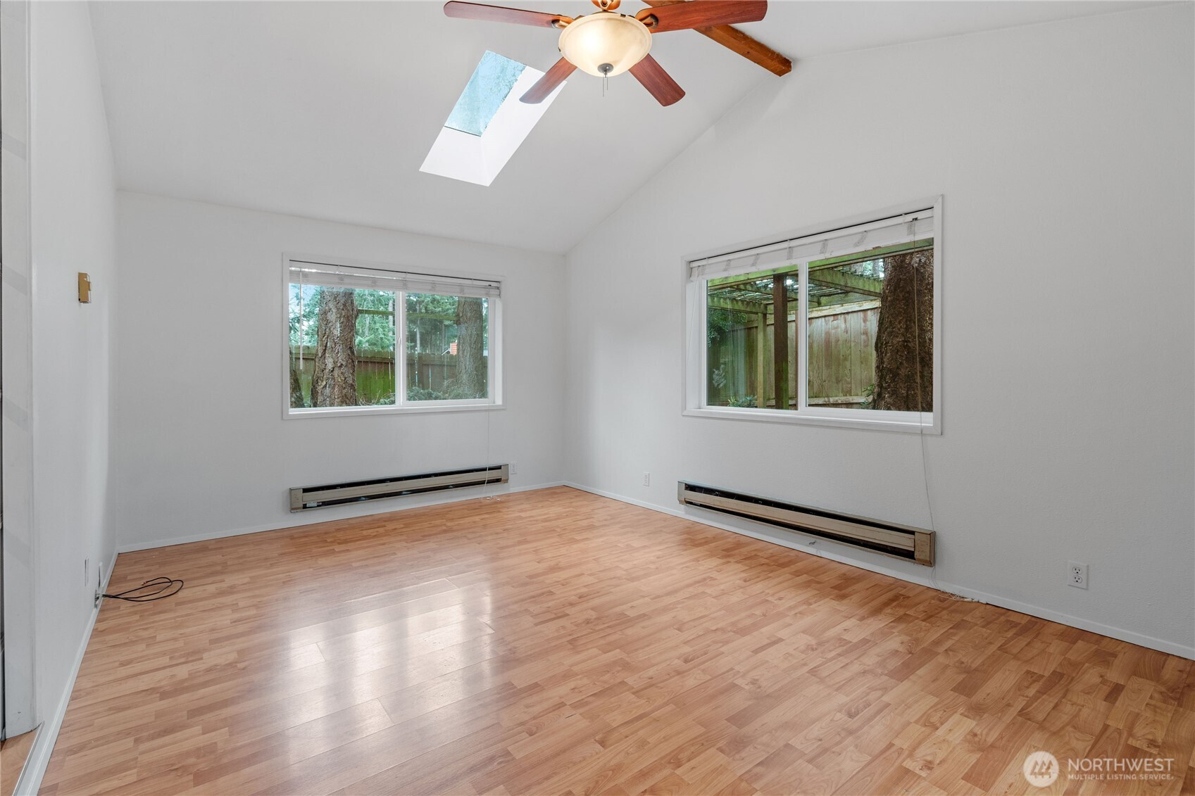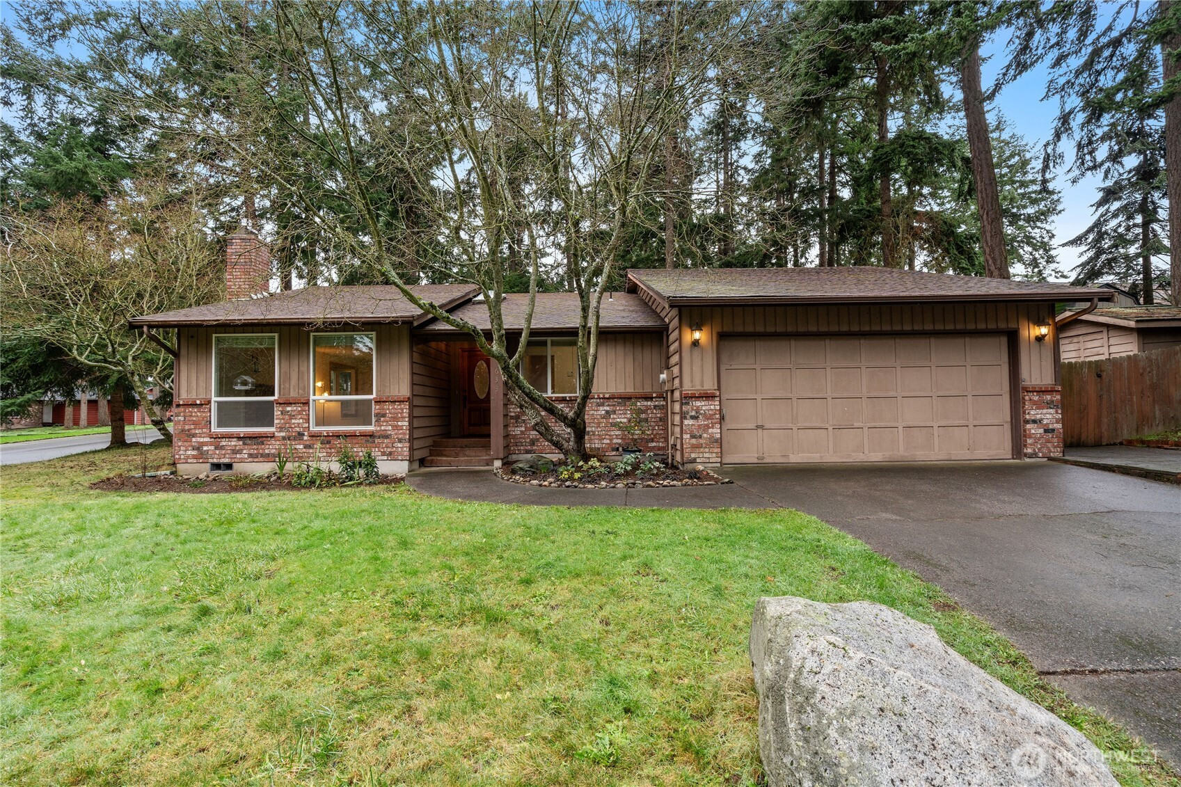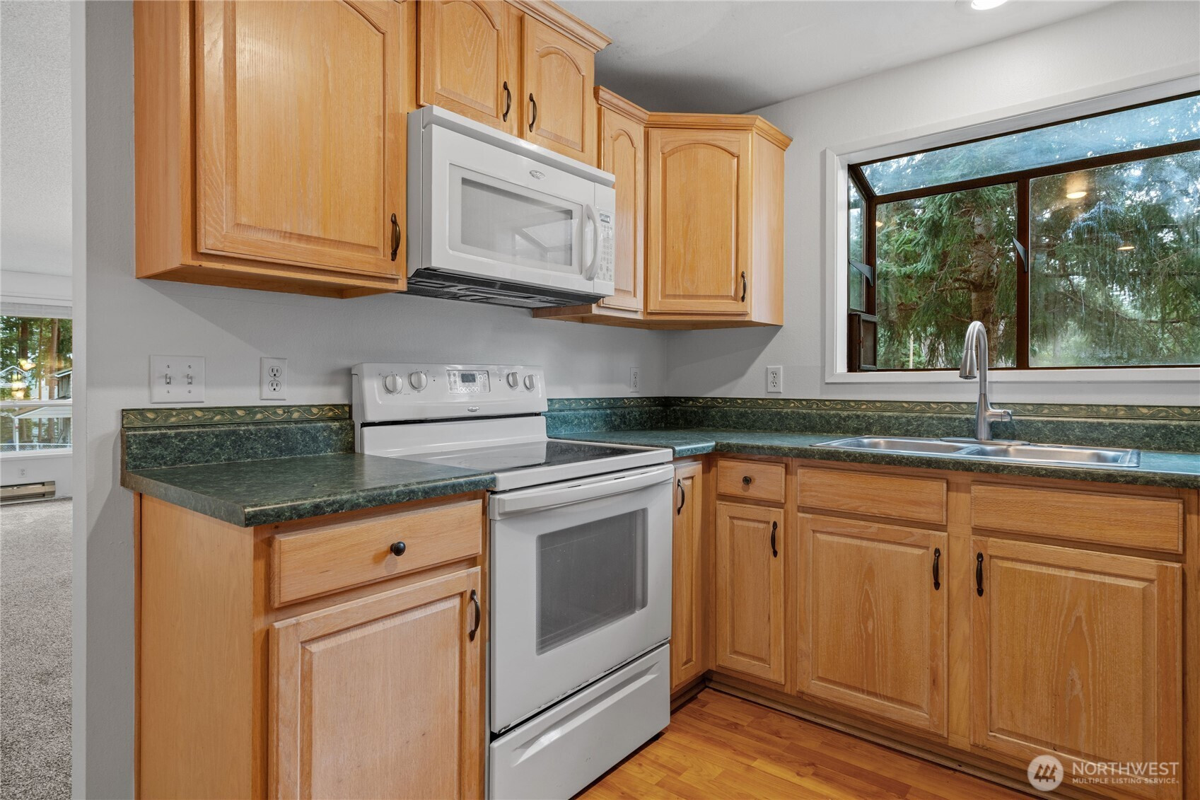 Privately situated on a corner lot, this well-maintained 3-bedroom, 1.75-bath residence offers 1,588 square feet of comfortable living space. The inviting living room features a propane gas fireplace and flows seamlessly into the dining area. A spacious family room with vaulted ceilings and abundant skylights is thoughtfully separated from the kitchen by double sliding pocket doors, creating both openness and flexibility. The home has been refreshed with new carpeting and fresh interior paint, along with newer vinyl plank flooring in the hallway and primary bedroom. The primary suite includes a walk-in closet and a private ¾ bath. Additional highlights include skylights in the entryway, family room, and main bathroom, as well as a newer refrigerator and dishwasher. Enjoy outdoor living in the fully fenced backyard, complete with a large deck and garden shed. Conveniently located near schools, shopping, parks, and NAS Whidbey