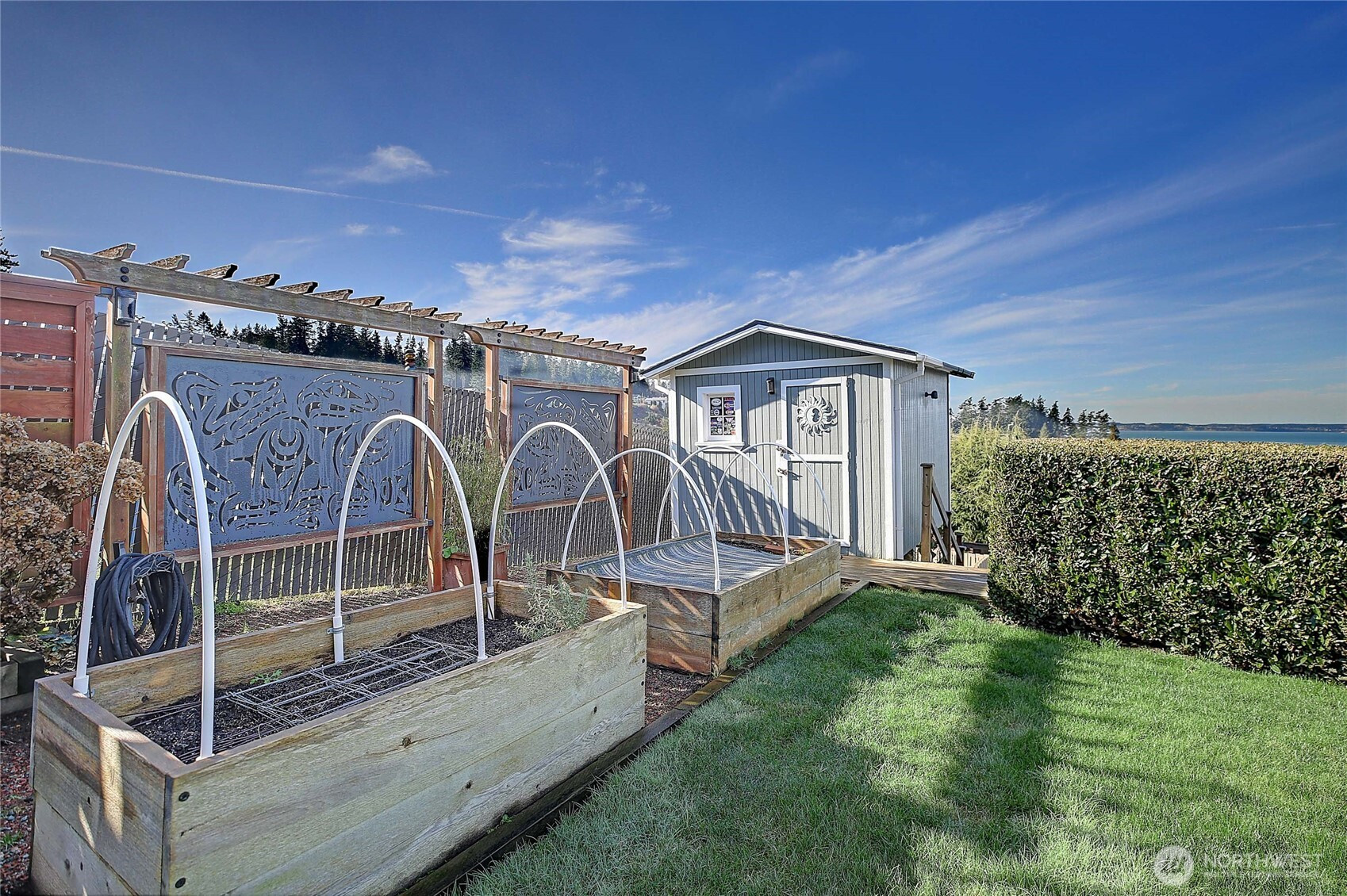Located on the desirable northwest side of Camano Island, this exceptionally well-maintained daylight rambler offers west-facing water views with beautiful sunsets, all within the Olympic rain shadow. Pride of ownership is evident throughout. Main living spaces are oriented toward the water and open to upper deck with awning, creating a comfortable spot for outdoor dining and relaxed evenings. A lower-level deck provides an additional place to unwind closer to your level backyard. The daylight lower level provides additional finished space, offering flexibility for guests, hobbies, or storage. Outdoor living is equally well considered, with a private hot tub, raised garden beds, and established garden areas that are both enjoyable and manageable. Garden sheds also included. Extra parking accessed from the back side of the property with room for an RV. Nearby community beach access offers easy opportunities for shoreline strolls, beach combing, and time by the water without the upkeep of full waterfront ownership. Set in one of Camano Island’s most sought-after areas—known for open water exposure and glowing sunsets.