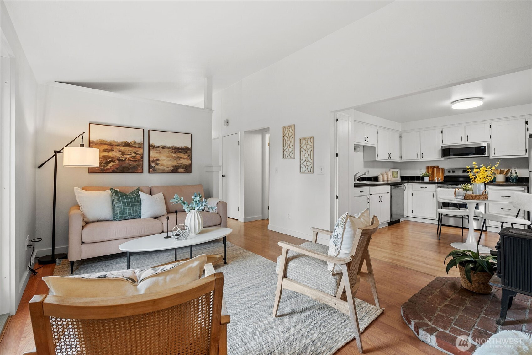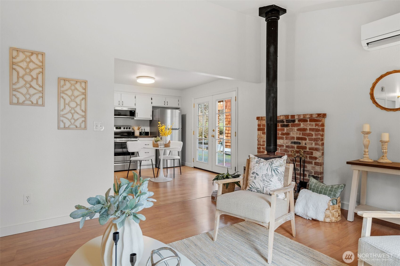 Imagine… your own little piece of paradise on Whidbey Island. Nestled in a charming beach community with peek-a-boo views of the Sound and ferries passing by, this inviting cottage offers the perfect blend of comfort and island lifestyle — plus community beach access just moments away. Cozy up by the wood stove in the inviting living space that flows seamlessly into an open, spacious kitchen with French doors leading to the patio. A front deck faces the water, perfect for relaxing summer afternoons while taking in mountain and sound views. The fenced yard offers room to garden, play, or expand. Upstairs, the primary bedroom features Sound and mountain views and a private ¾ bath en suite. A second bedroom and full bath are located on the main level. The detached 288 sq ft garage has been converted into a studio with French doors, creating a perfect flex space for guests, work, or hobbies. An additional storage area is located on the studio's back side. Conveniently located near the Clinton ferry, library, shops, and restaurants — and just 10 minutes to the seaside village of Langley with its marina, galleries, parks, and dining. This is Whidbey living at its best. Imagine… living the life you love.