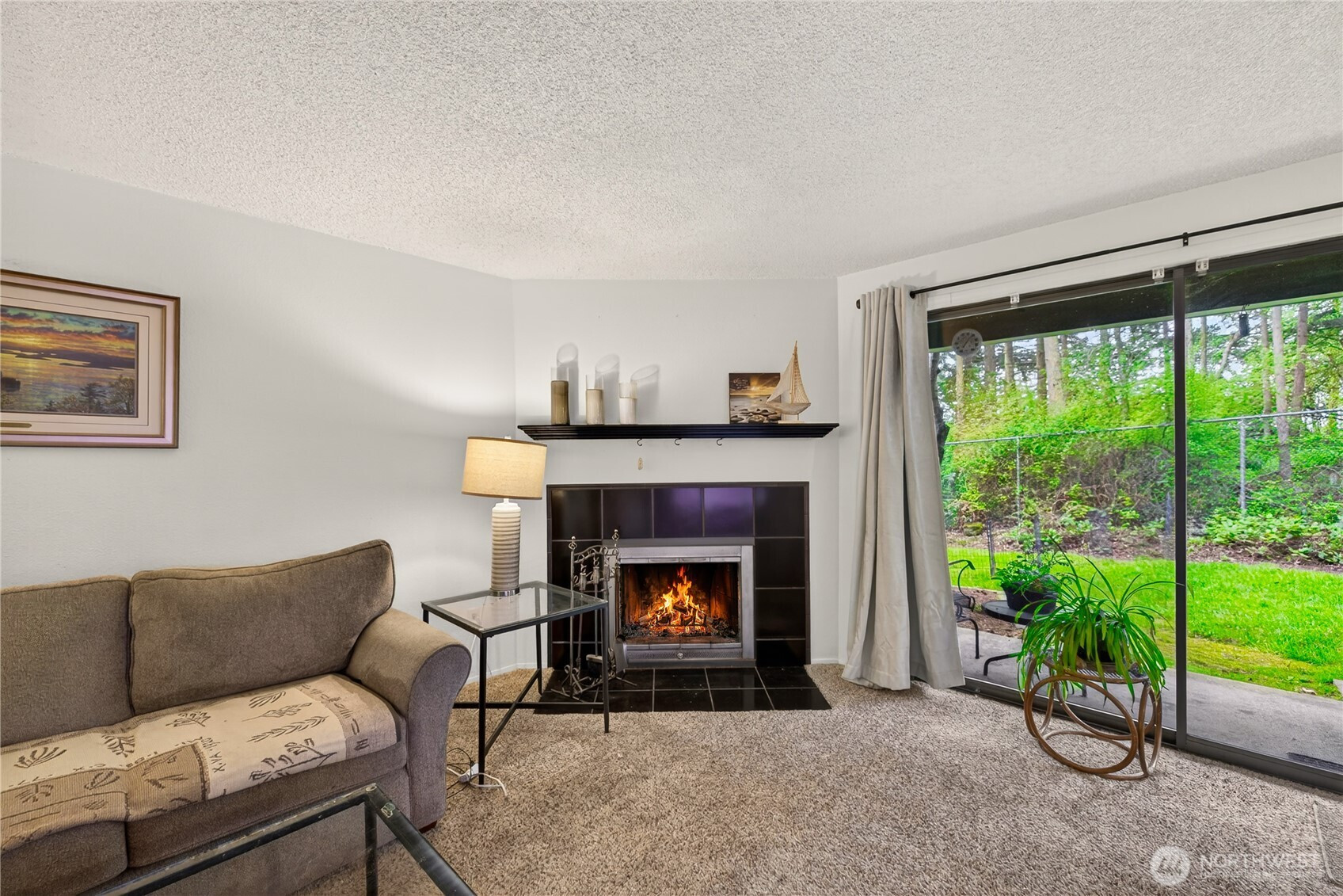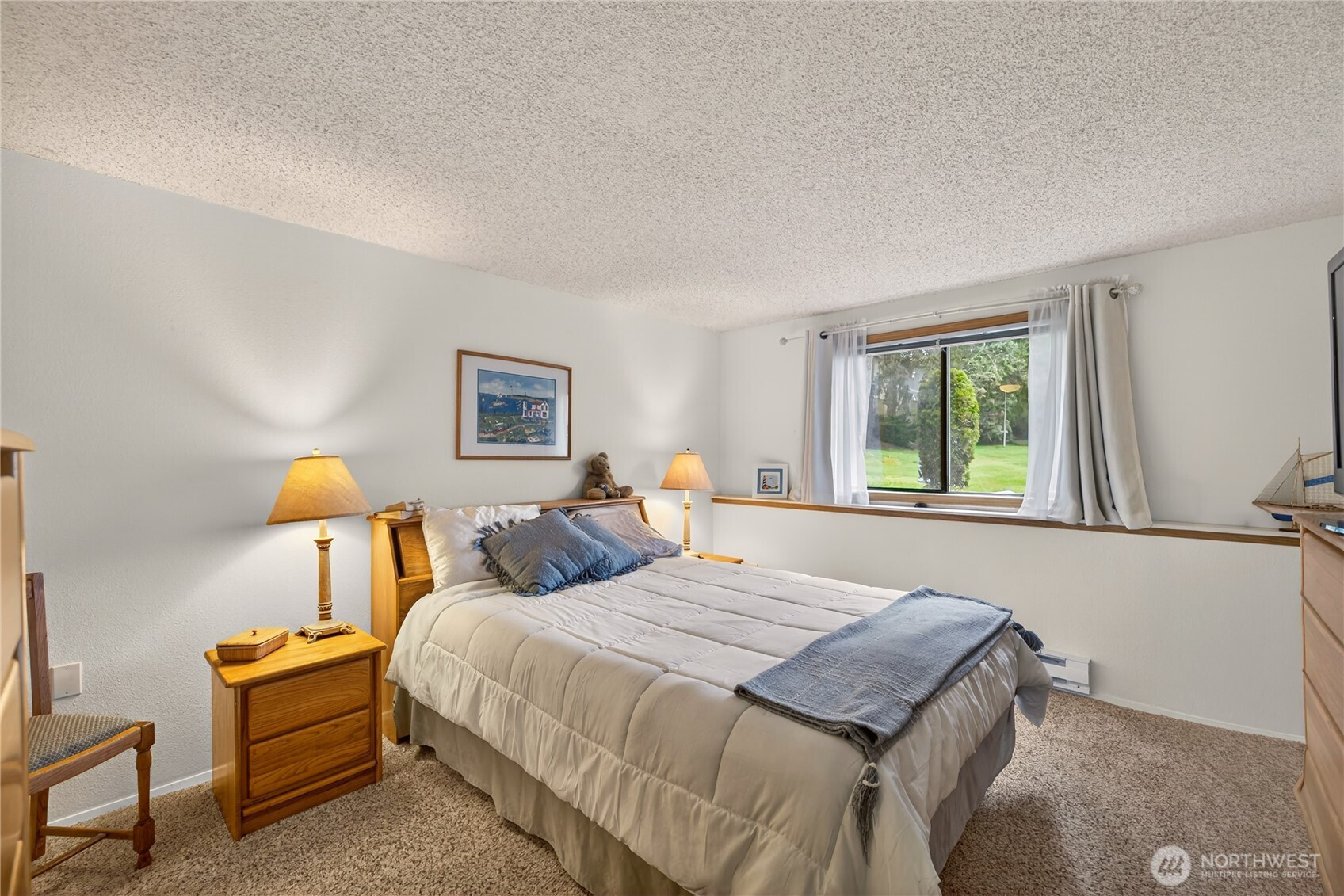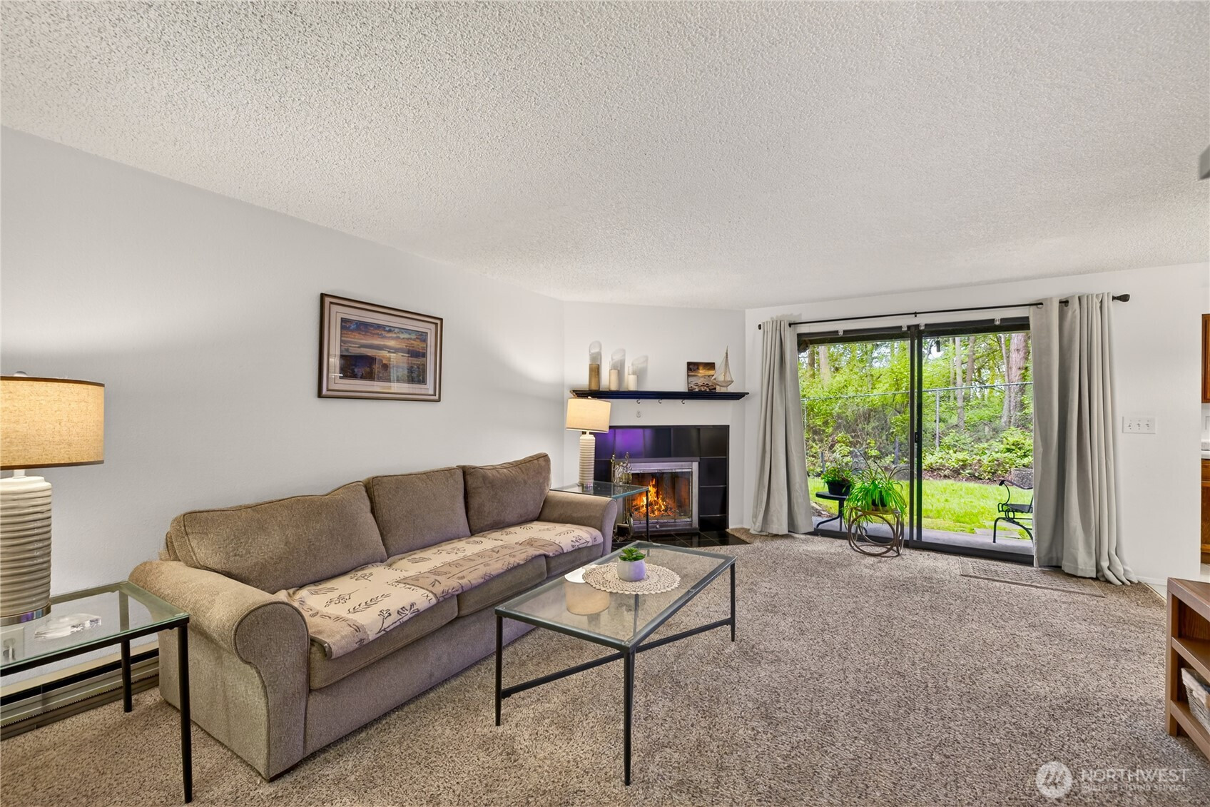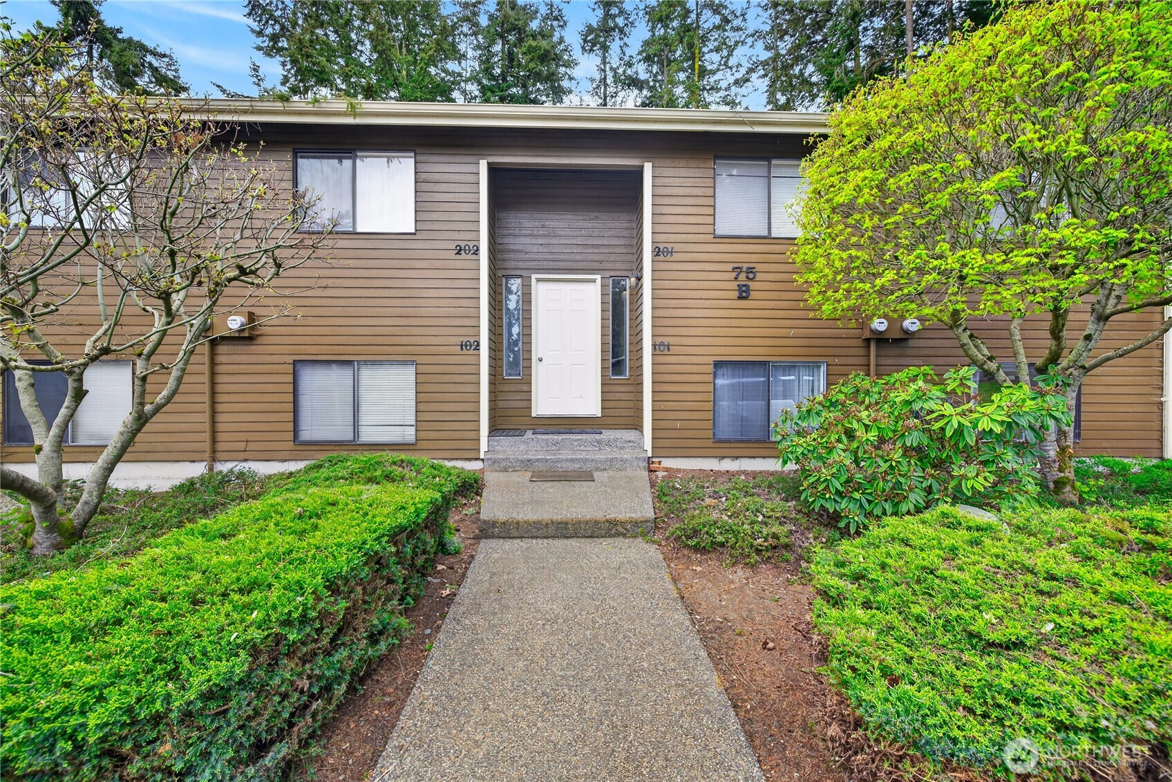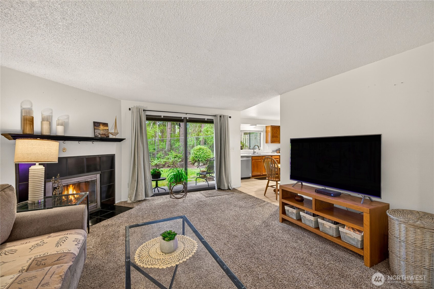 Privately set in Oak Harbor, this charming main-level end unit offers comfort, convenience, and low-maintenance living. Ideally located near shopping, dining, Naval Air Station Whidbey Island, and just minutes from the scenic Oak Harbor Waterfront—plus it even includes a garage! Step inside to an open and inviting living room featuring a cozy wood-burning fireplace and large glass doors that lead to your private patio with peaceful wooded views—perfect for relaxing or entertaining. The kitchen offers abundant counter and cabinet space, and all appliances are new and included, along with a newer washer and dryer. The spacious primary bedroom features an en-suite bath and TWO closets, while the second bedroom sits conveniently across from a full bath—ideal for guests or a home office. HOA dues cover some insurance, common area maintenance, and water/sewer/garbage, making ownership simple and stress-free. Don’t miss this opportunity to enjoy easy living in the heart of Oak Harbor!