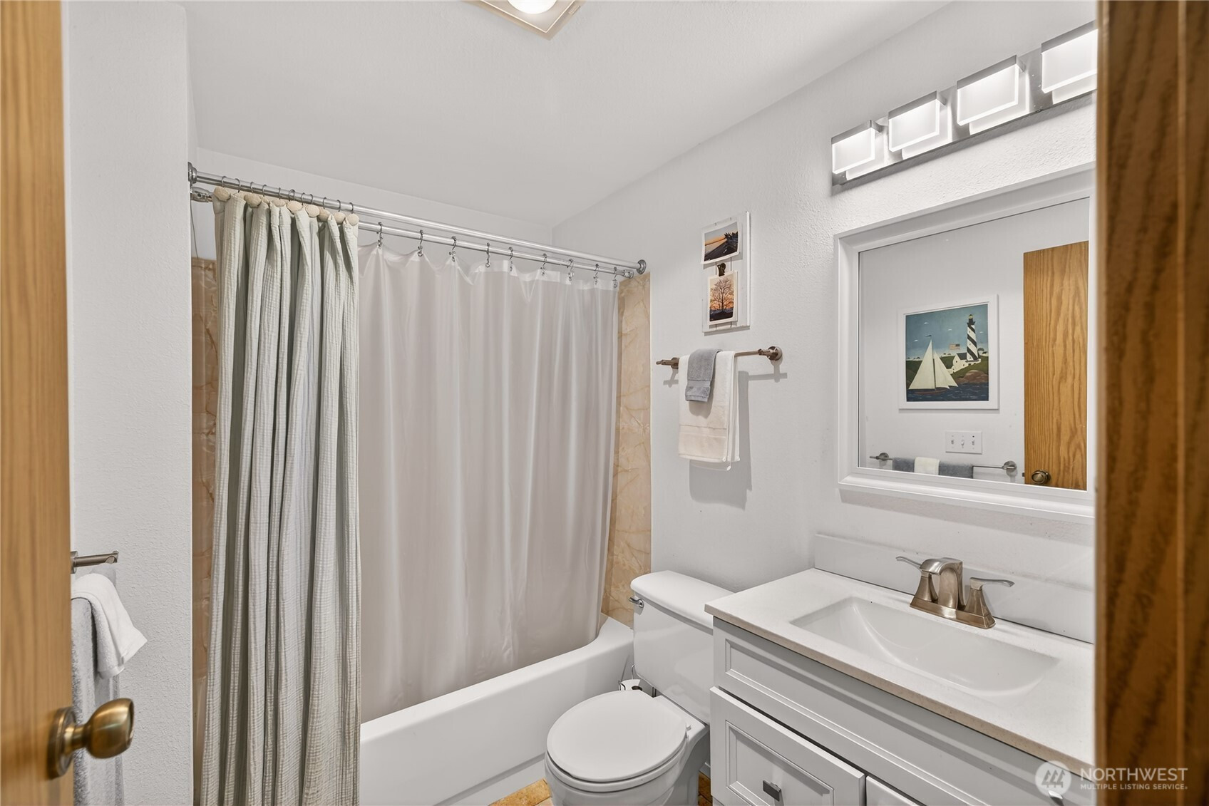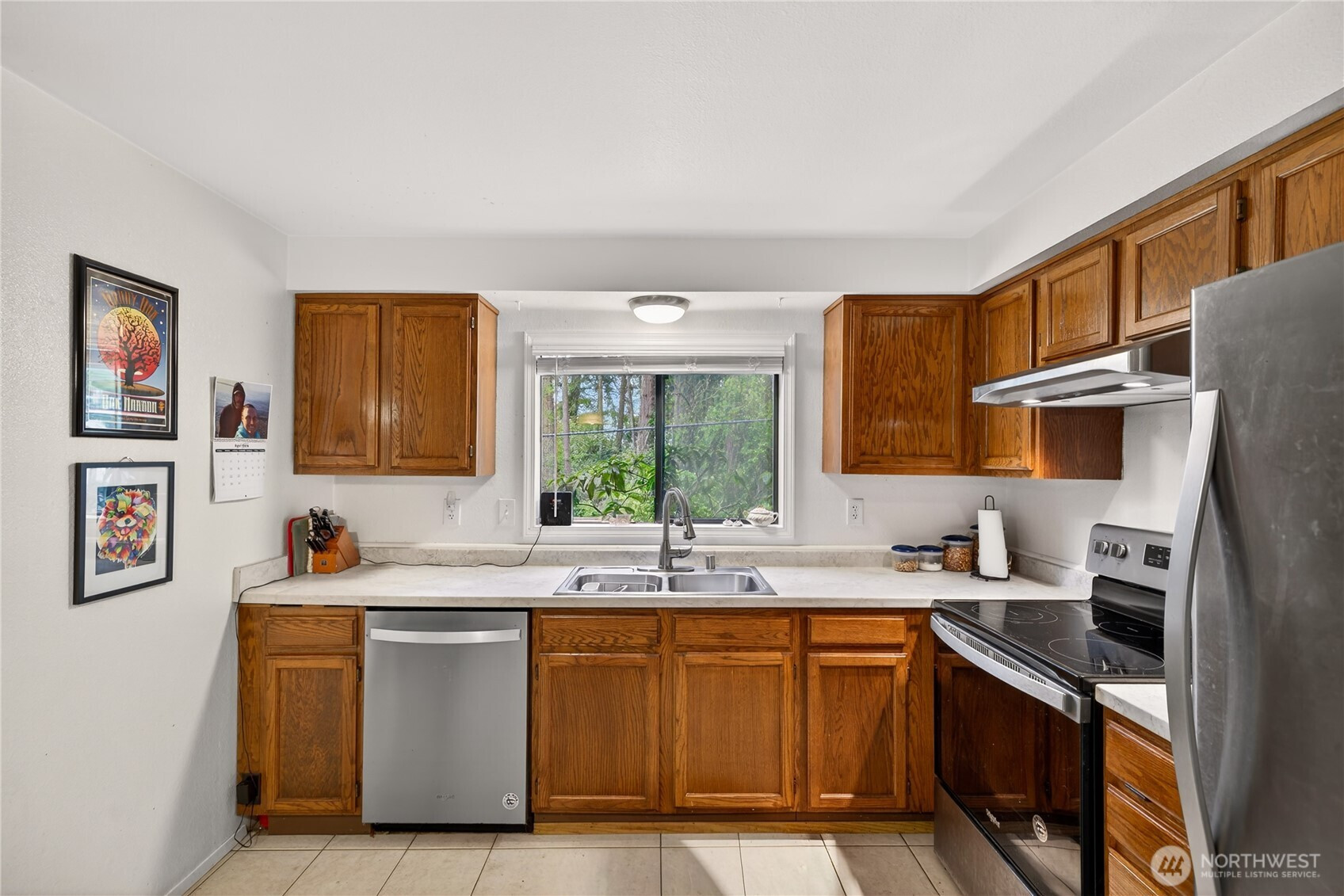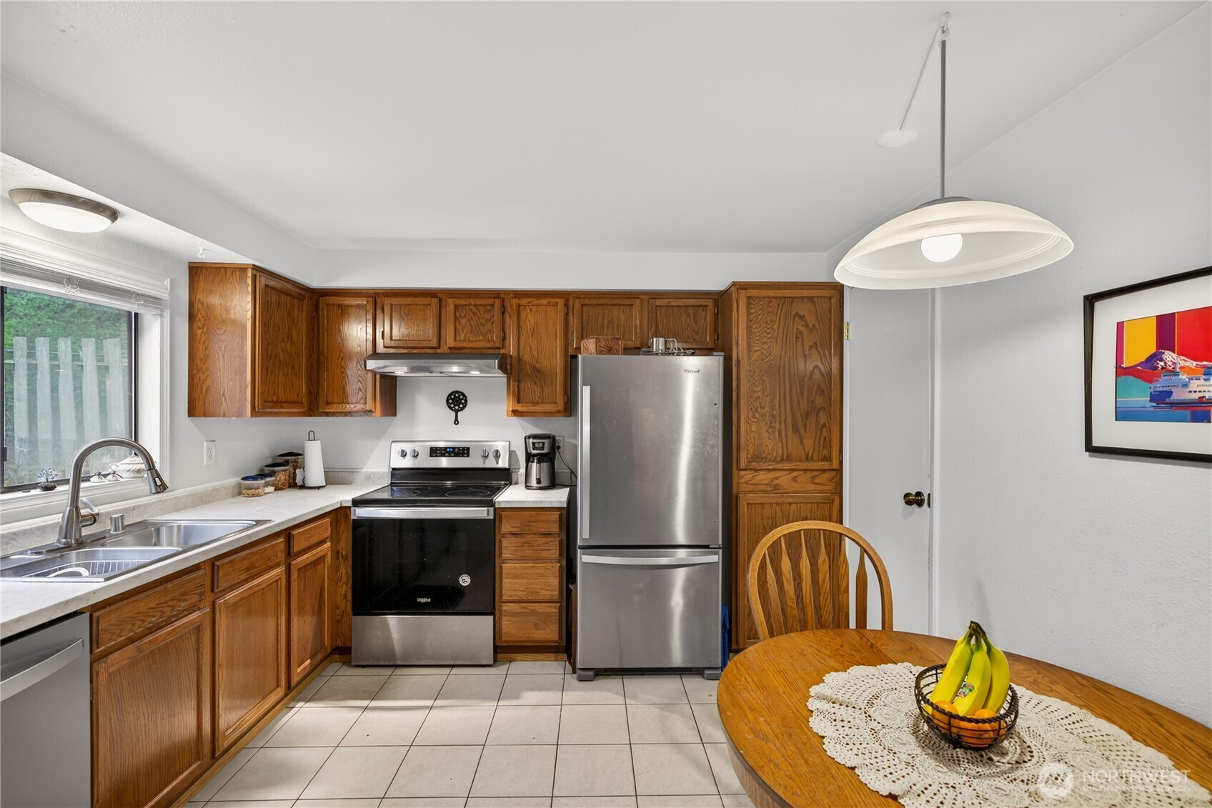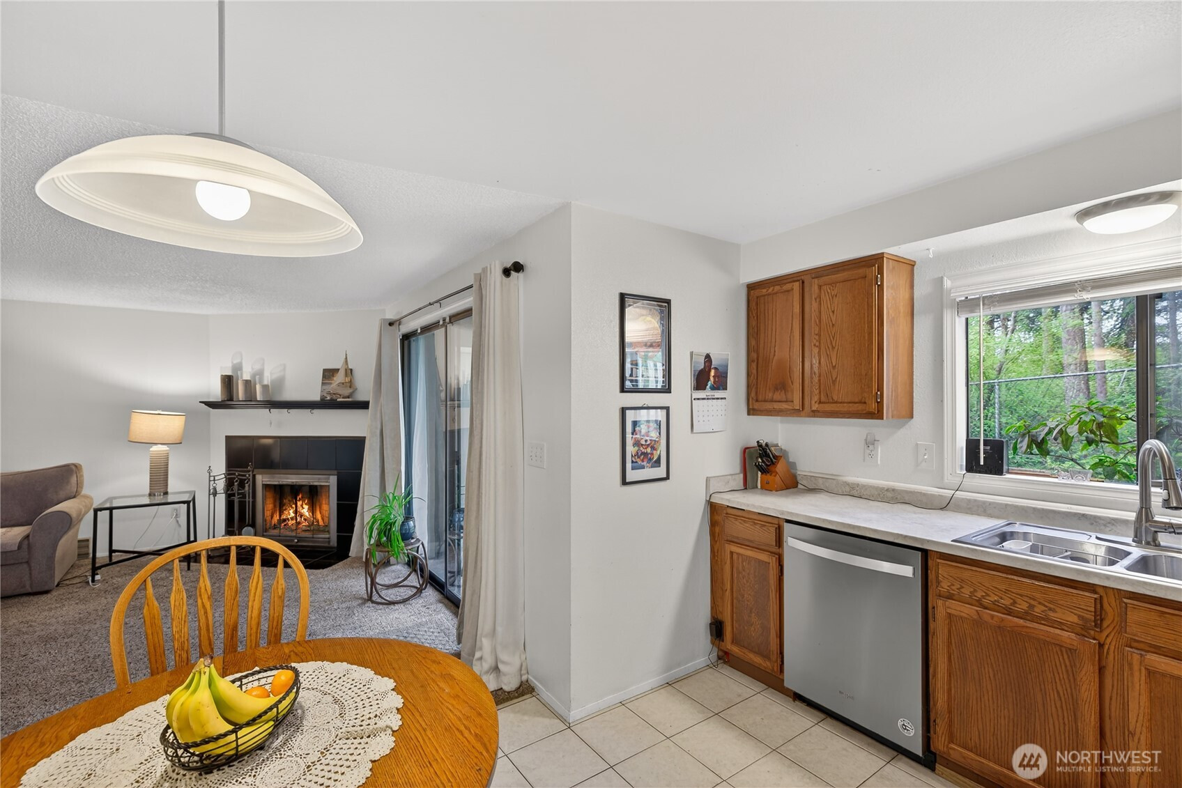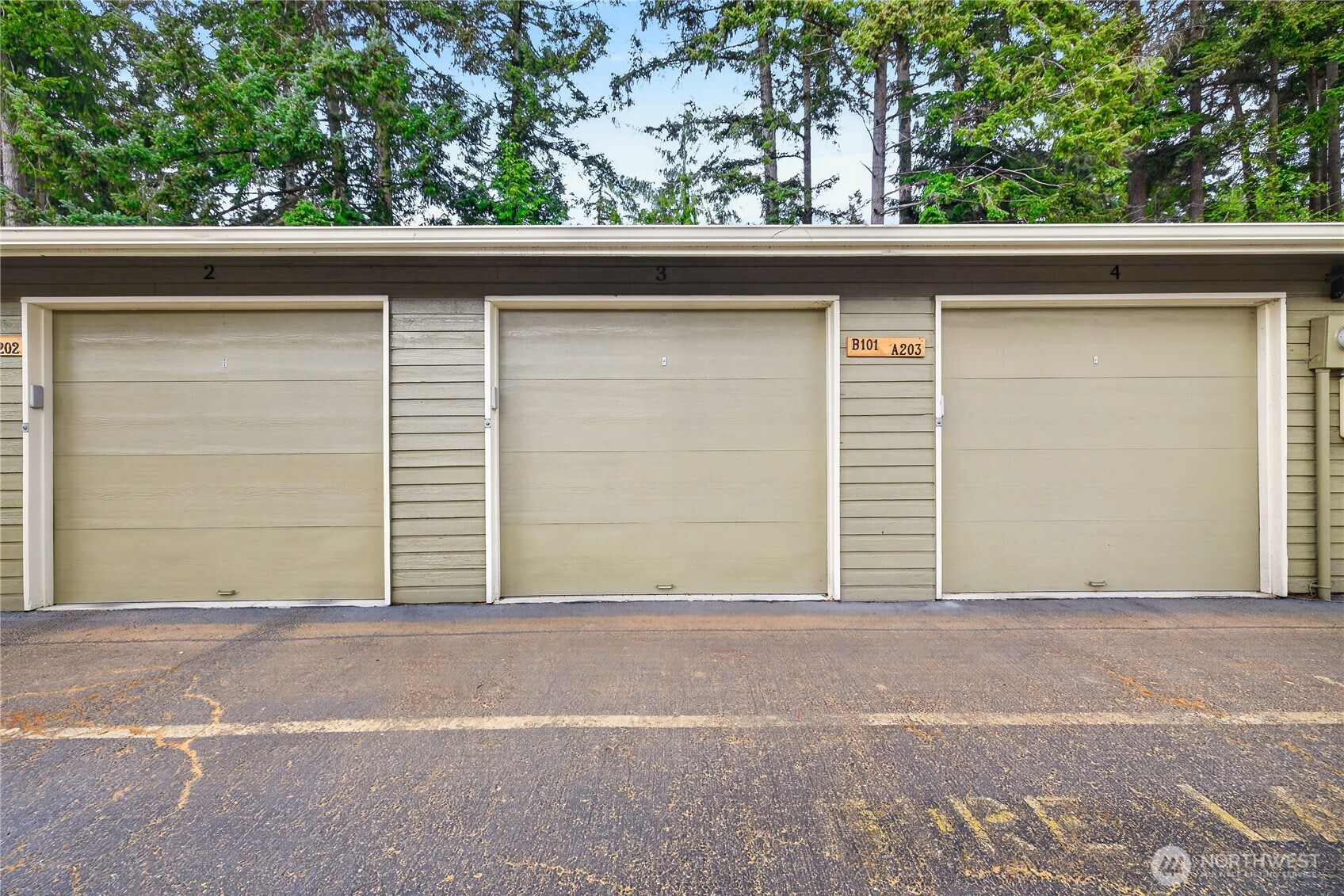 Privately set in Oak Harbor, this charming main-level end unit offers comfort, convenience, and low-maintenance living. Ideally located near shopping, dining, Naval Air Station Whidbey Island, and just minutes from the scenic Oak Harbor Waterfront—plus it even includes a garage! Step inside to an open and inviting living room featuring a cozy wood-burning fireplace and large glass doors that lead to your private patio with peaceful wooded views—perfect for relaxing or entertaining. The kitchen offers abundant counter and cabinet space, and all appliances are new and included, along with a newer washer and dryer. The spacious primary bedroom features an en-suite bath and TWO closets, while the second bedroom sits conveniently across from a full bath—ideal for guests or a home office. HOA dues cover some insurance, common area maintenance, and water/sewer/garbage, making ownership simple and stress-free. Don’t miss this opportunity to enjoy easy living in the heart of Oak Harbor!