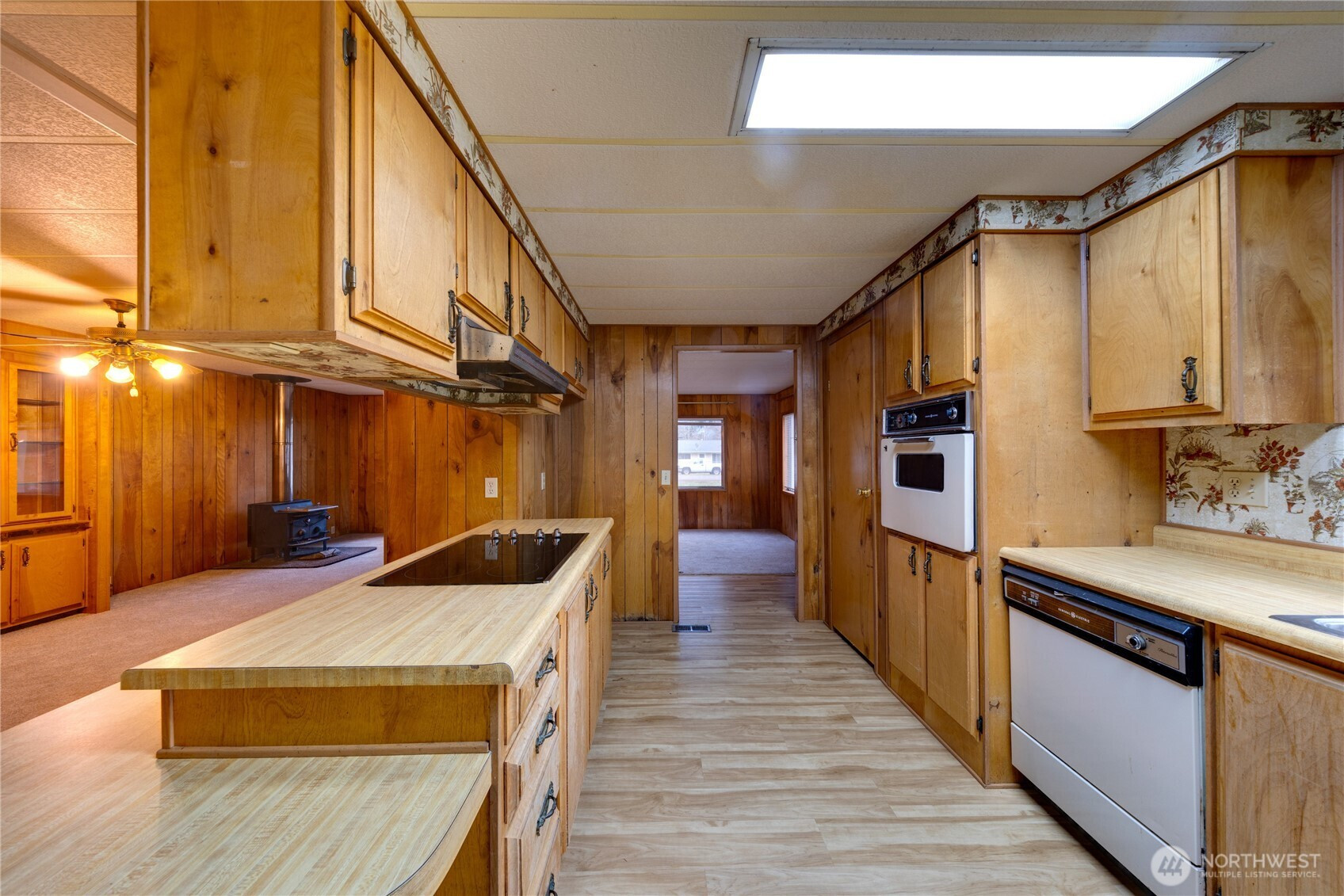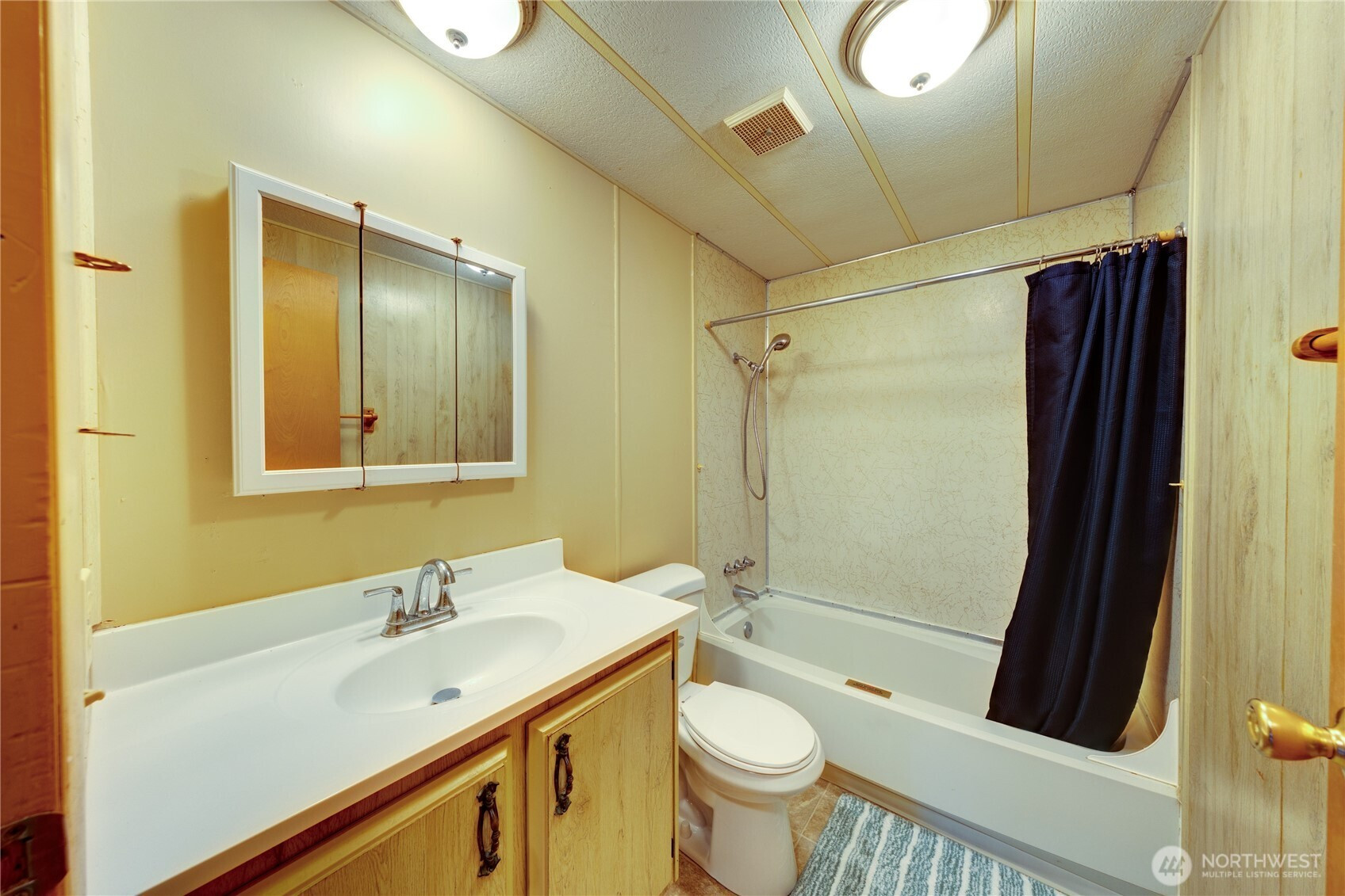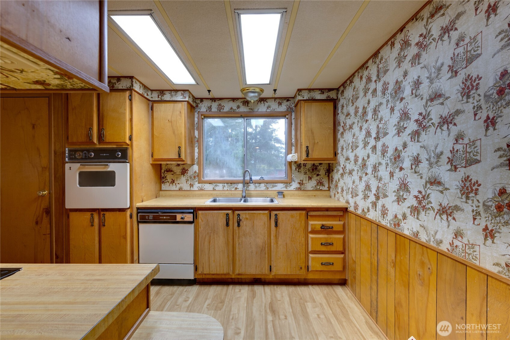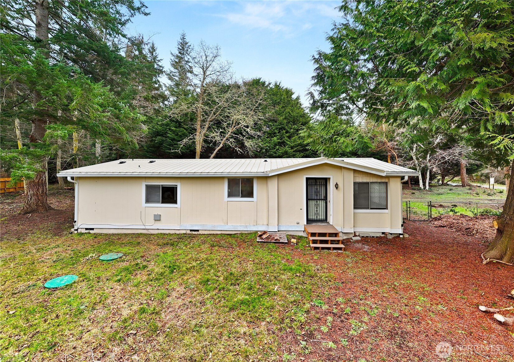 (503) 893-8874Escape to peace and privacy at this tucked-away retreat in the Crockett Lake community. Set on a level .57-acre lot surrounded by mature trees, this 2-bedroom, 2-bath manufactured home offers a rare sense of seclusion while remaining close to Coupeville conveniences. The layout is comfortable and functional, featuring a spacious living room, dining area, and kitchen with eating space. The primary bedroom includes a full bath, creating an easy flow for everyday living. Floor coverings include vinyl, vinyl plank, and wall-to-wall carpet. A metal roof and poured concrete foundation add durability, while forced air heating is complemented by a wood heat source. Step outside and discover the true highlight—room to breathe. The fully fenced yard includes garden space and multiple outbuildings, ideal for storage, creative projects, or a workshop. The setting feels peaceful and private, perfect for those craving a slower pace and connection to nature. Located on a paved street with community water, septic, cable TV, and high-speed internet available. A unique opportunity to own space, privacy, and potential in a tranquil setting.